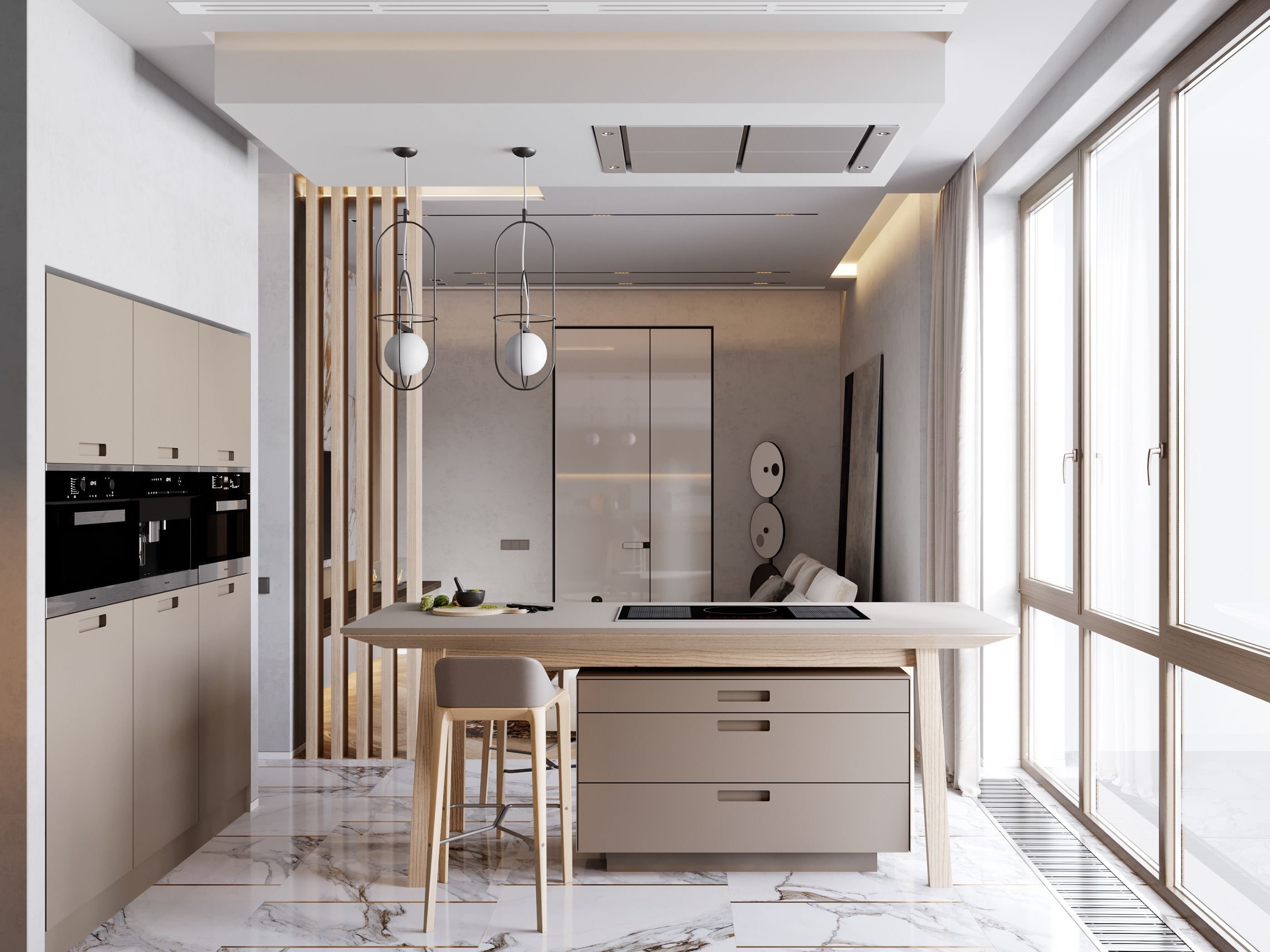 Кухня-гостиная с раздвижной перегородкой