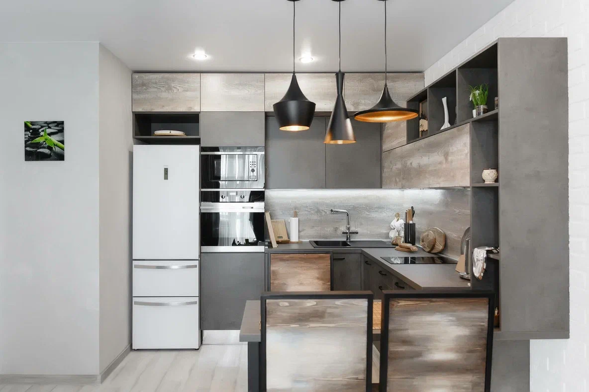 П образная кухня лофт