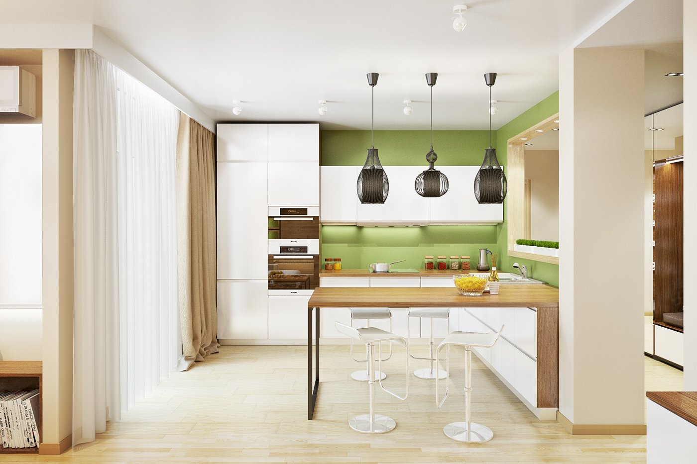Барная стойка разделяющая кухню и гостинную