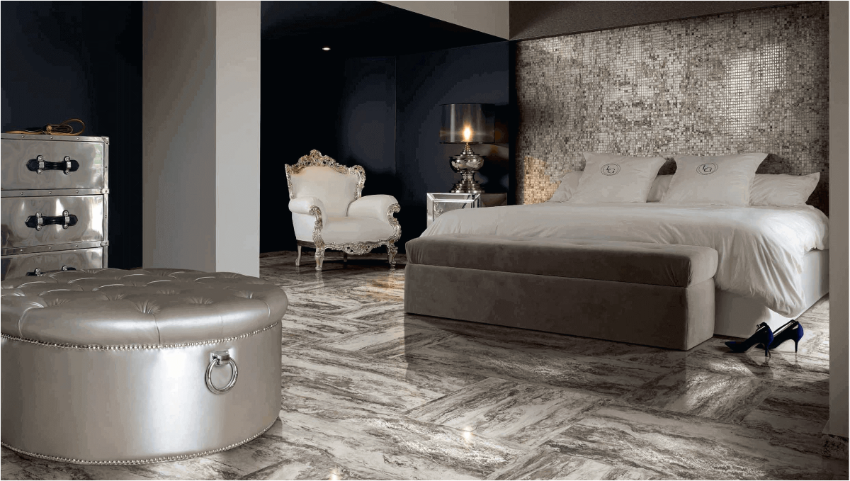 Мраморная плитка в спальне