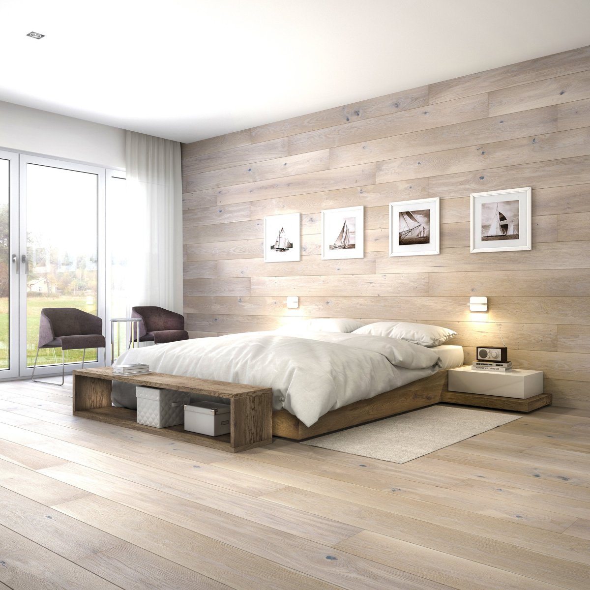 Плитка под дерево в спальне
