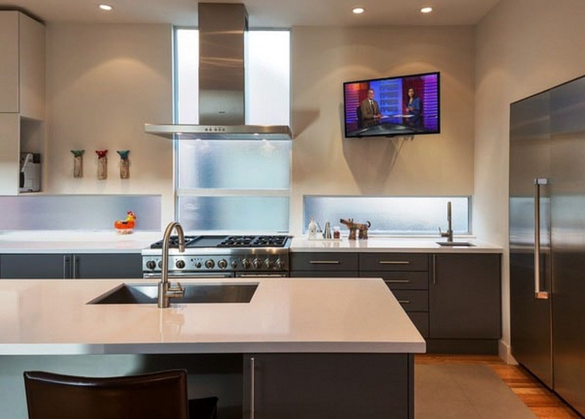 Кухни с встроенным телевизором в кухню