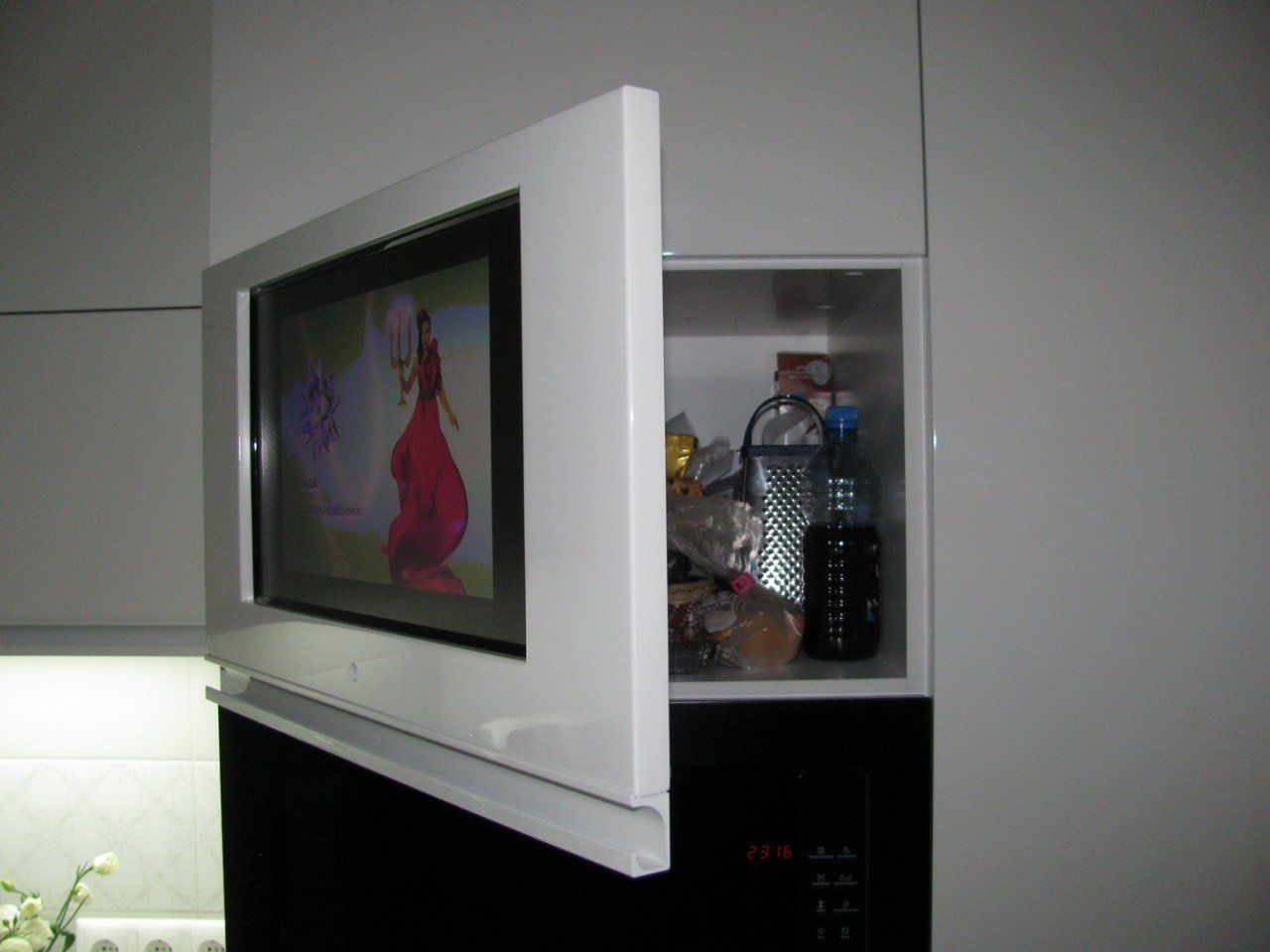 Телевизор встраиваемый в кухонный шкаф