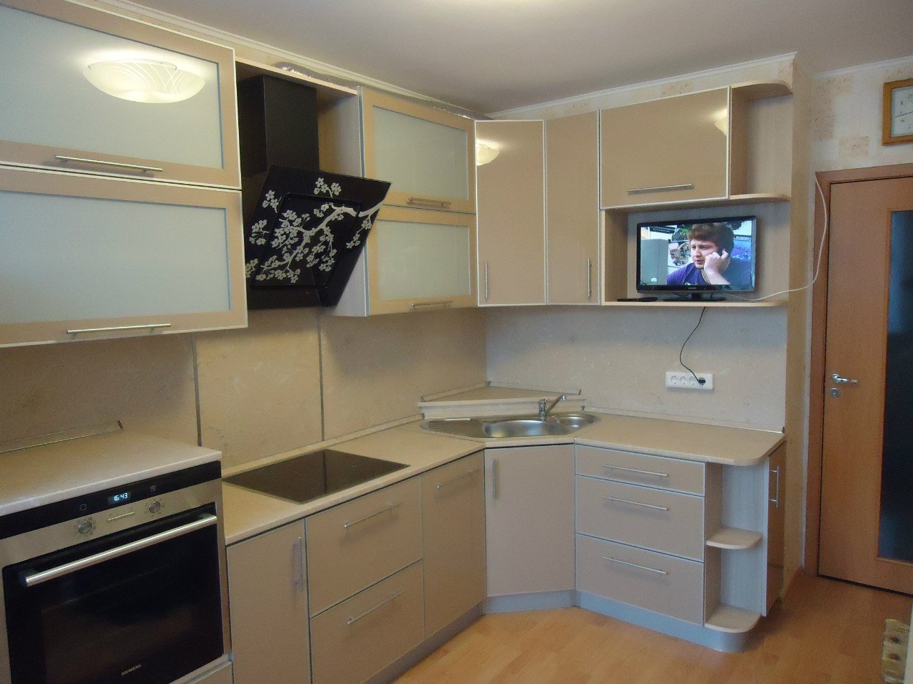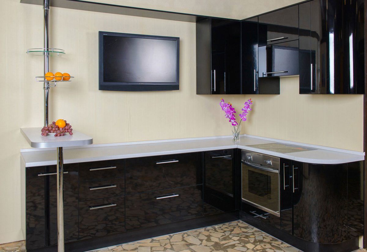 Угловой кухонный гарнитур с телевизором