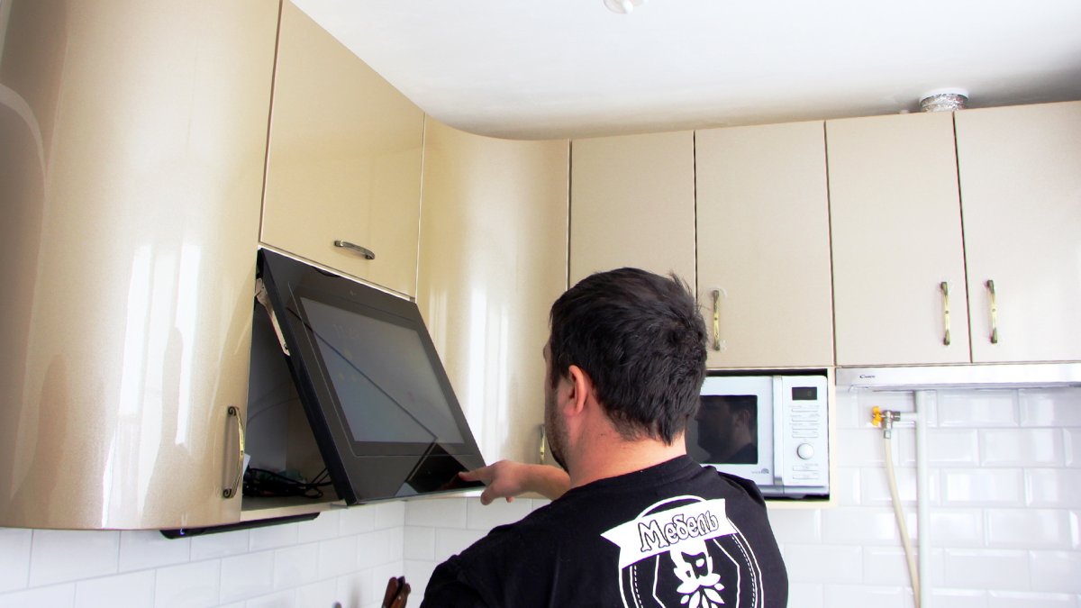 Телевизор над вытяжкой на кухне