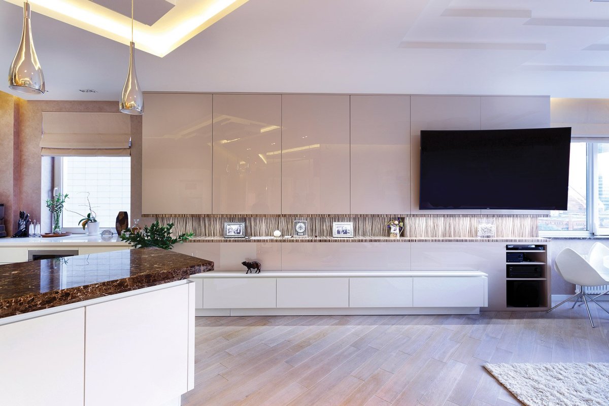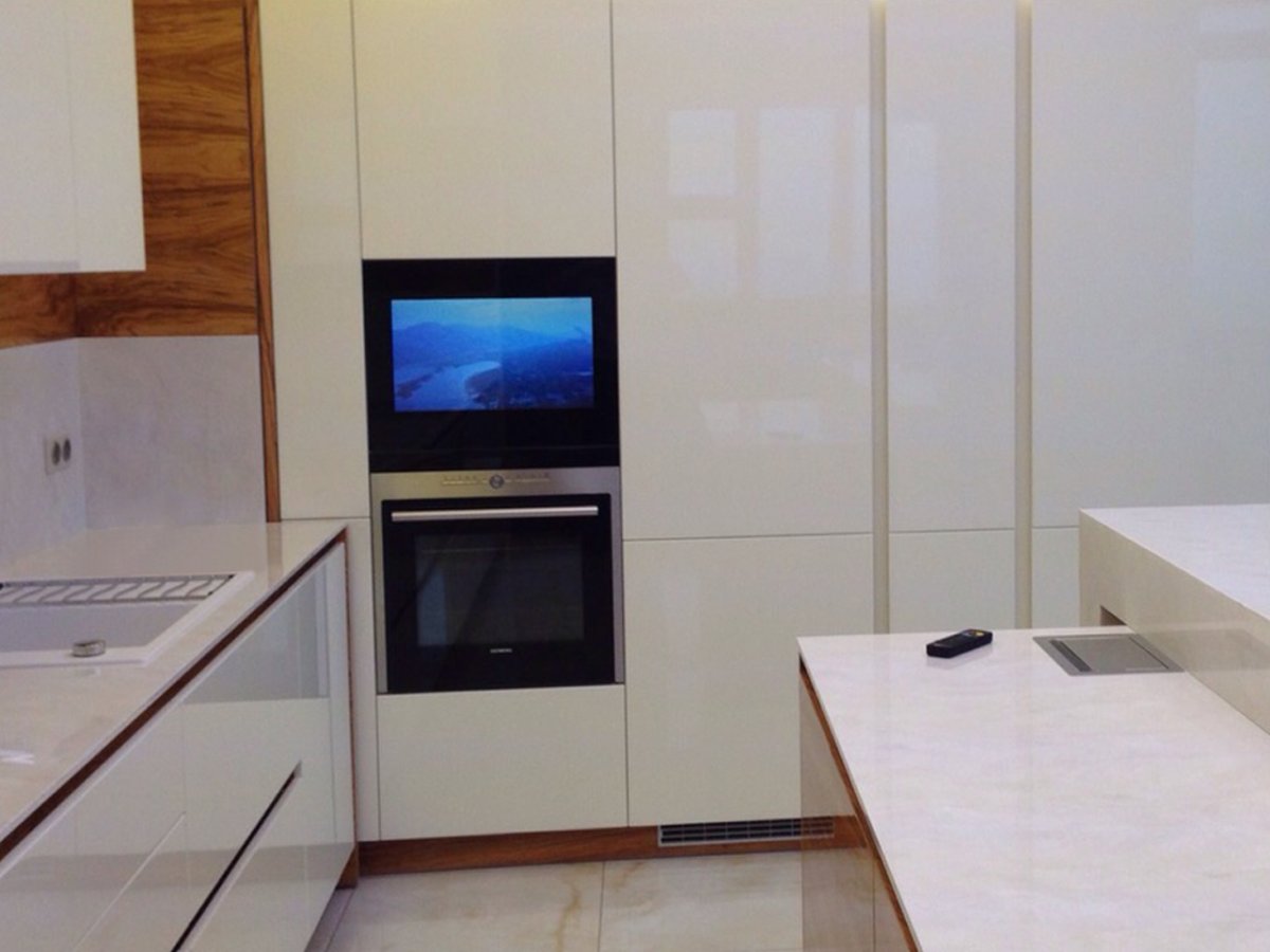 Телевизор встроенный в кухонный фасад