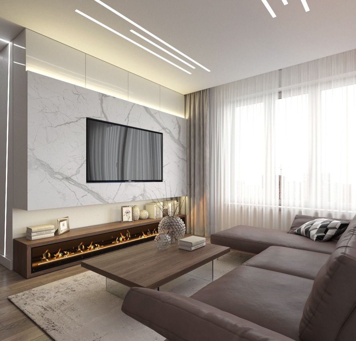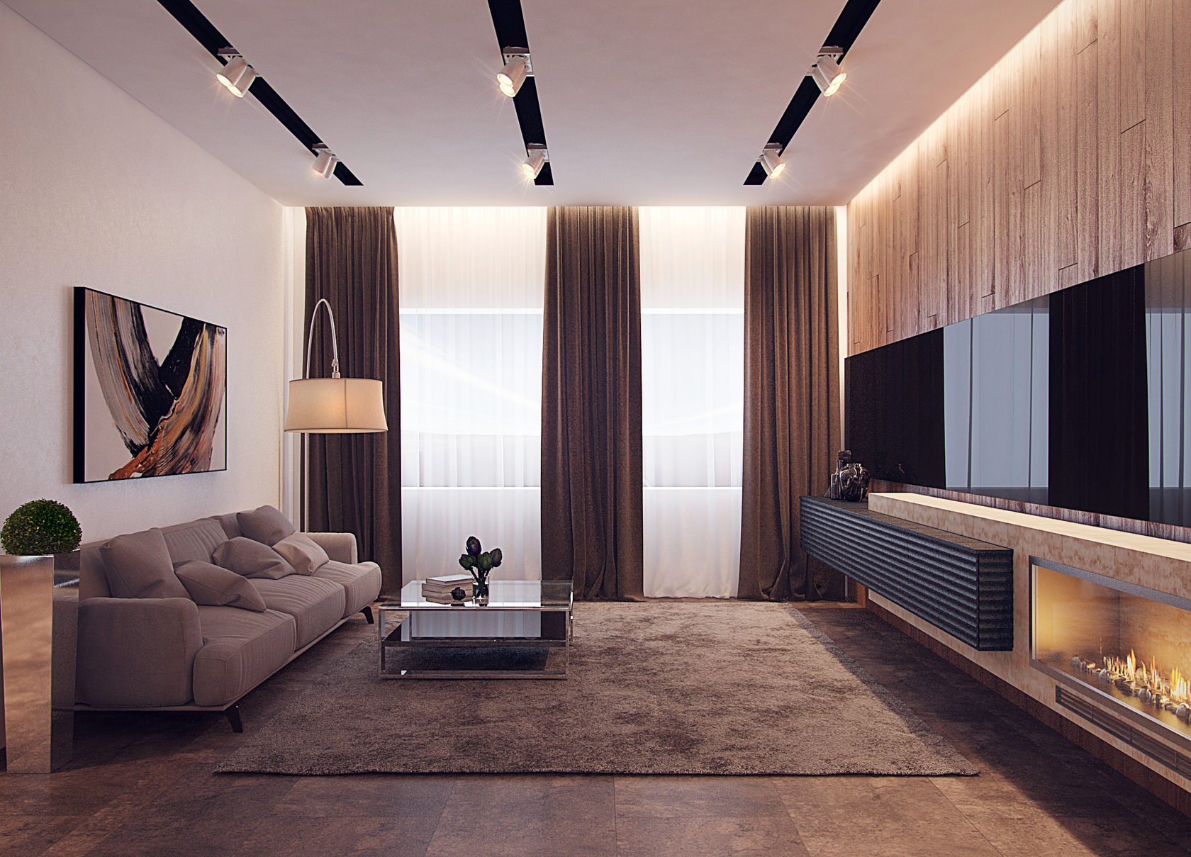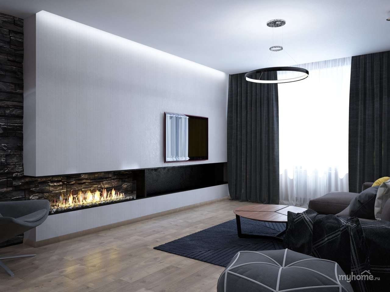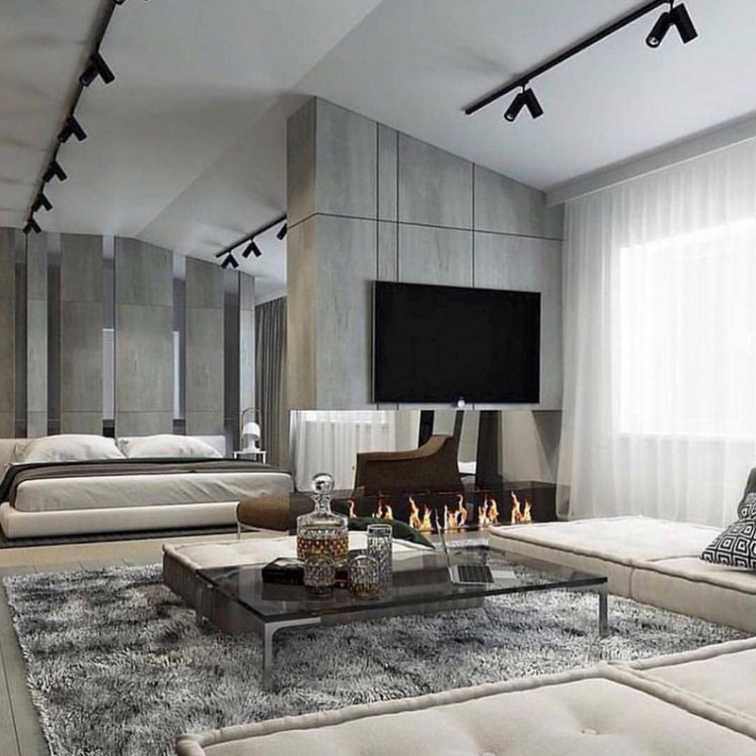 Гостиная с камином Минимализм