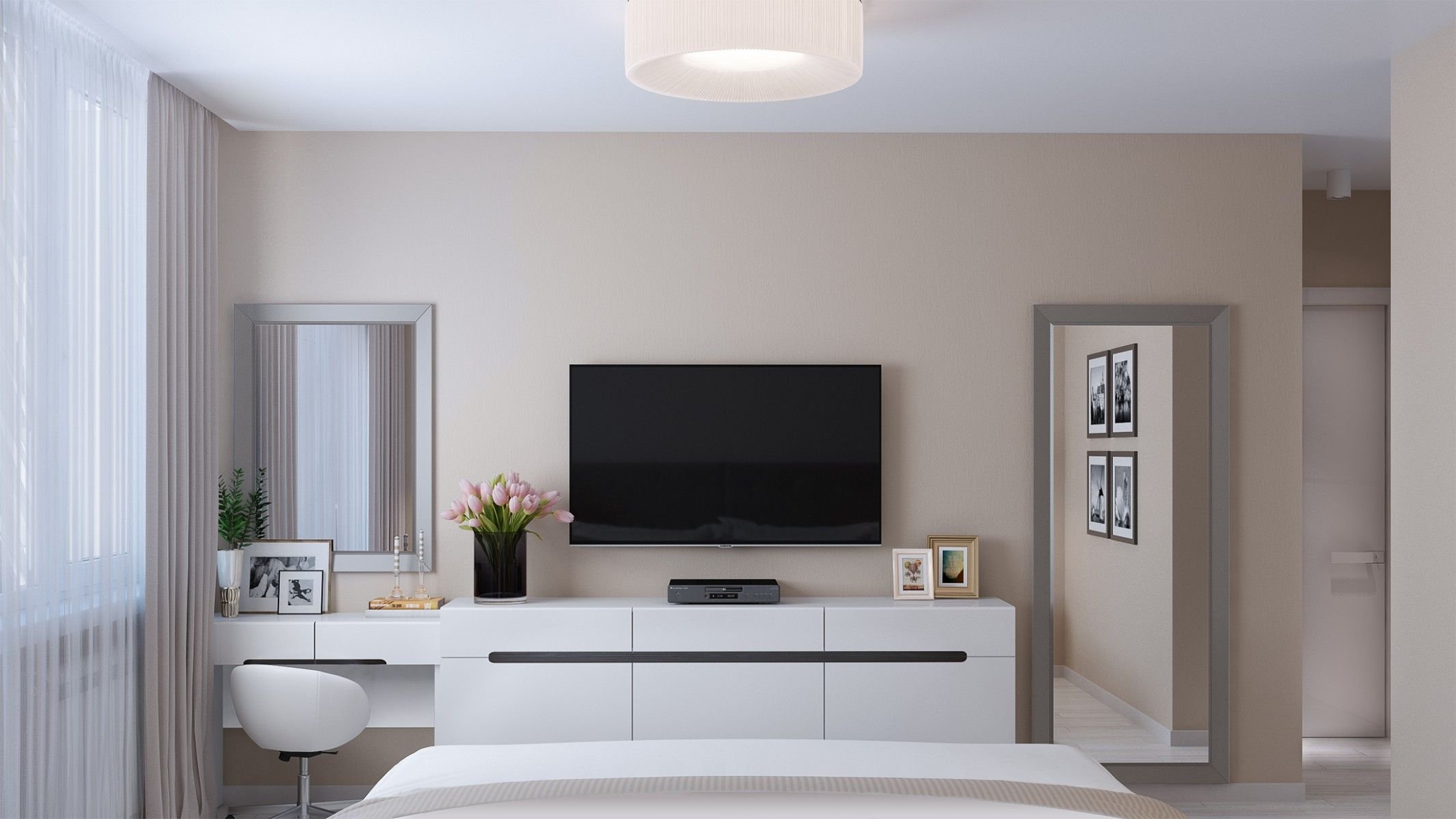 Спальная комната с комодом и шкафом