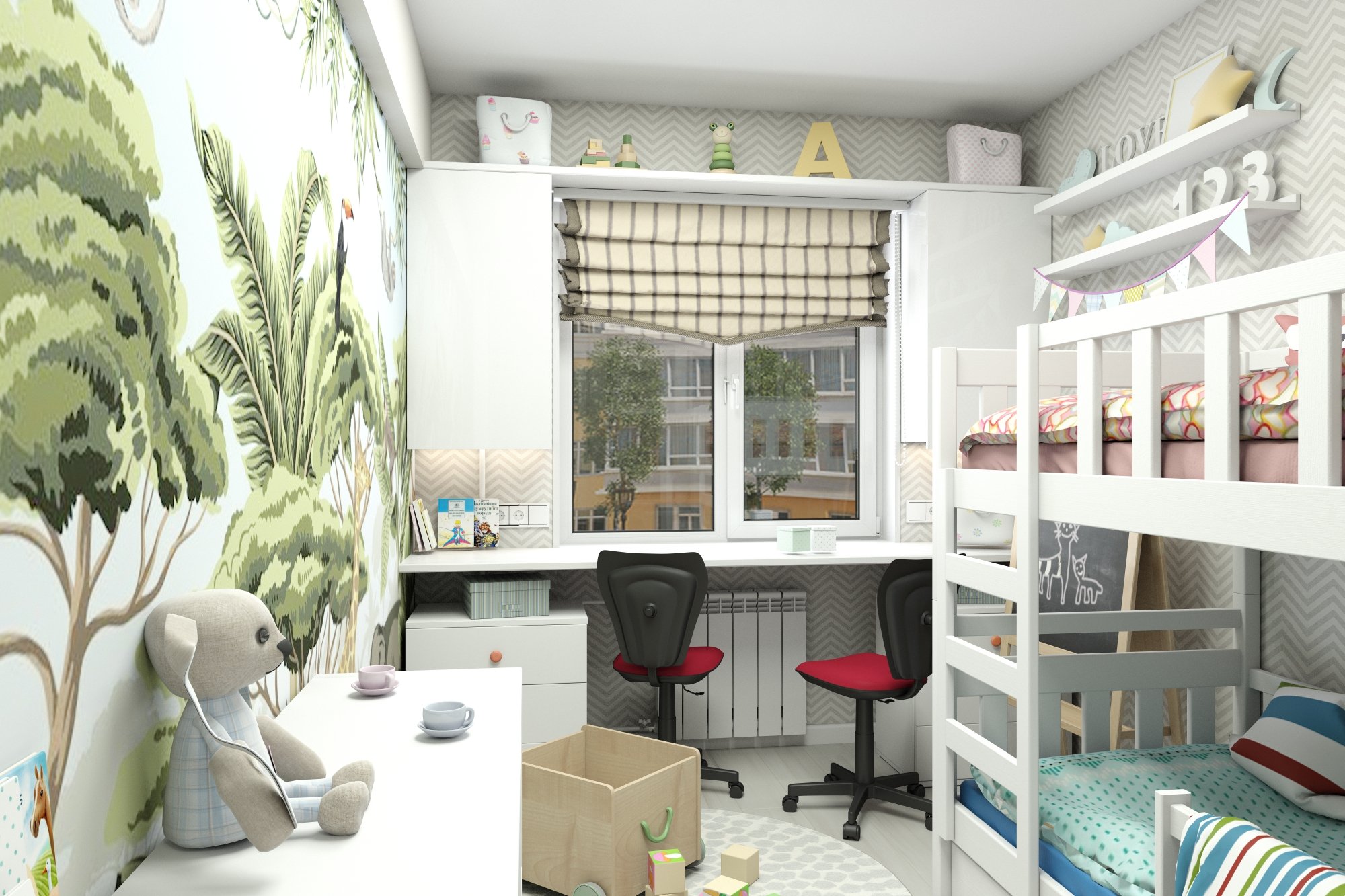 Комната для двоих разнополых детей 12 кв.м в хрущевке