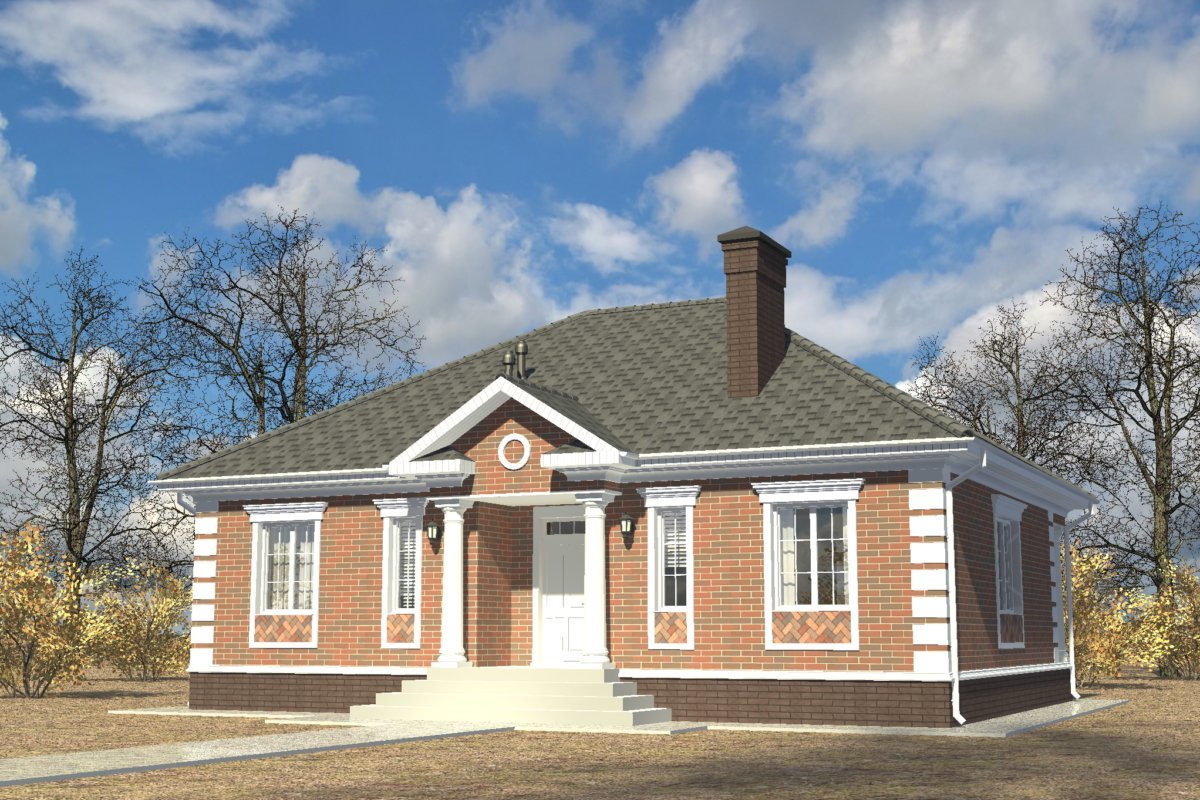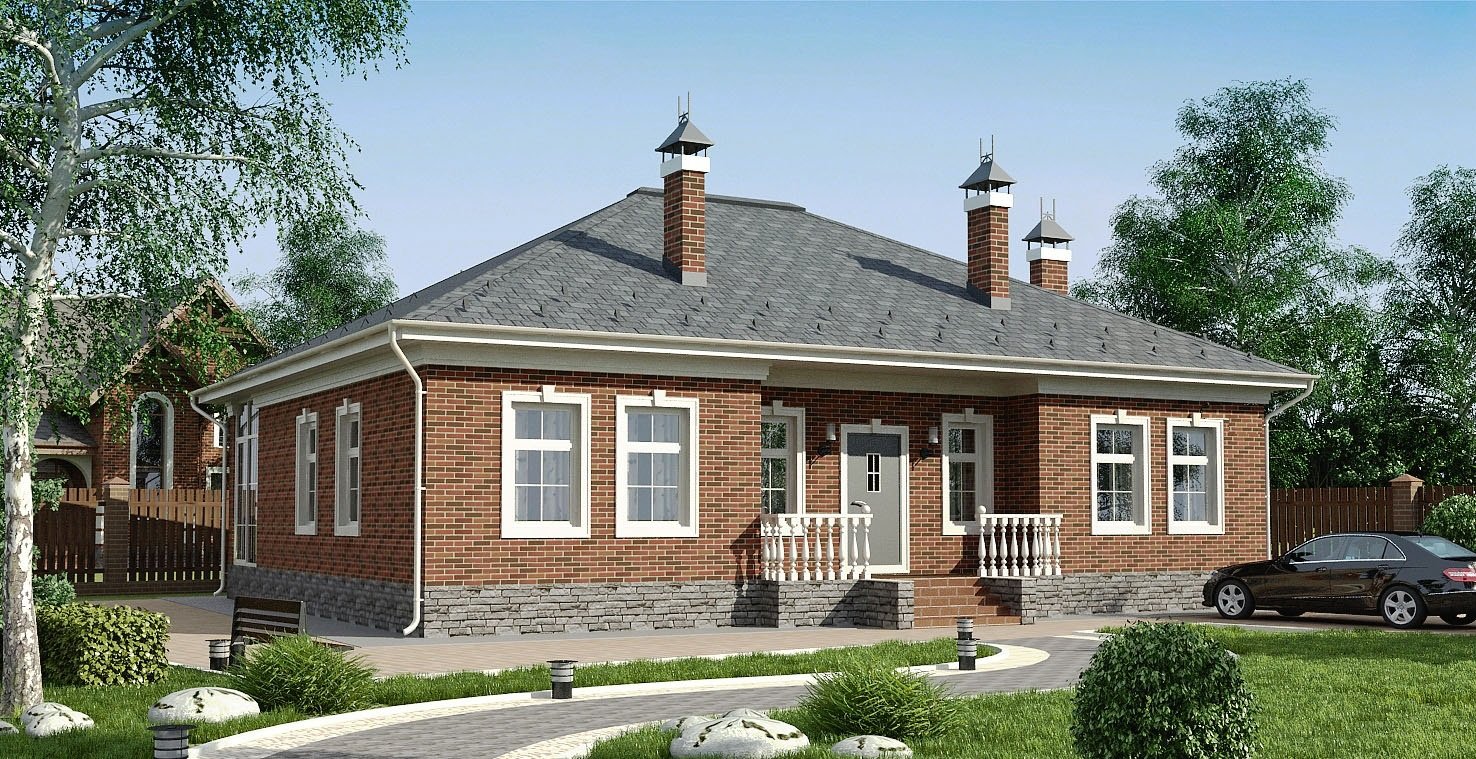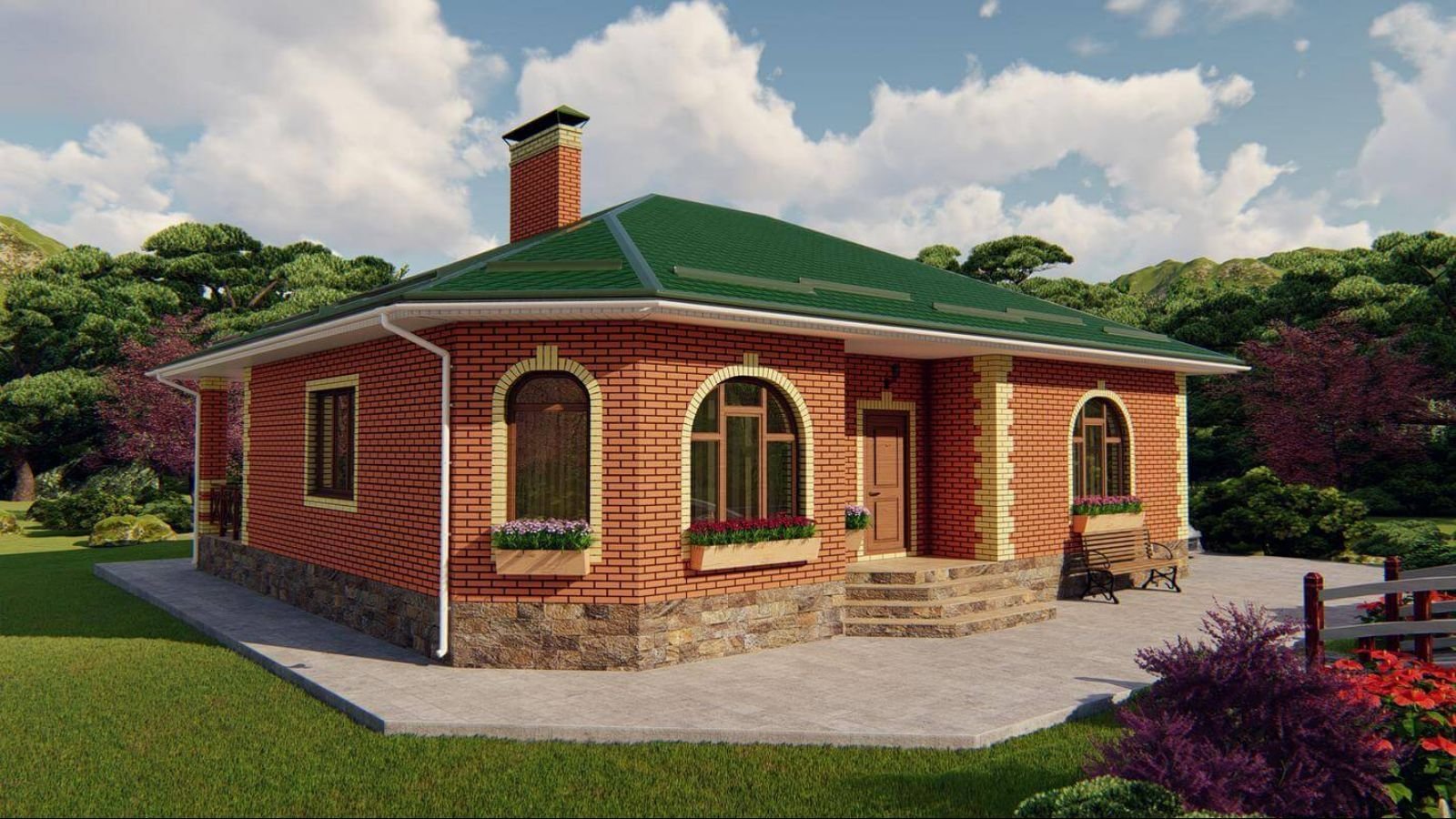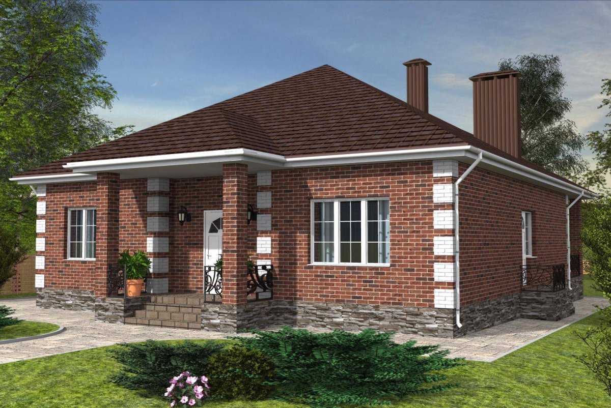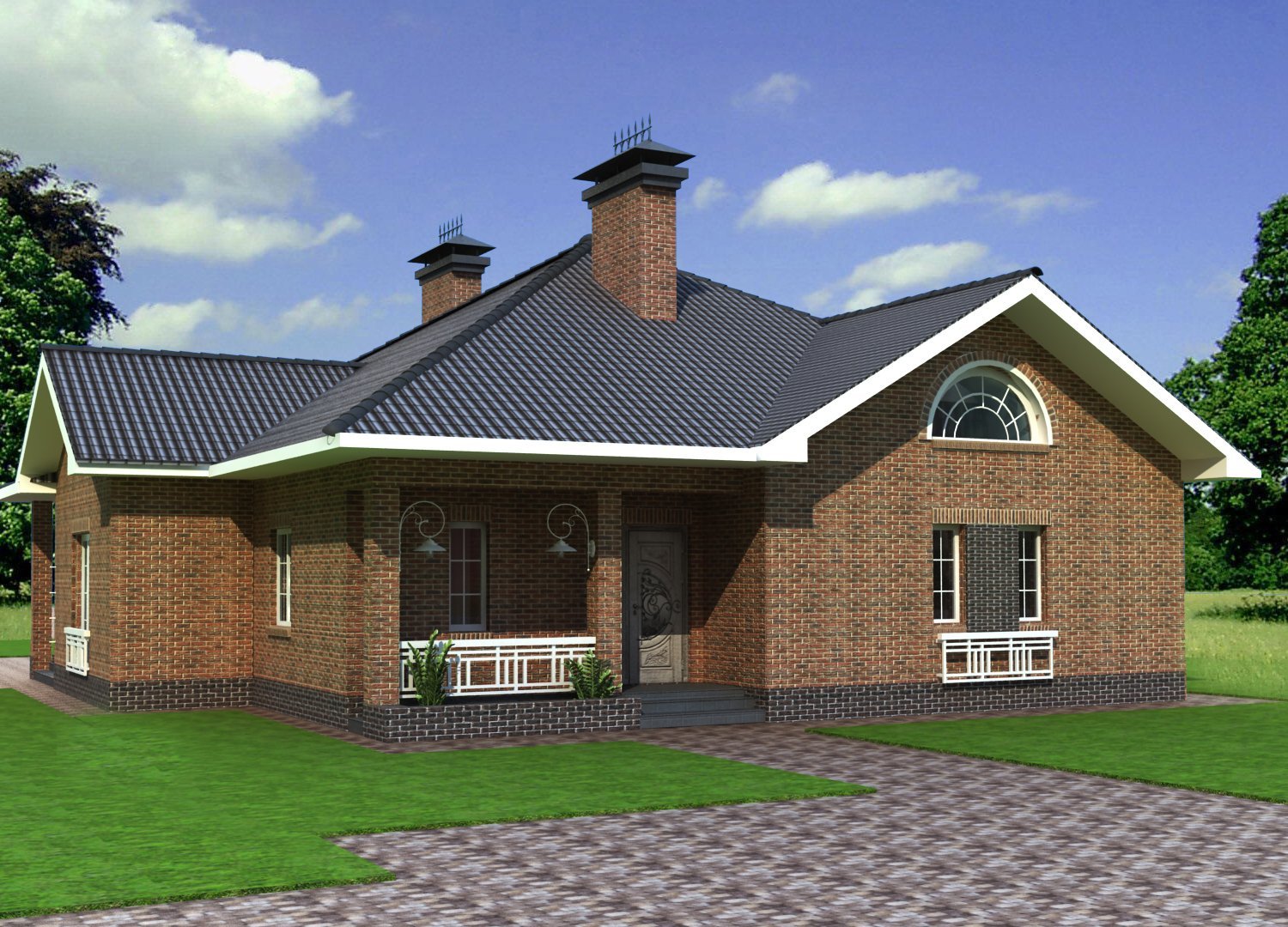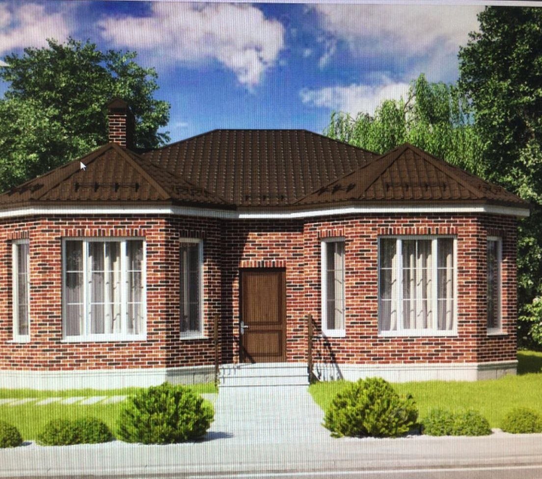 Дом кирпичный одноэтажный с эркером 100 кв м