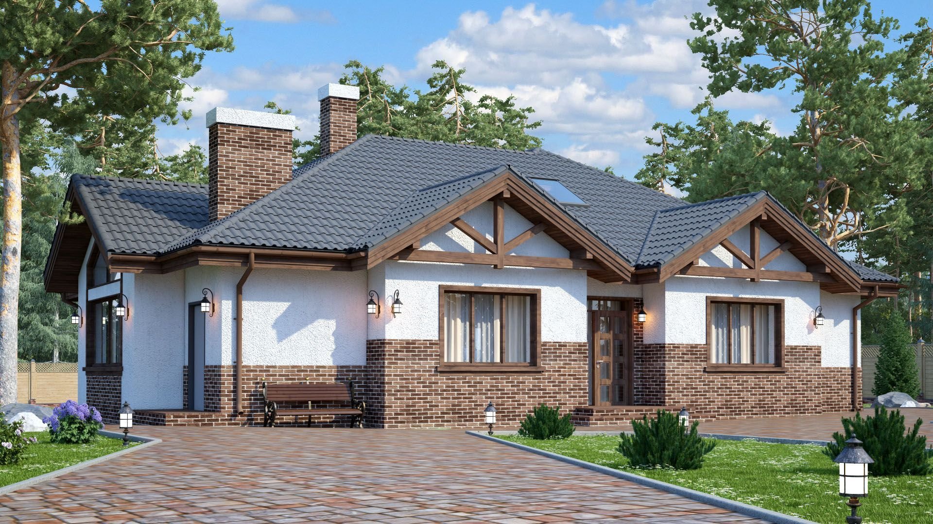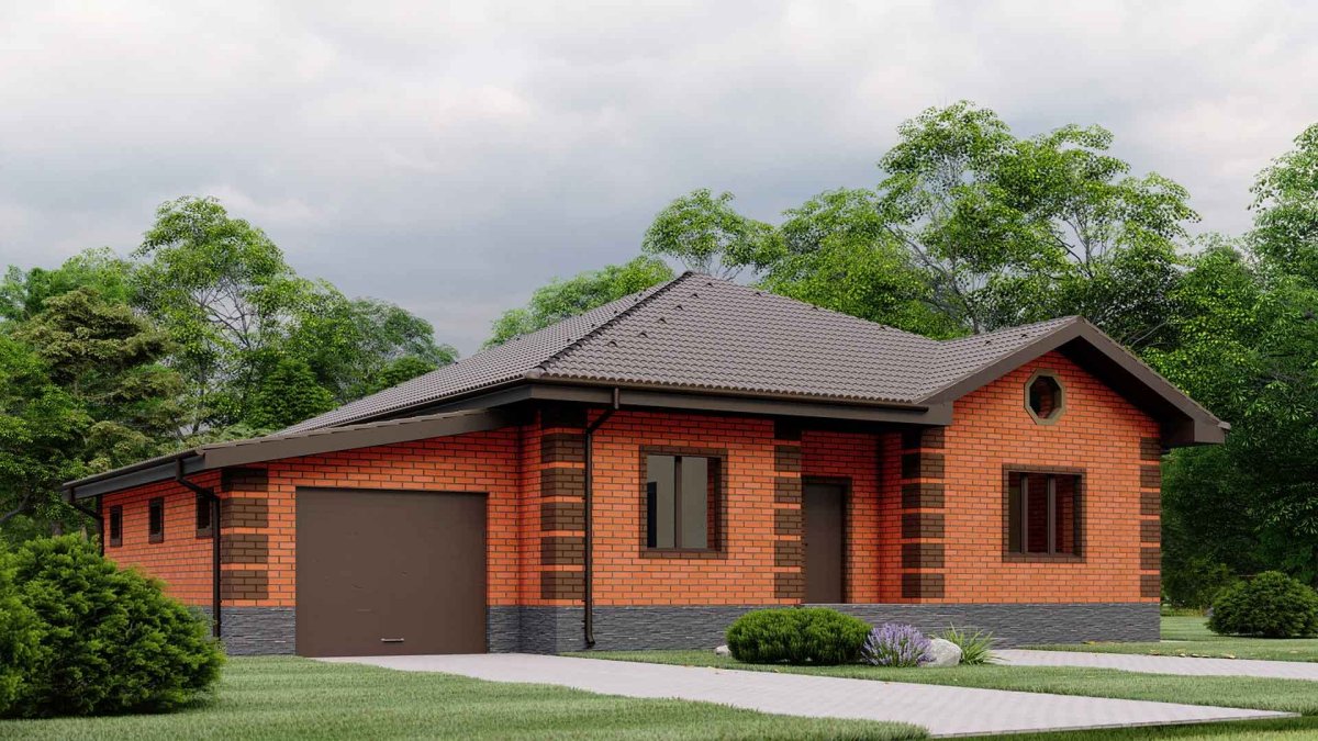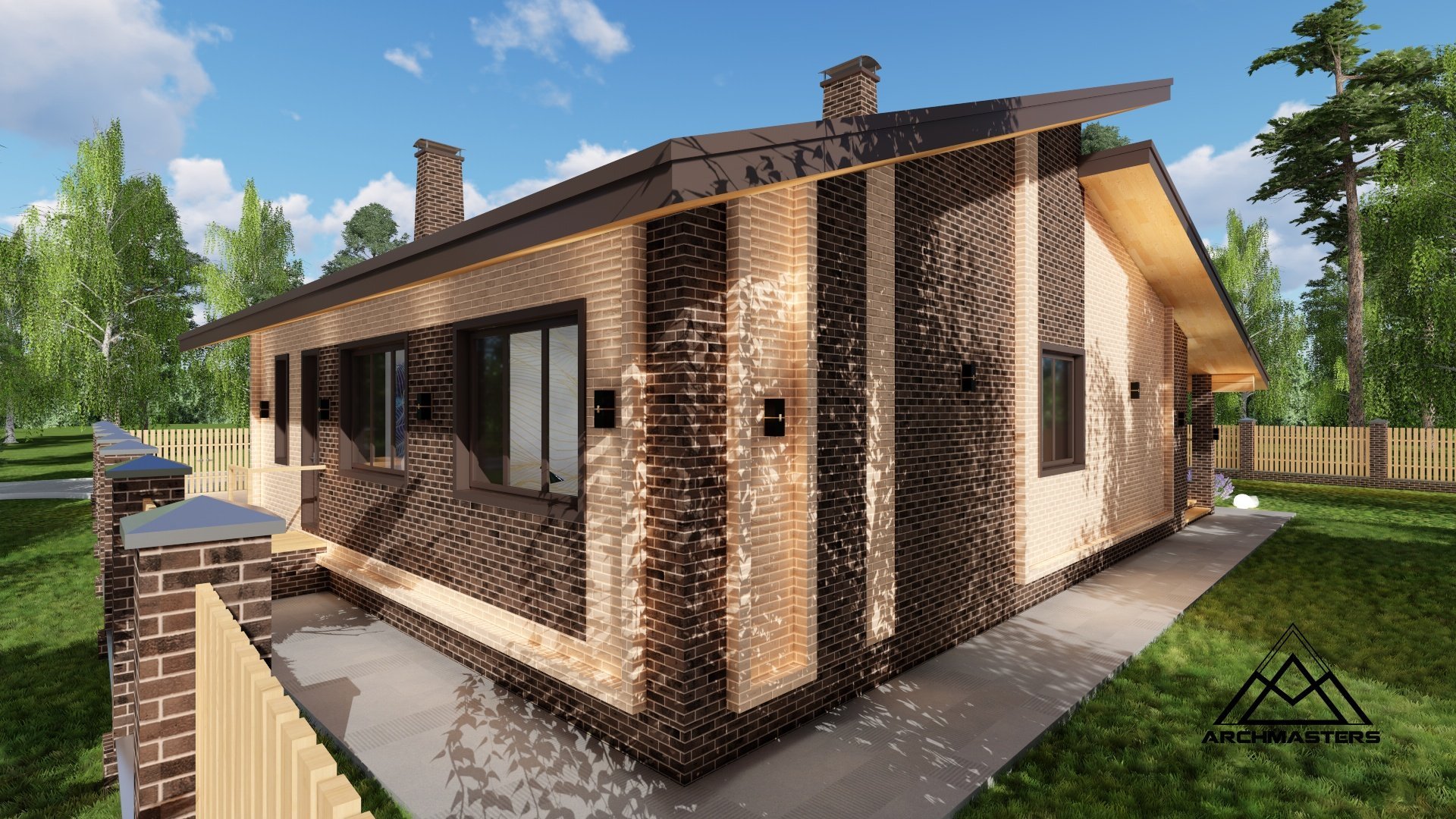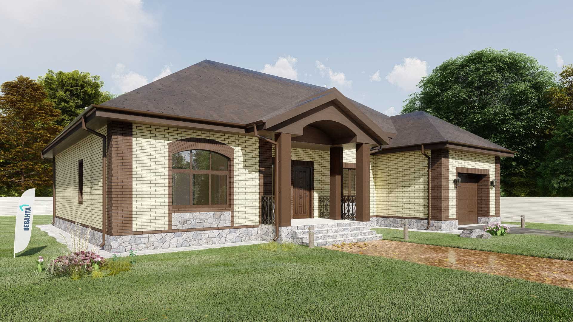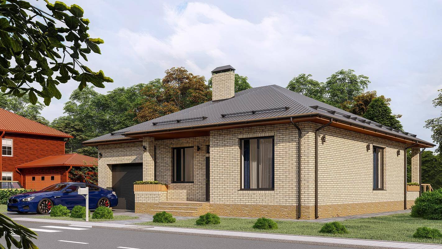 Дом кирпичный одноэтажный с эркером 100 кв м