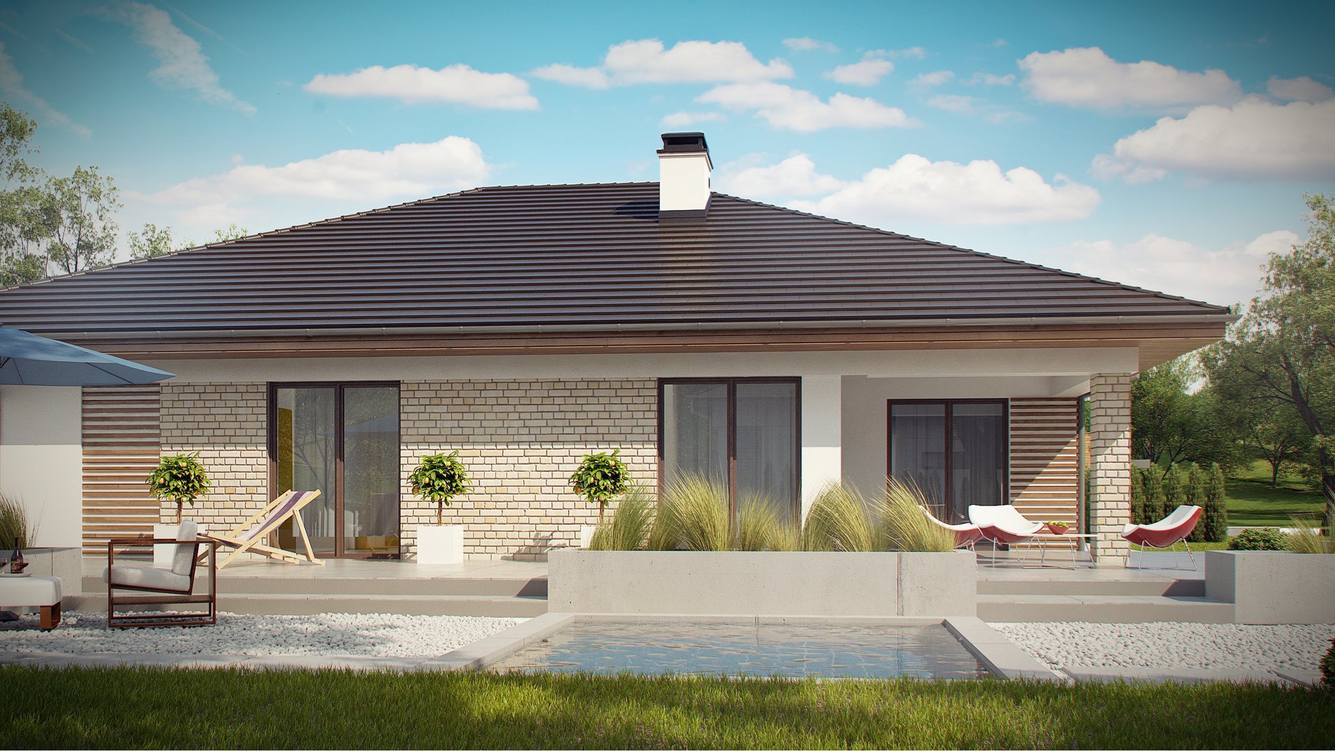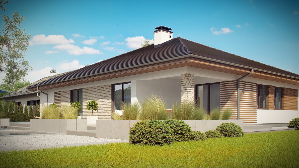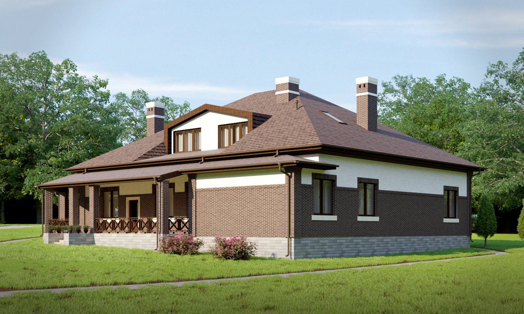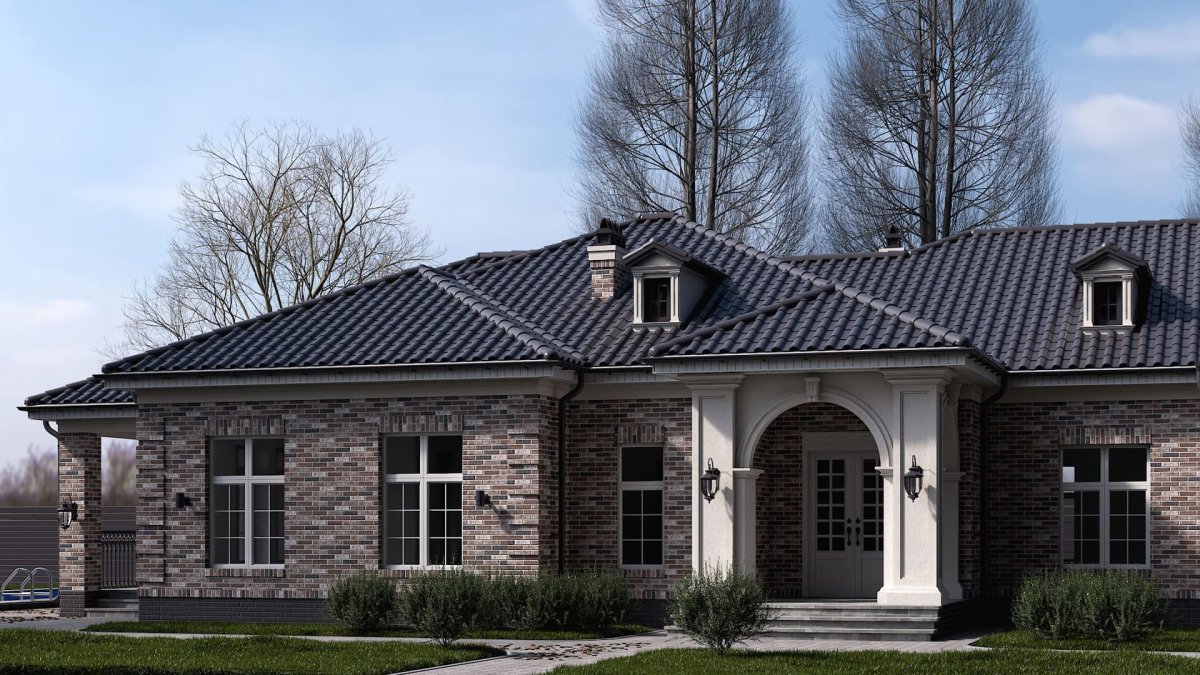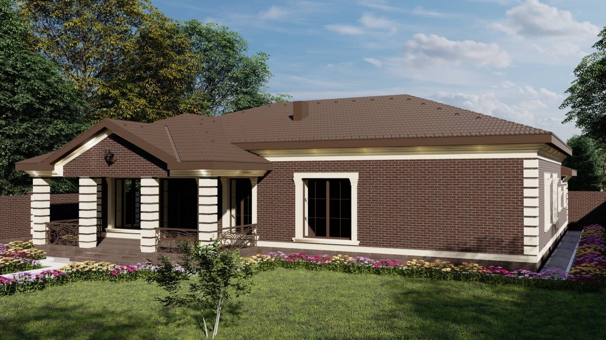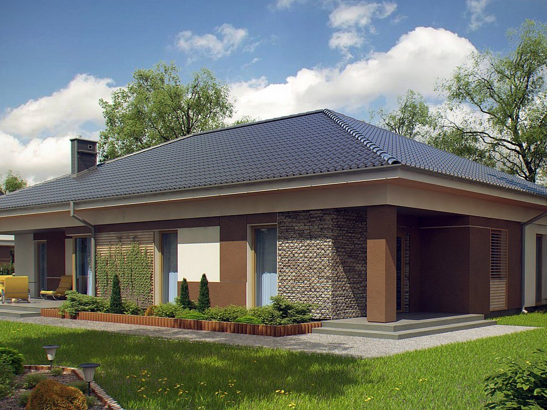 Дом кирпичный одноэтажный с эркером 100 кв м