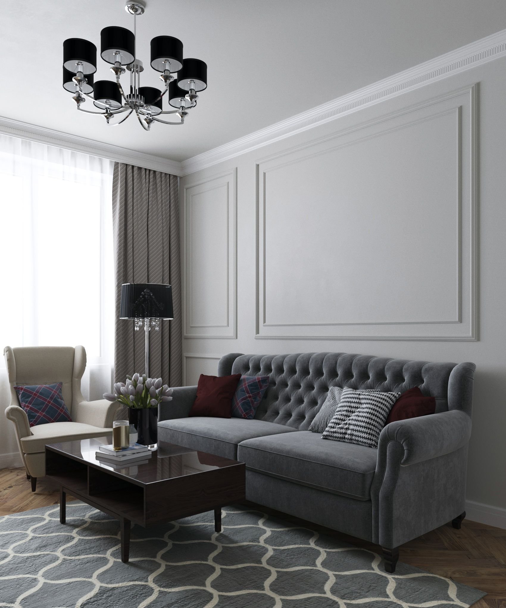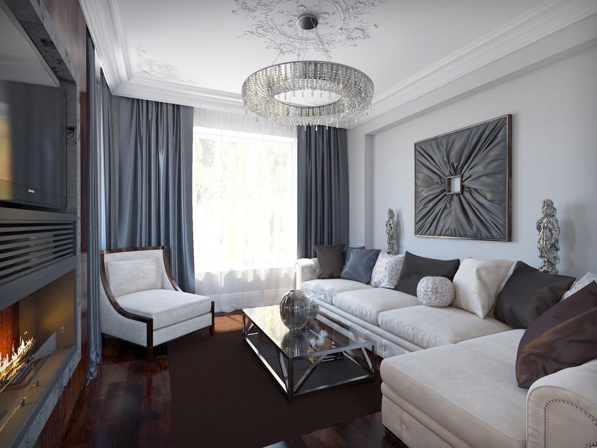 Линкруста в интерьере гостиной в стиле Неоклассика