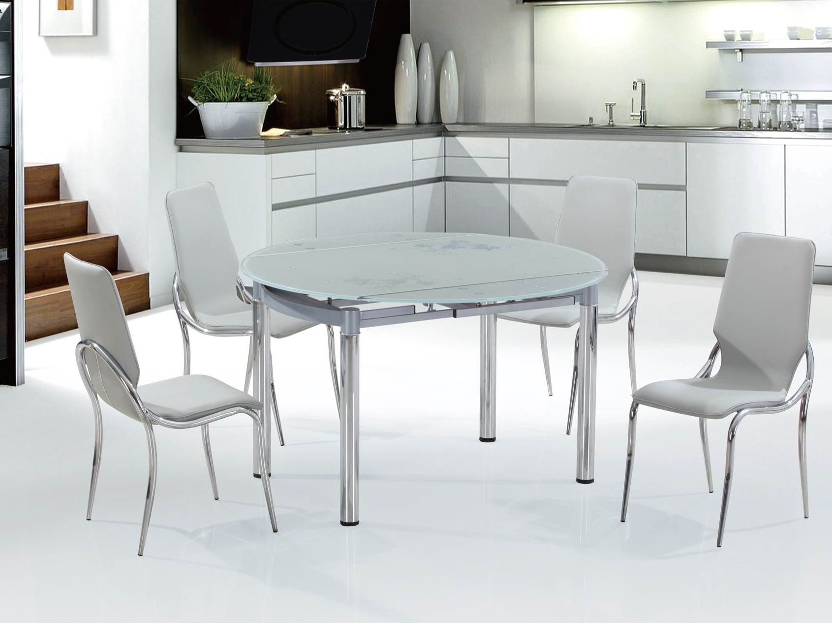 Белый стеклянный стол на кухню раздвижной