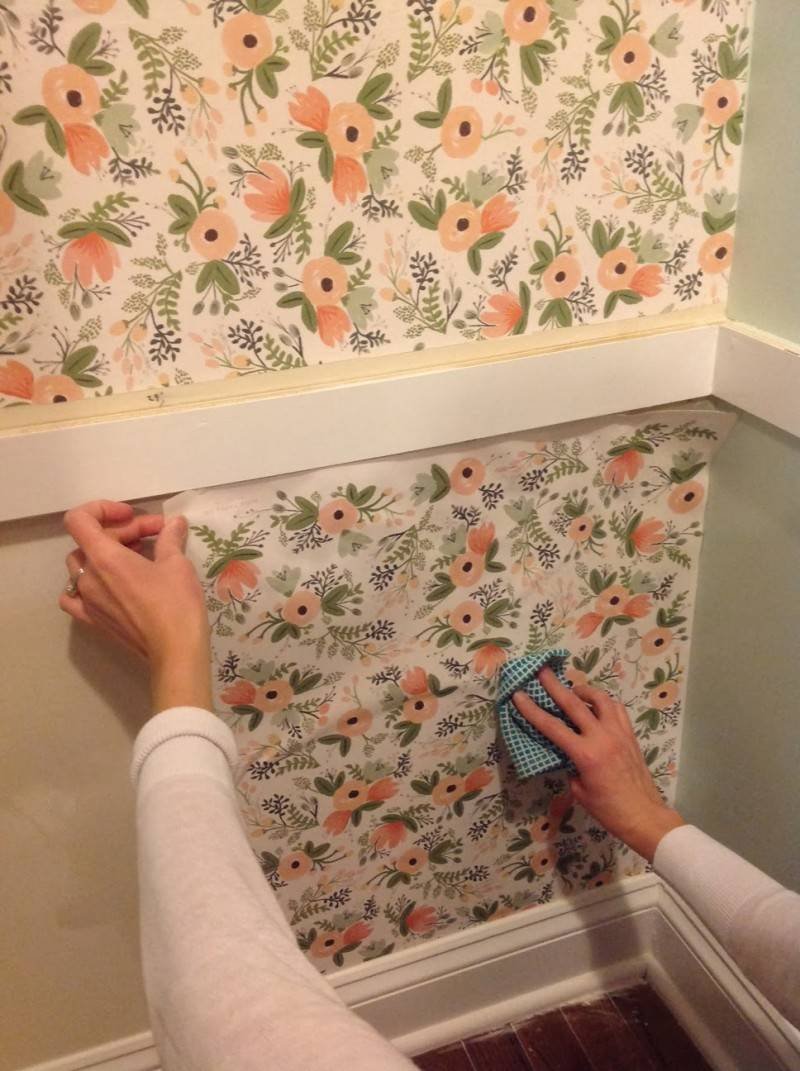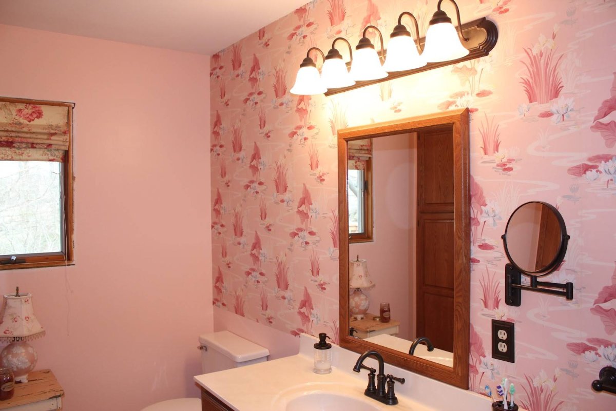 Отделка обоями стены в ванной