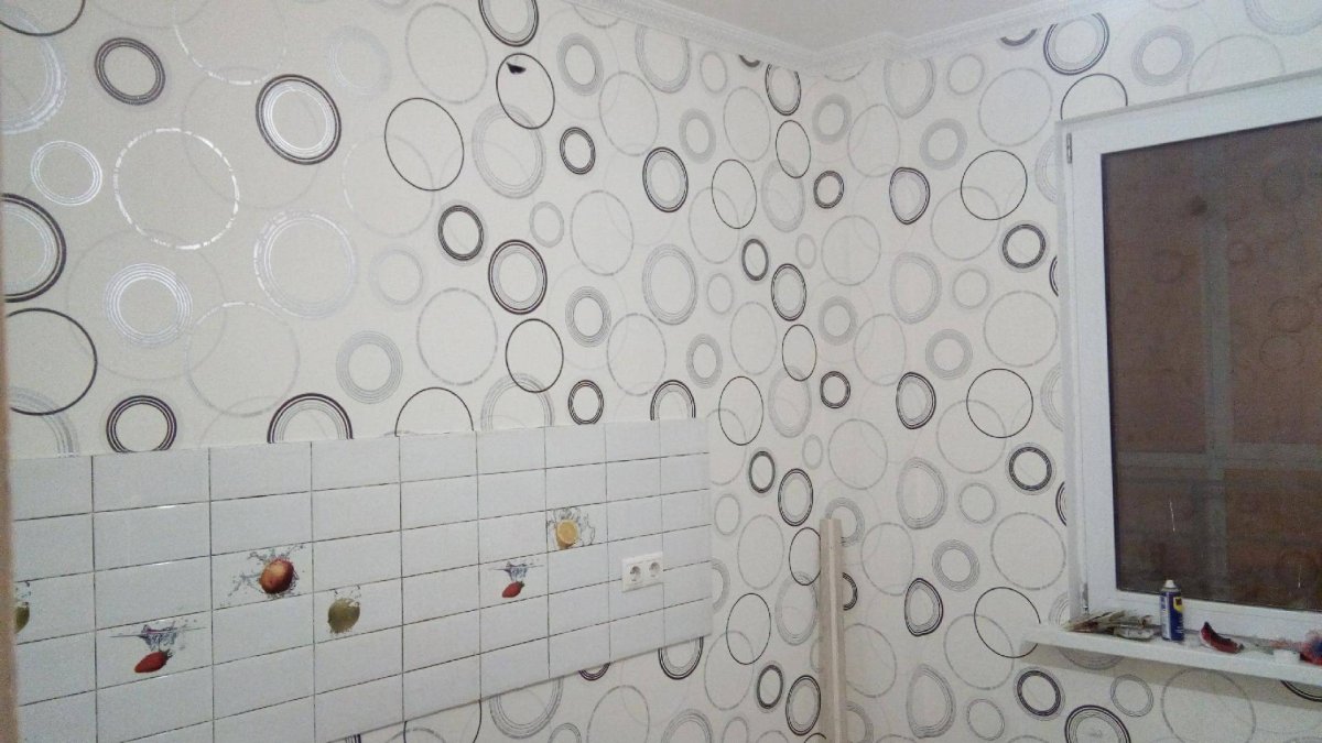 Обои с кругами на кухне