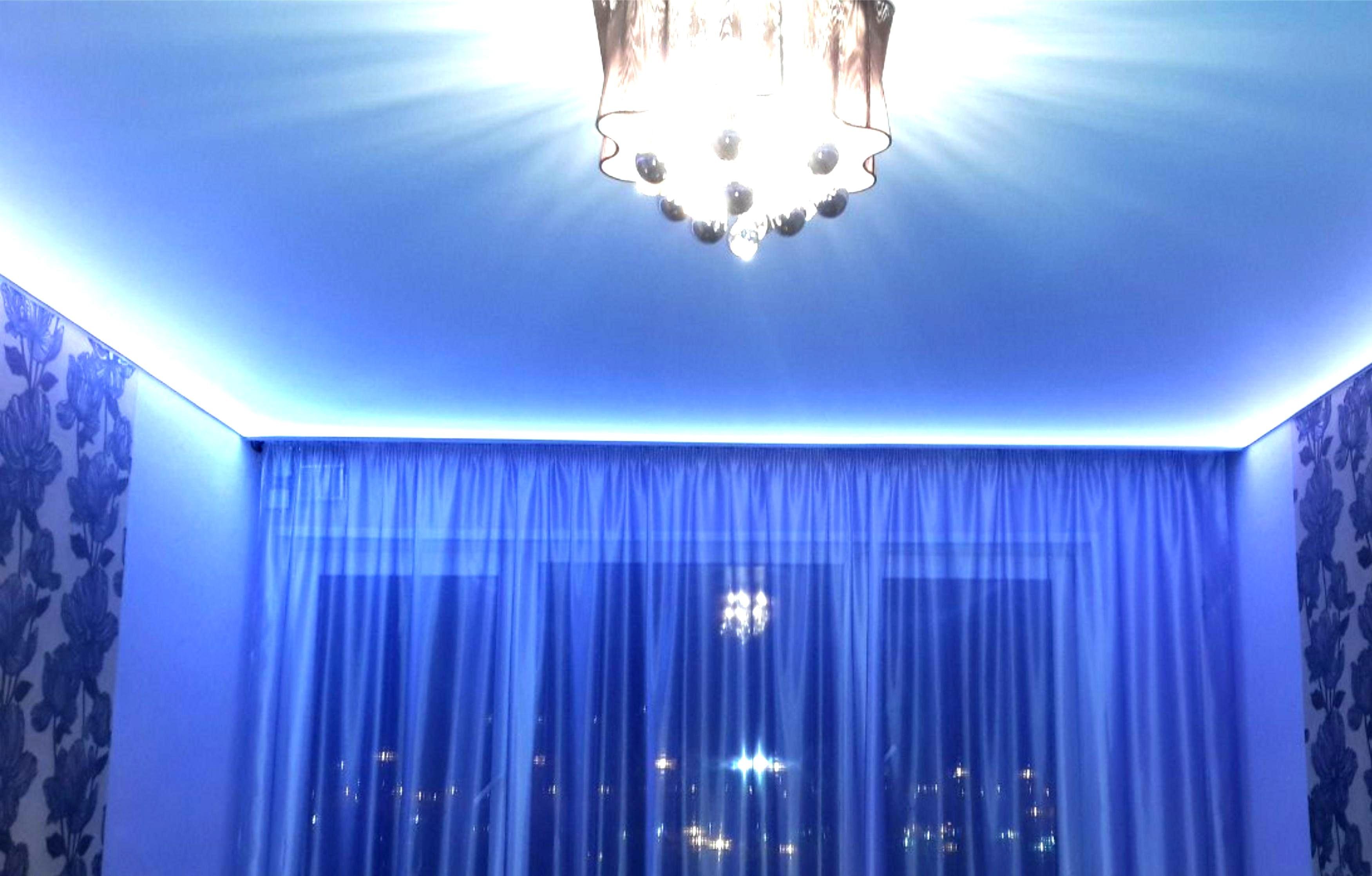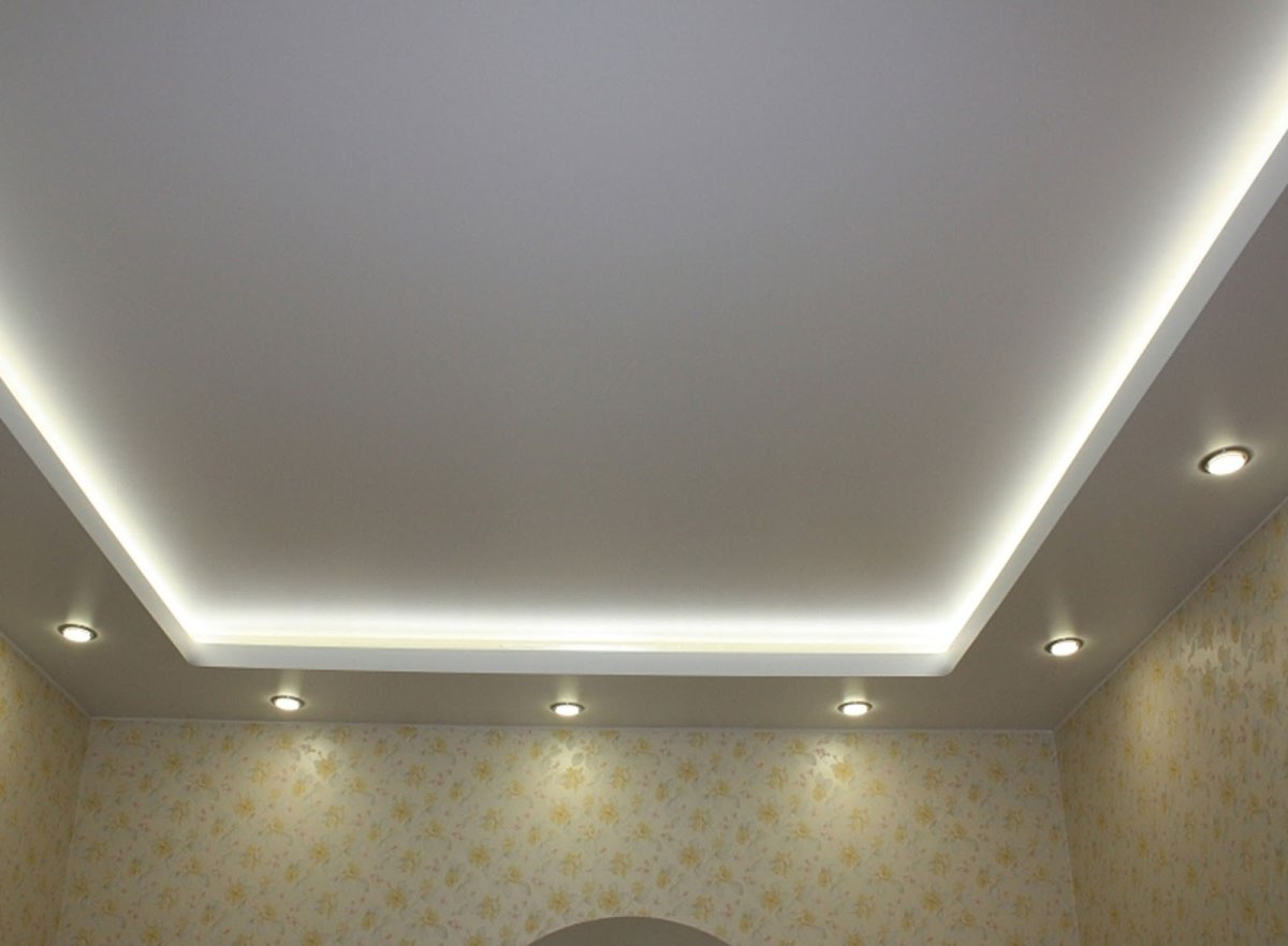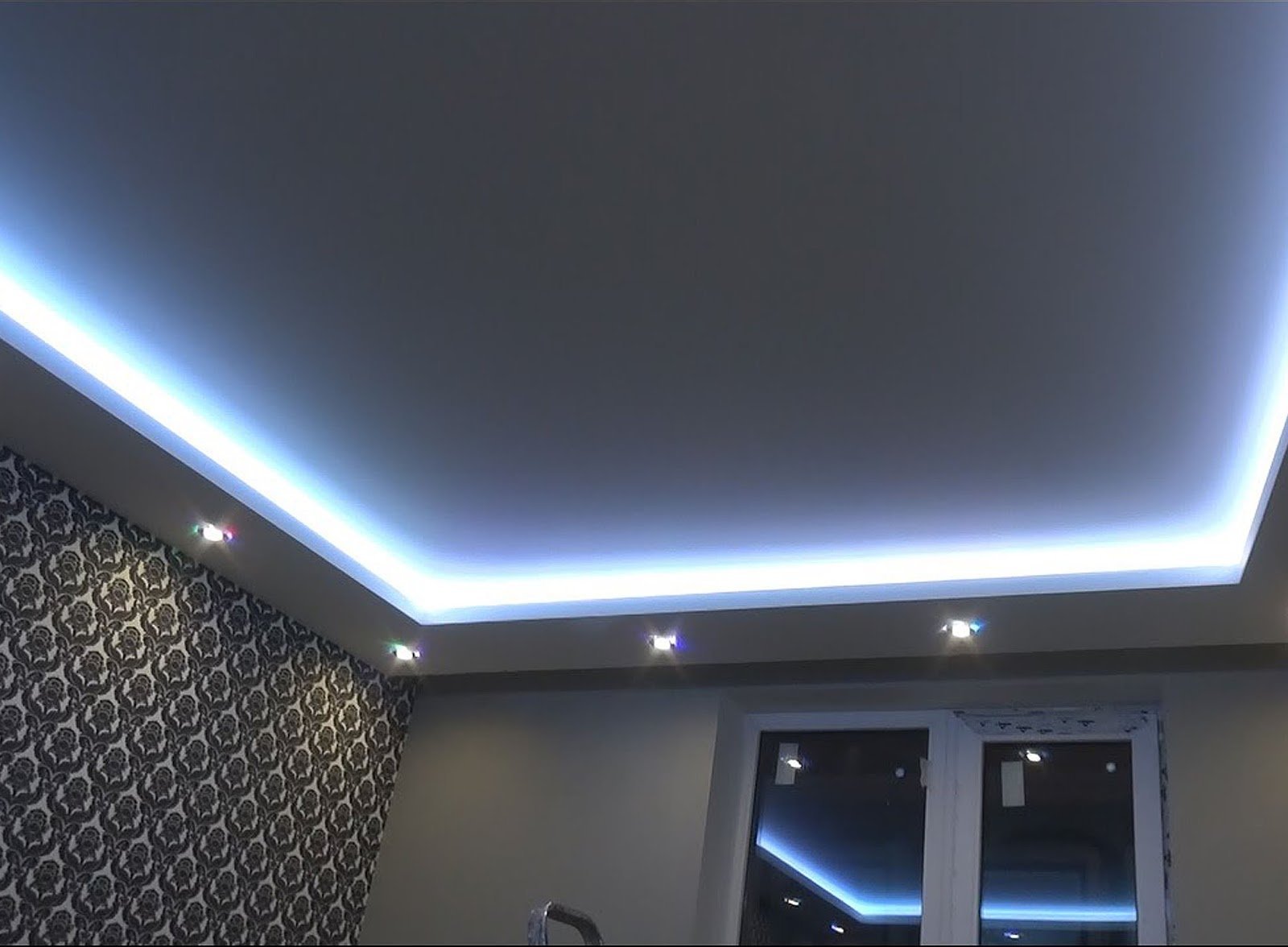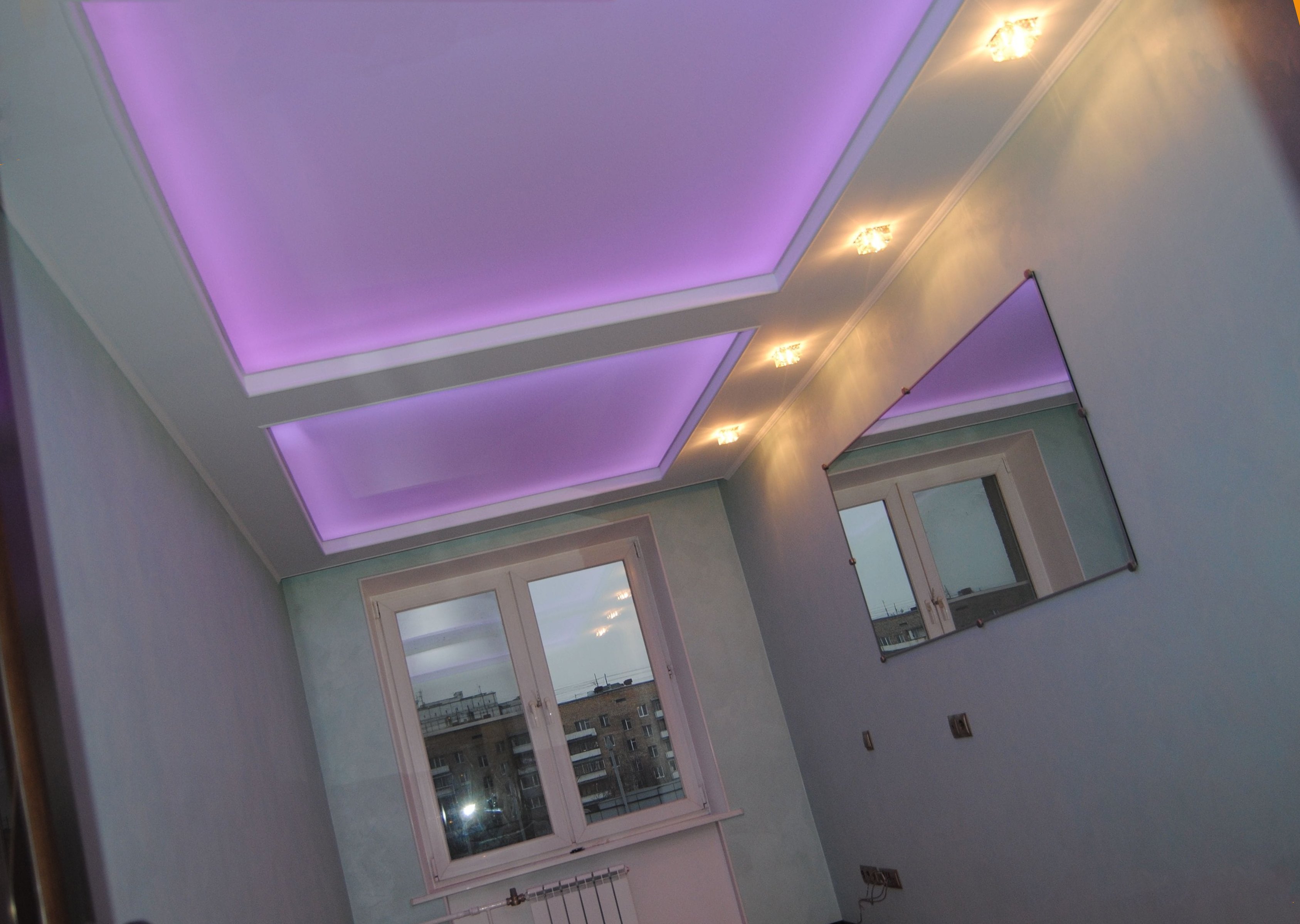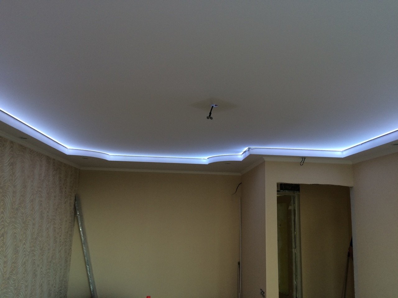 Гипсокартонный потолок двухуровневый со светодиодной подсветкой