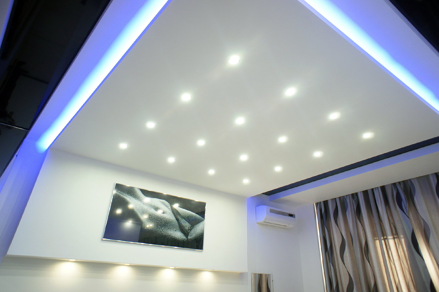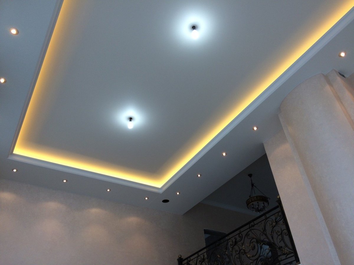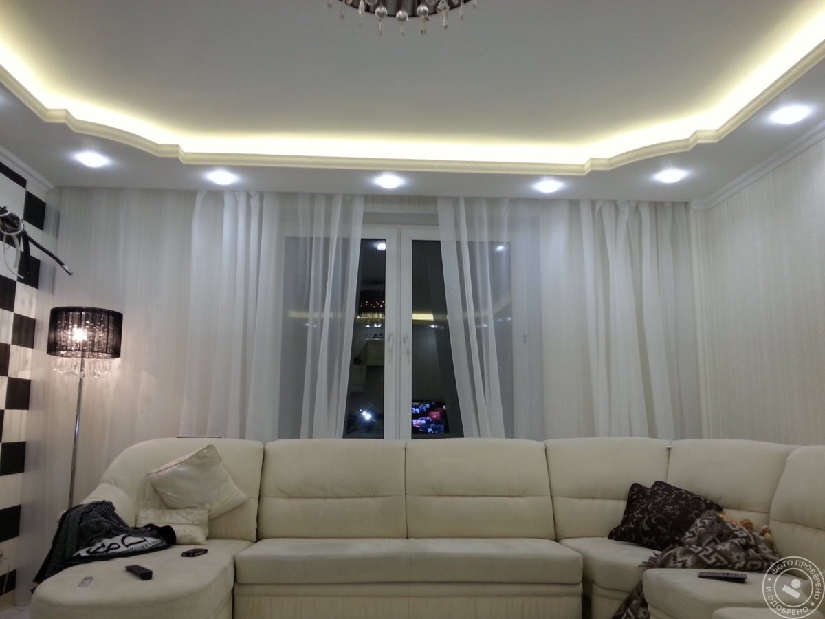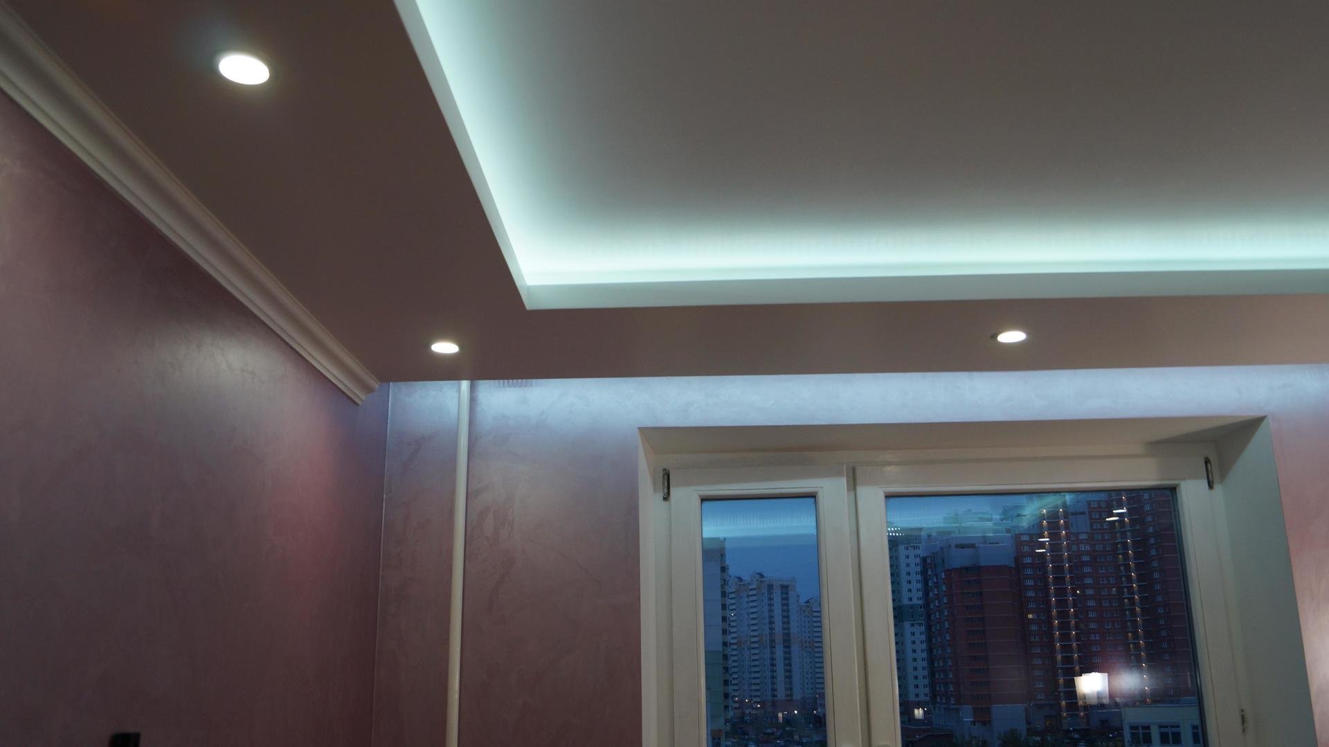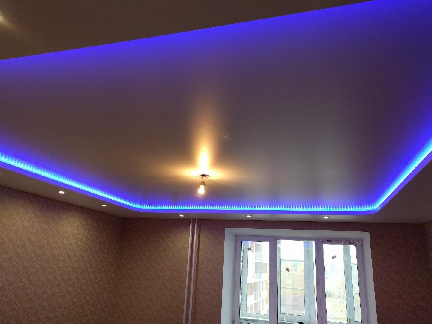 Гипсокартонный потолок двухуровневый со светодиодной подсветкой