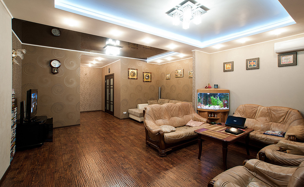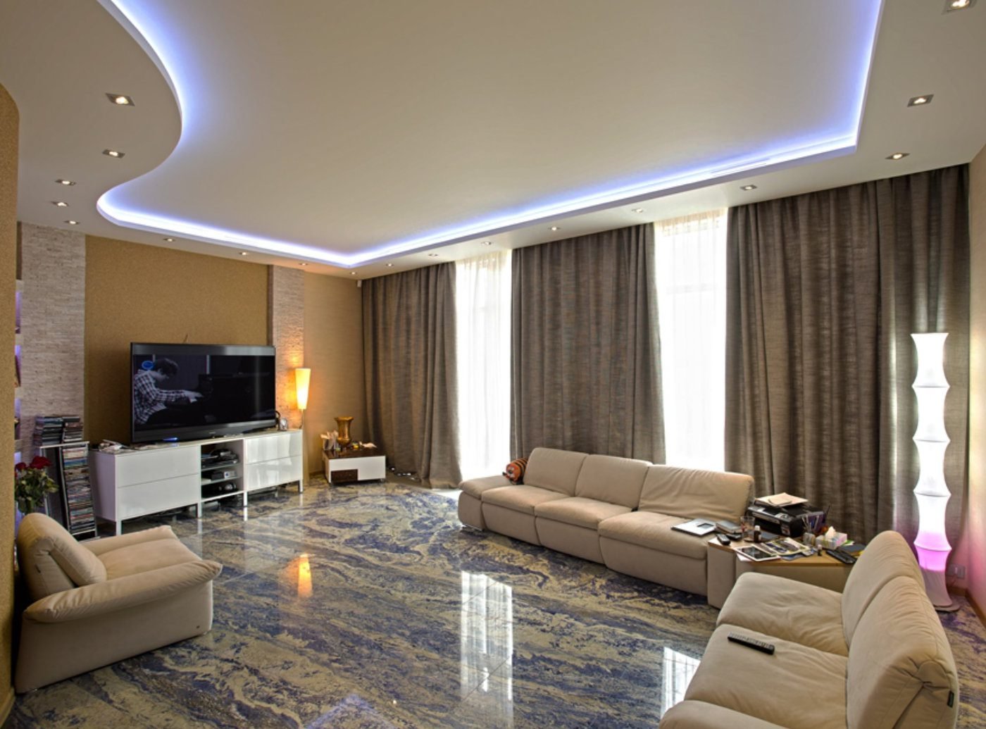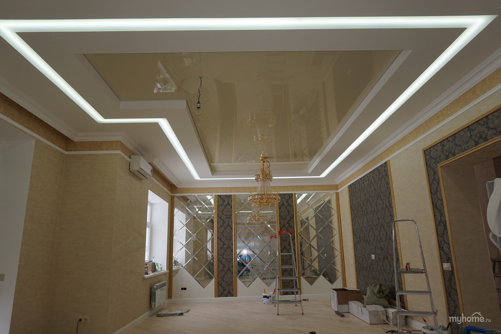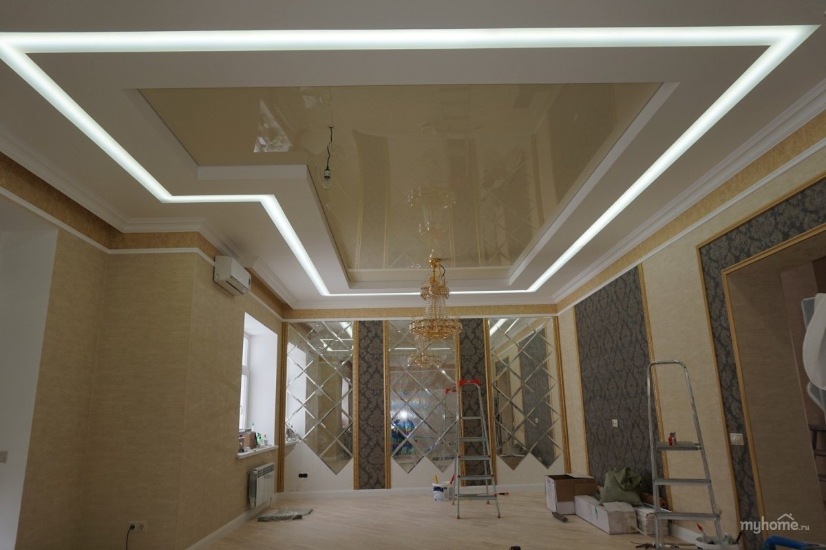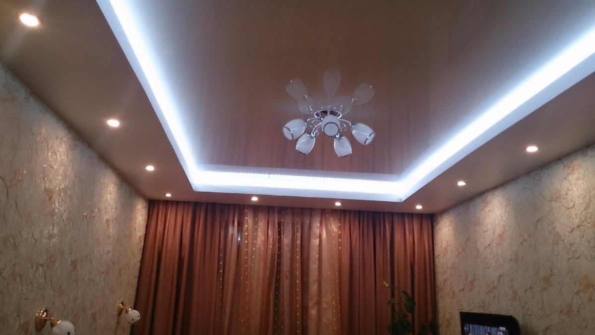 Гипсокартонный потолок двухуровневый со светодиодной подсветкой