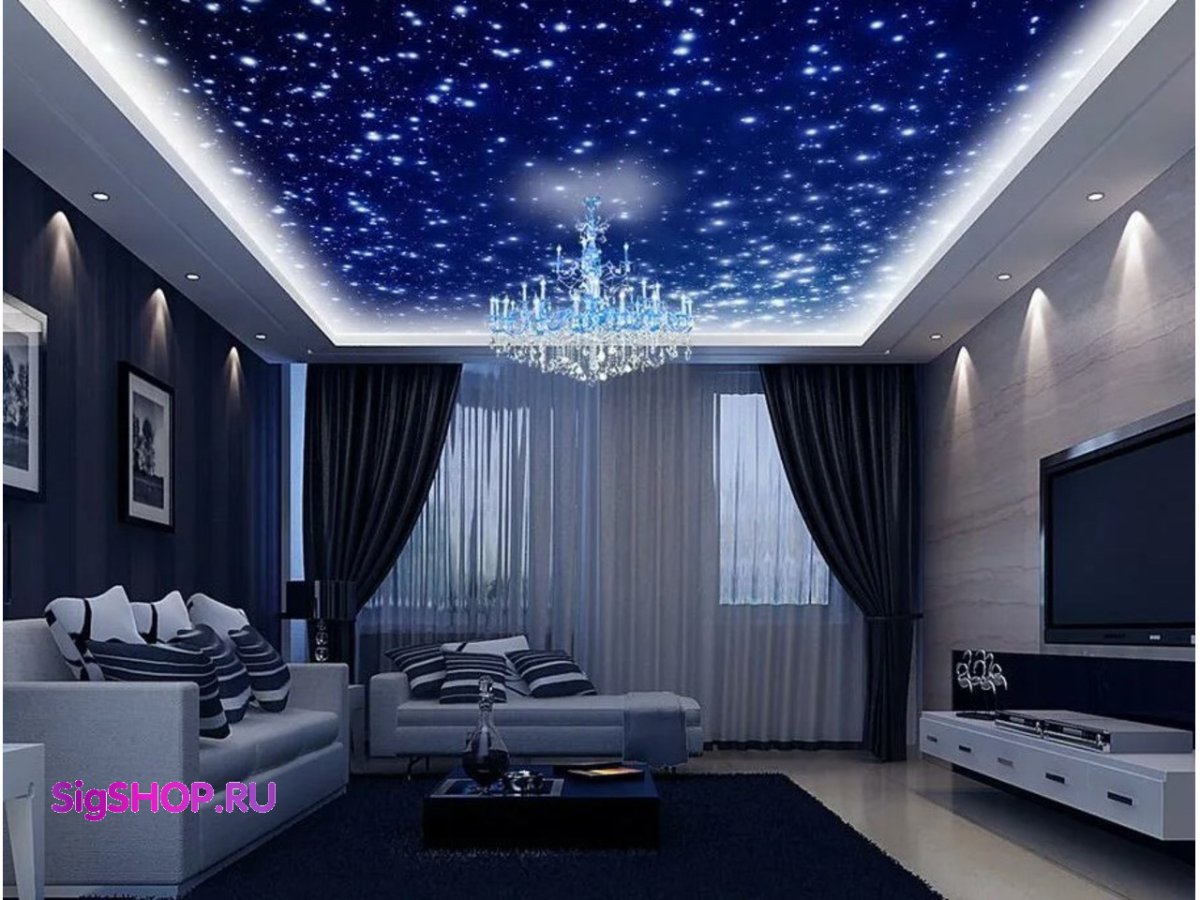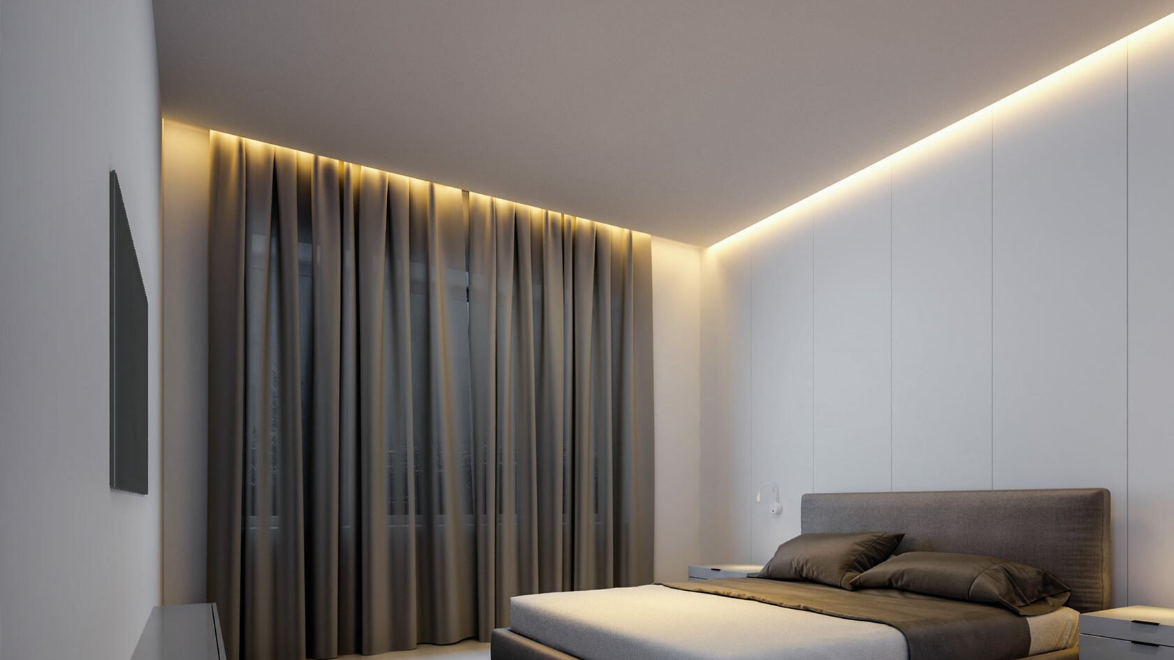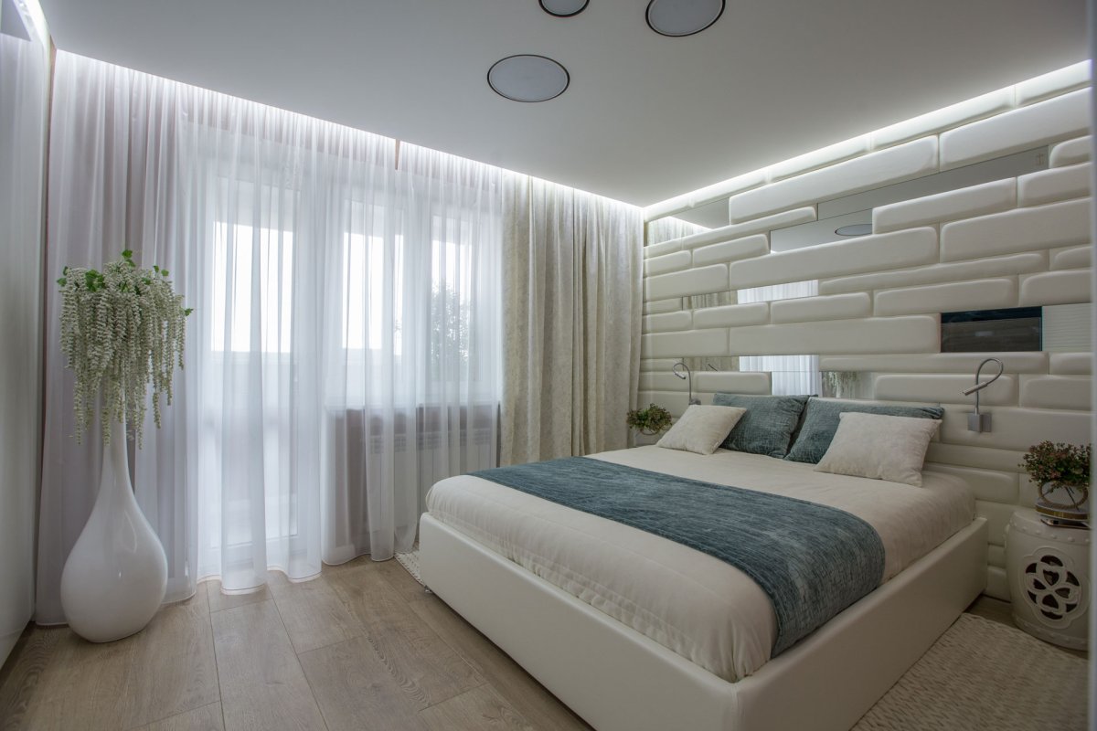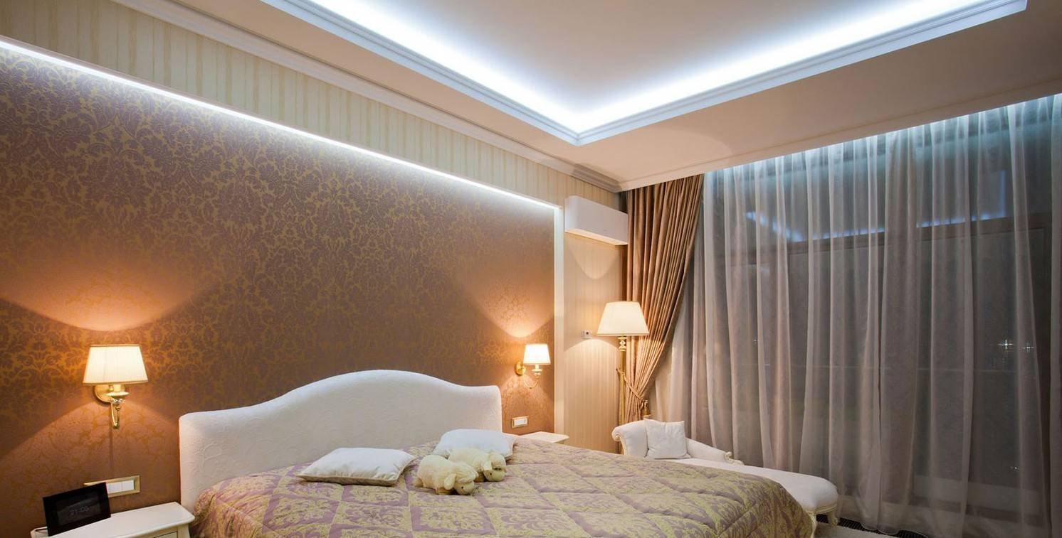 Потолок из гипсокартона с подсветкой в спальне 12кв м