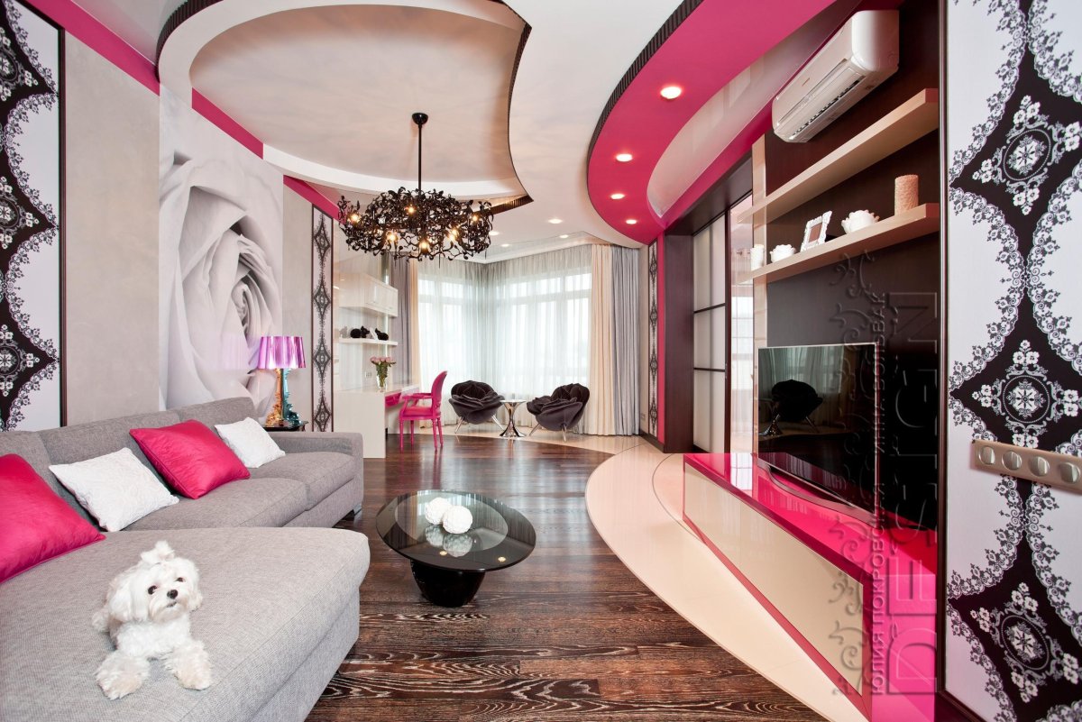 Комната с розовым потолком