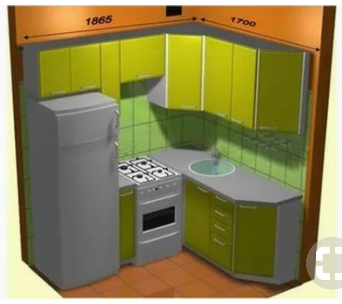 Кухня на 6/6кв метров с холодильником и стиральной машиной