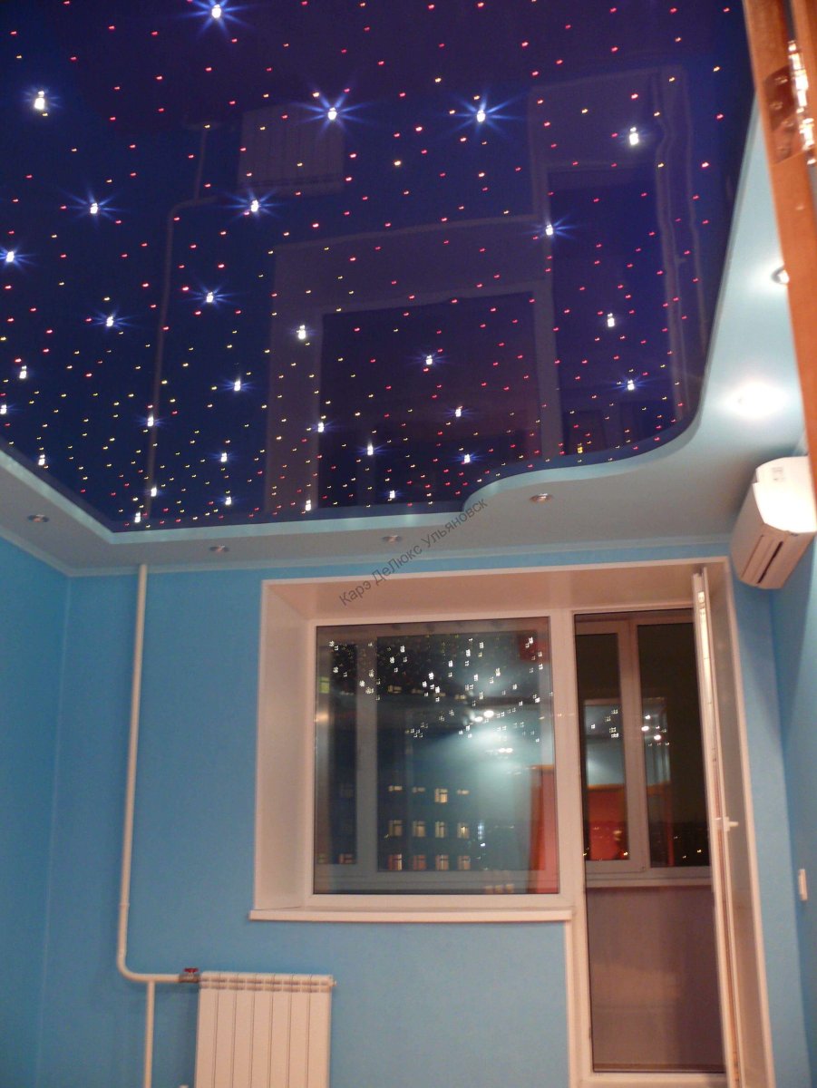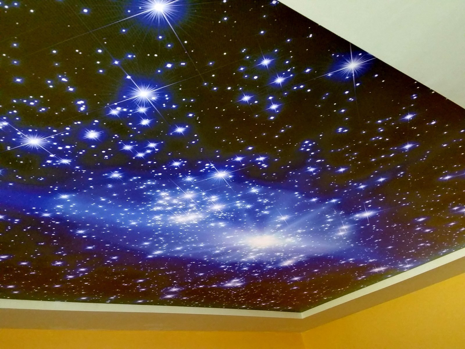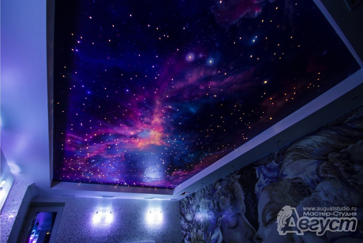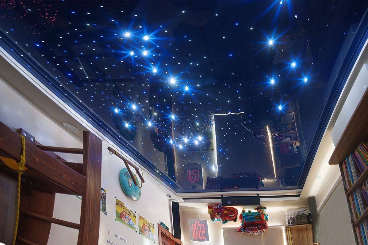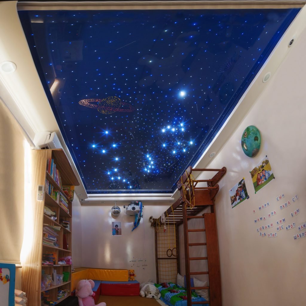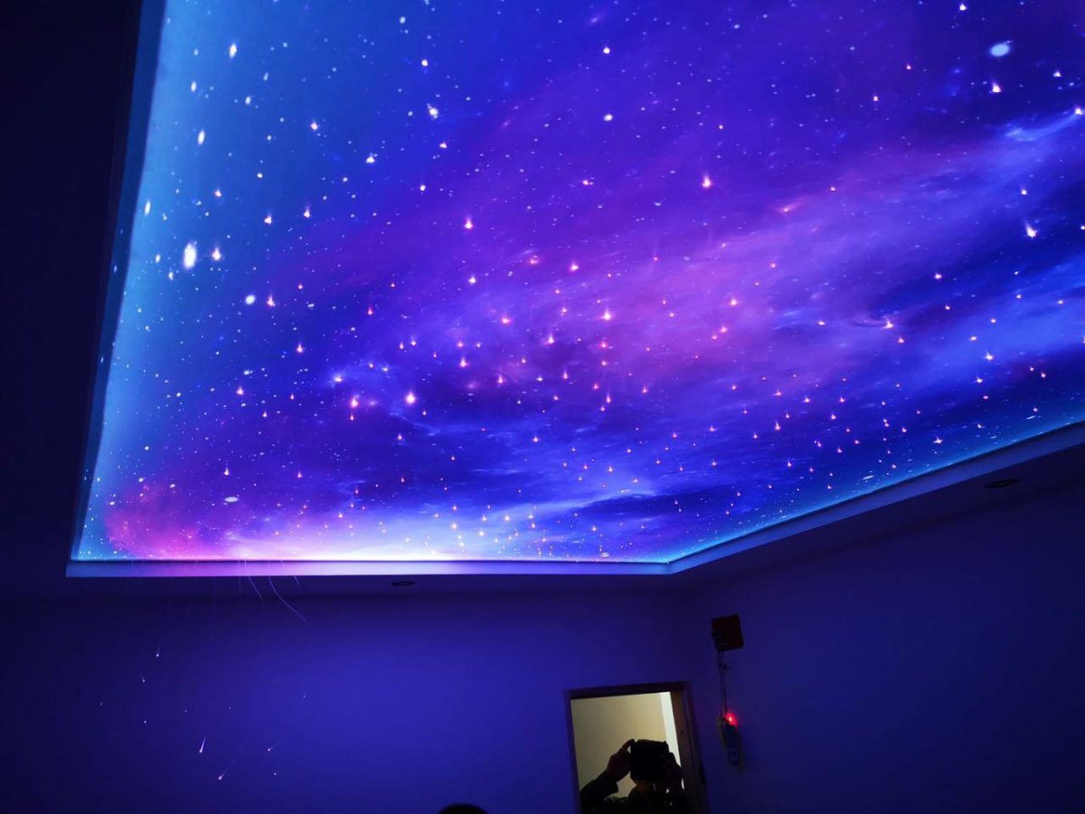 Натяжной потолок Звёздное небо с подсветкой в спальне