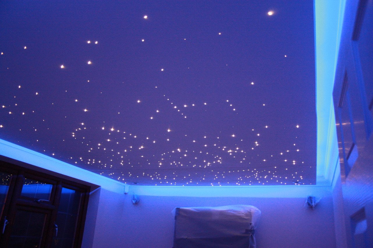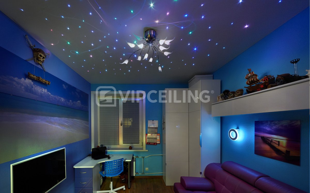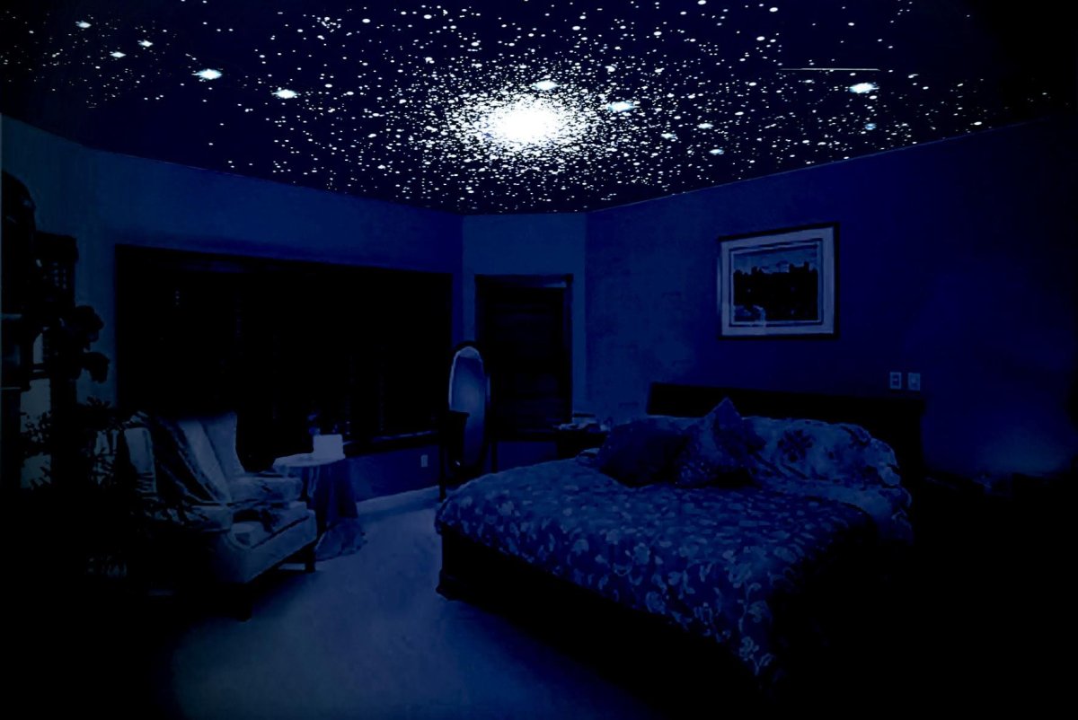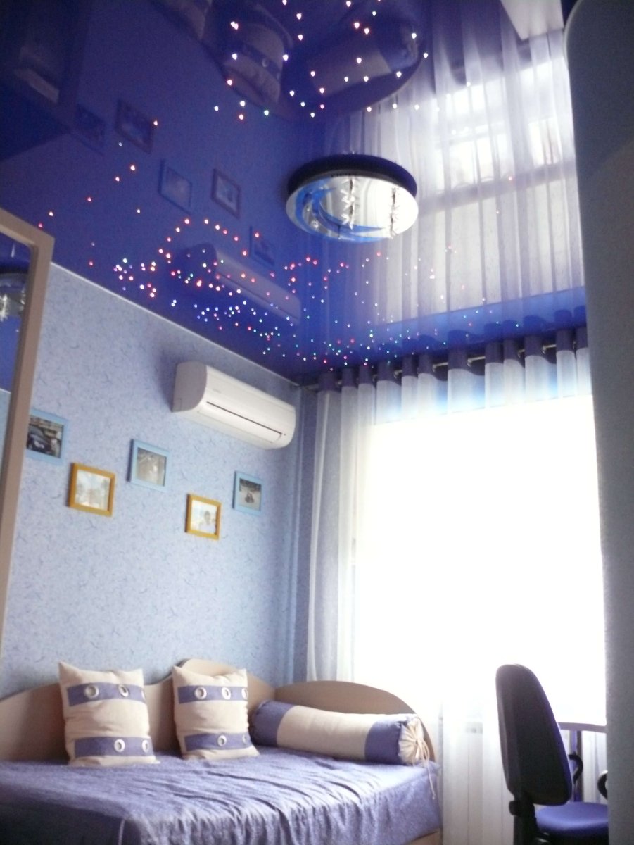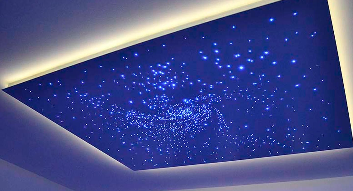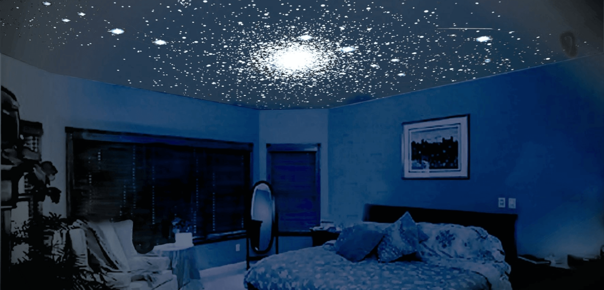Натяжной потолок Звёздное небо с подсветкой в спальне