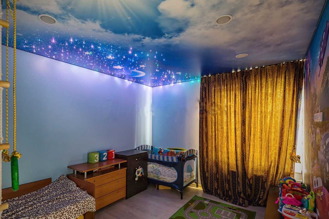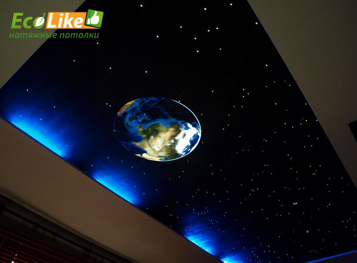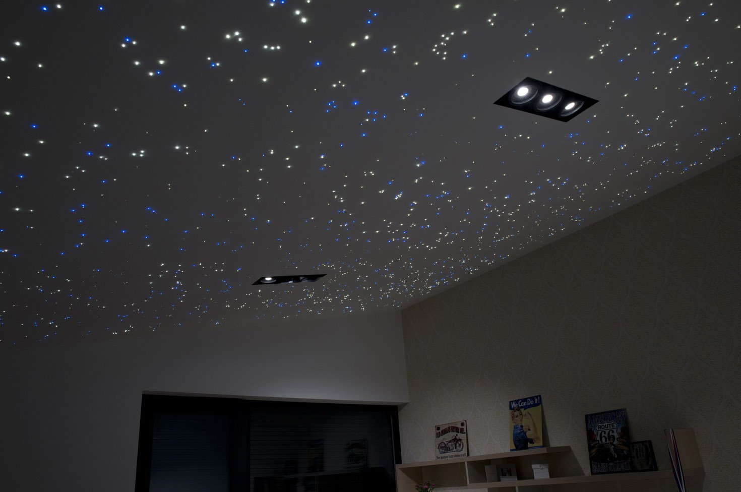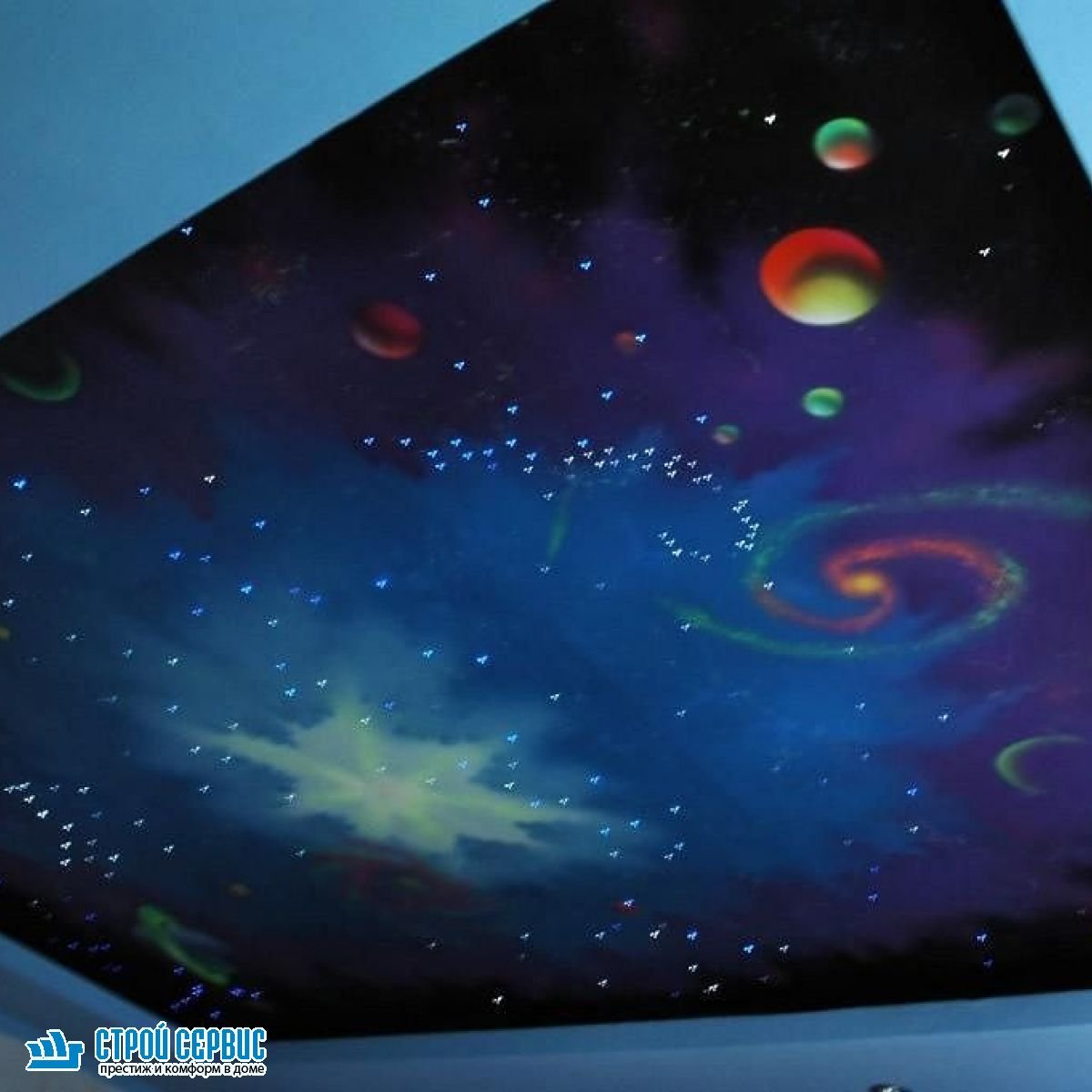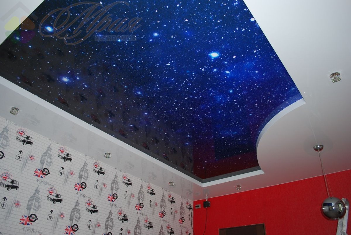 Натяжной потолок Звёздное небо с подсветкой в спальне