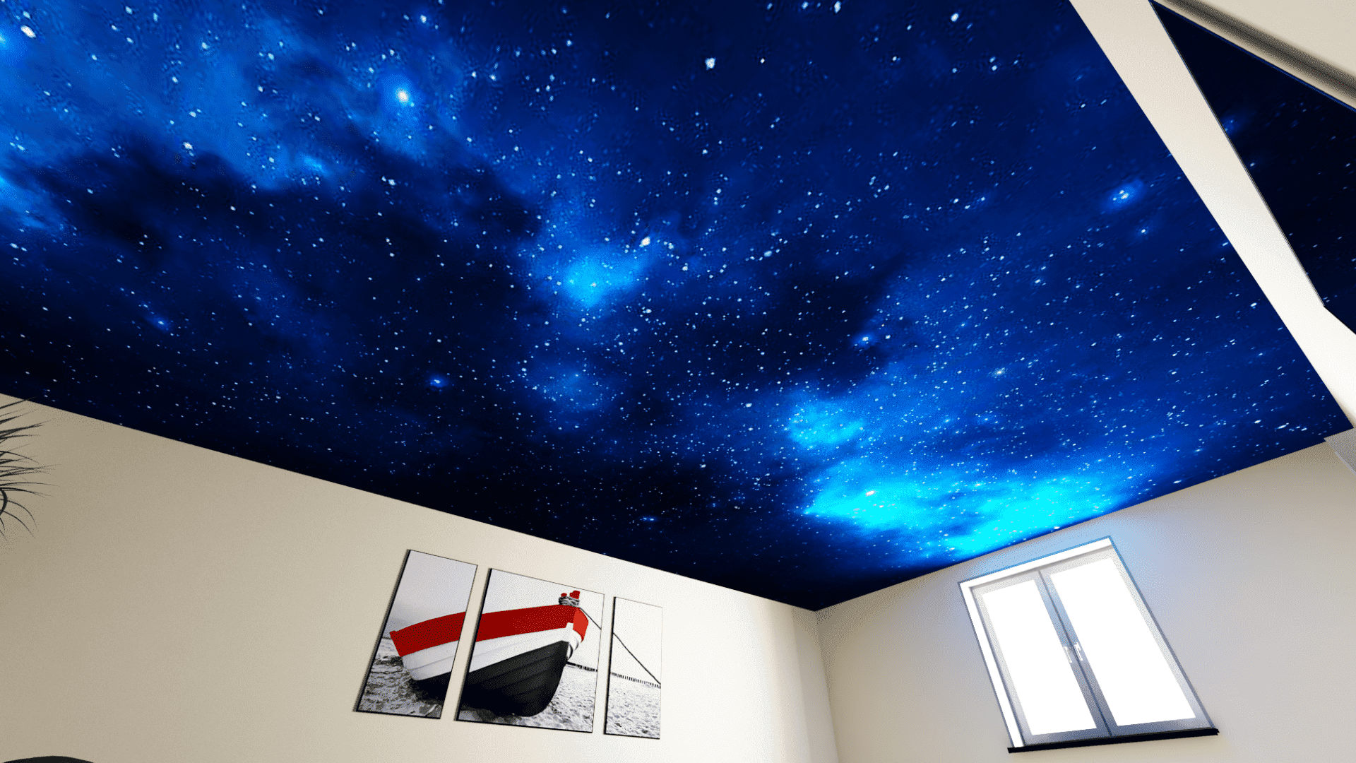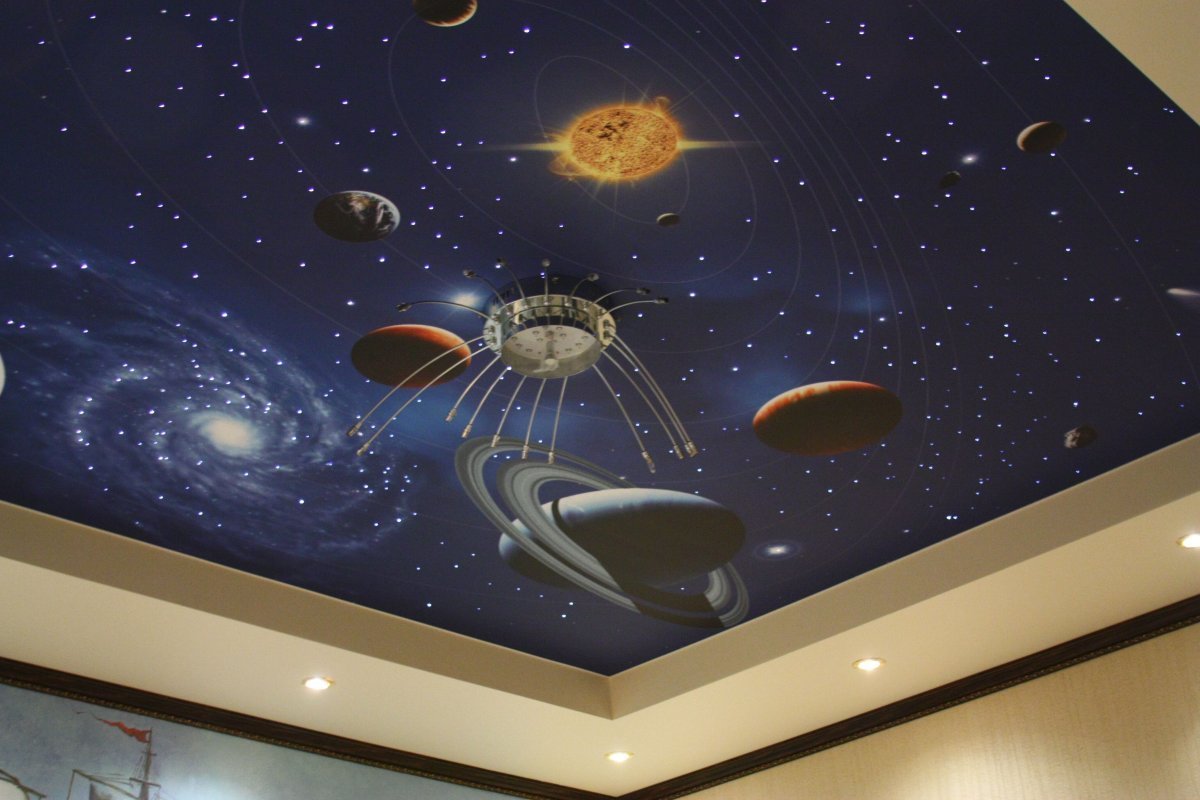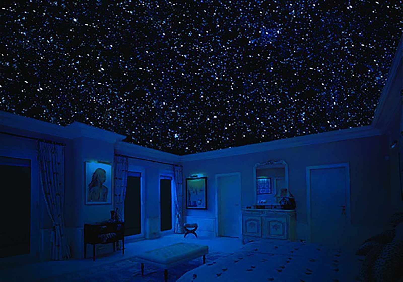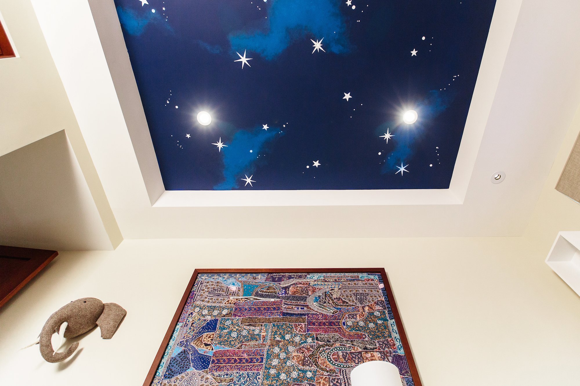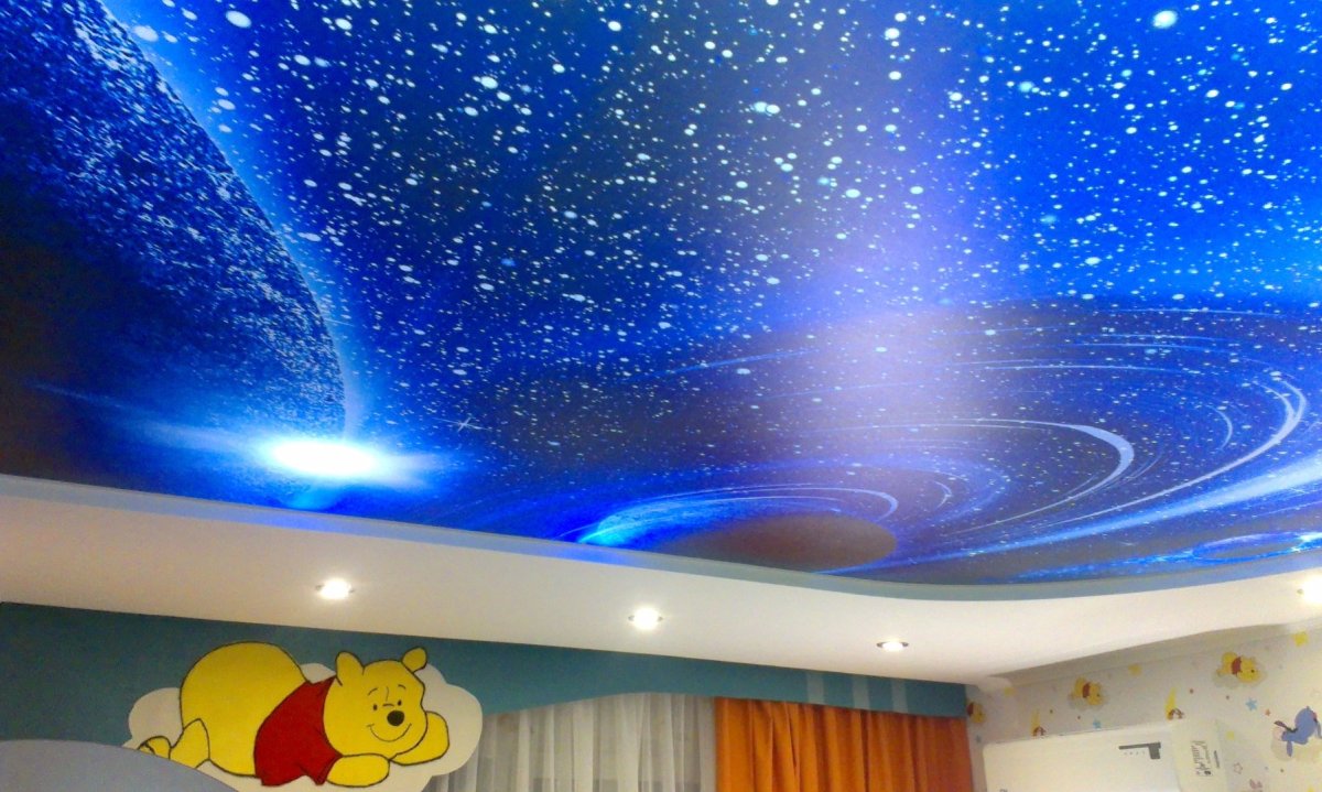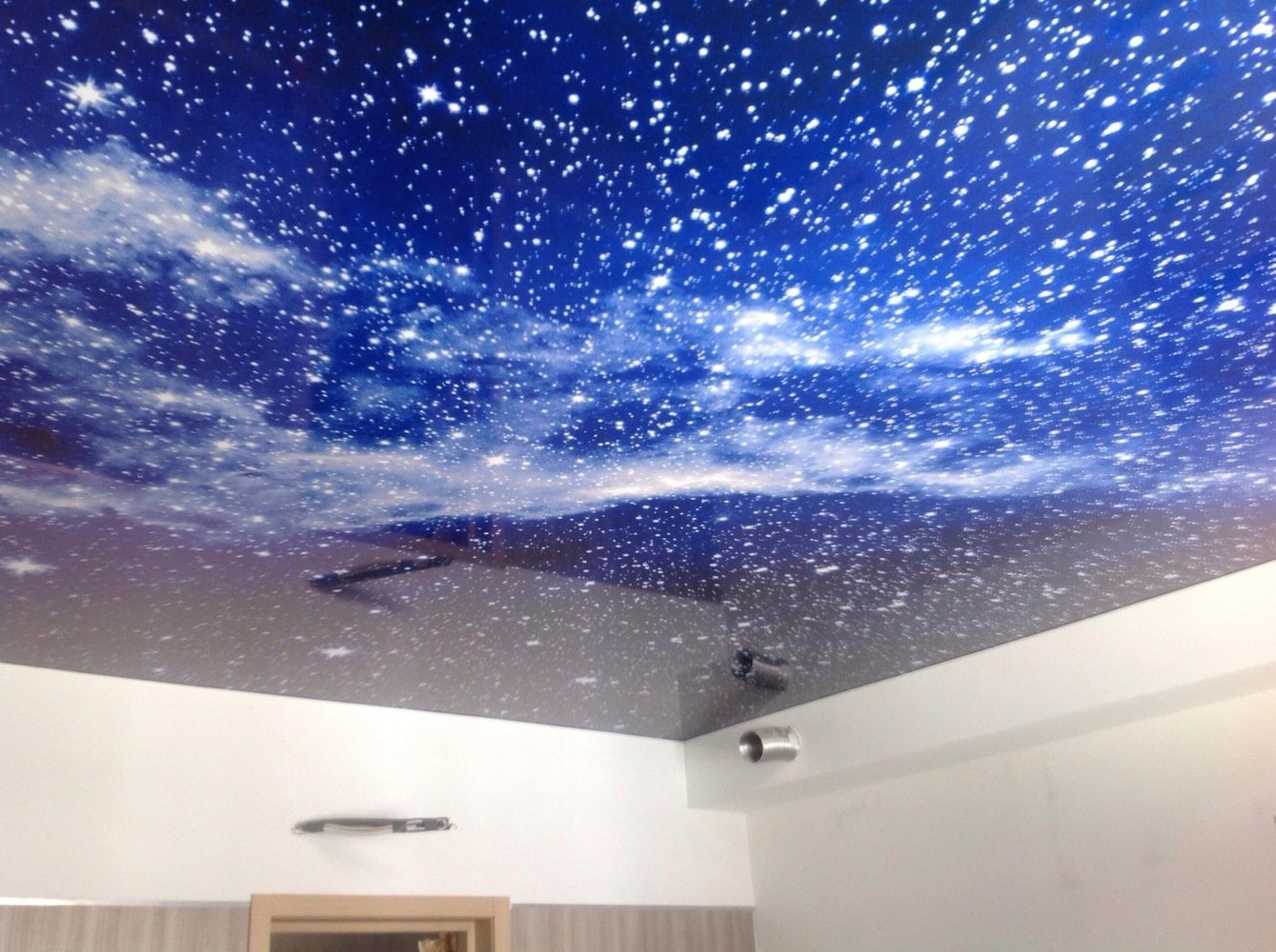 Натяжной потолок Звёздное небо с подсветкой в спальне