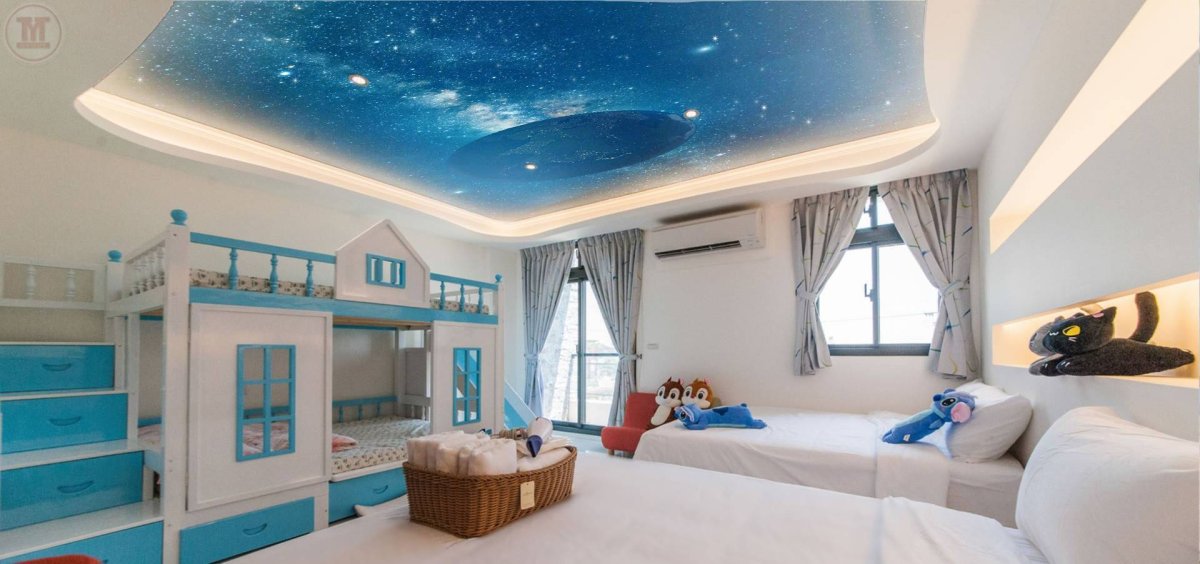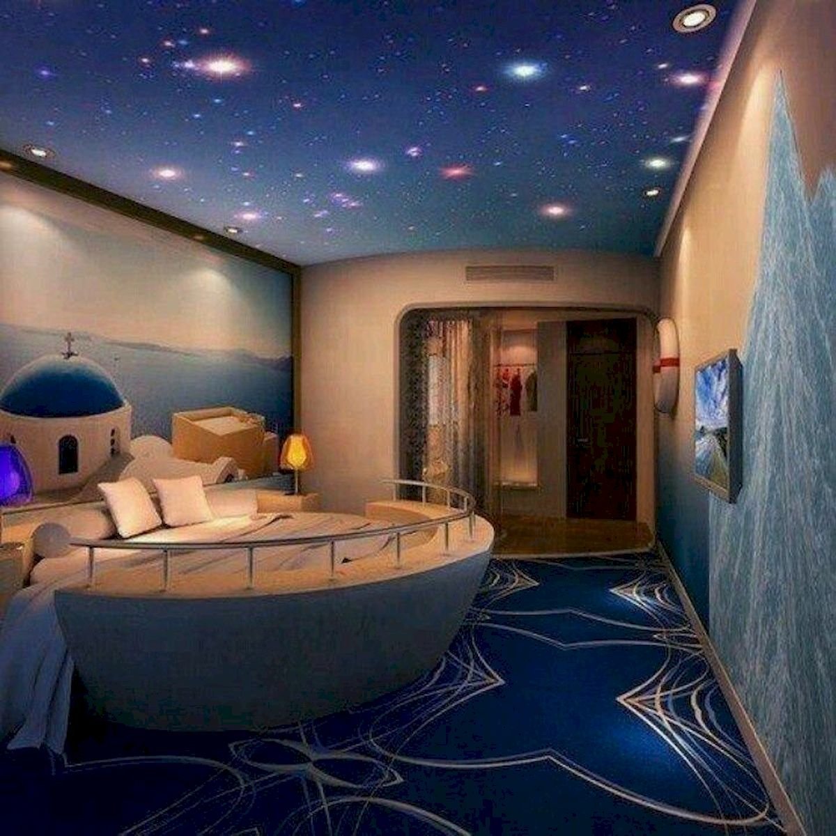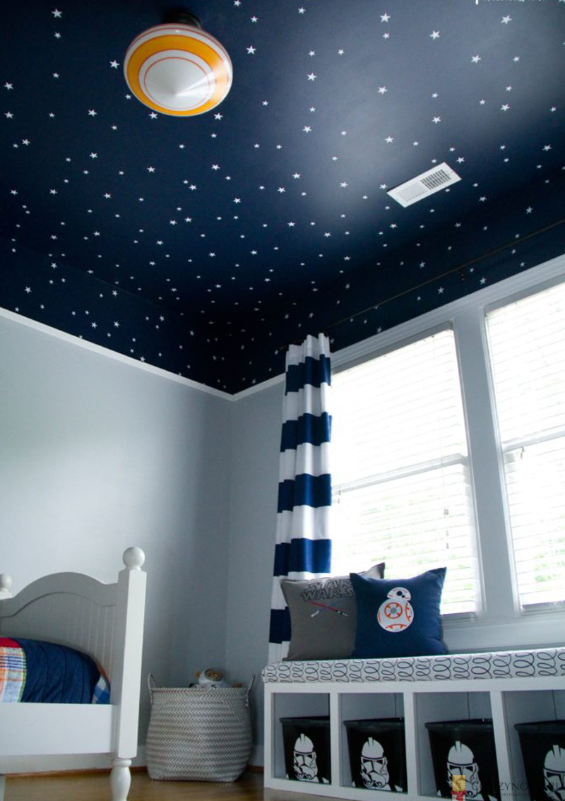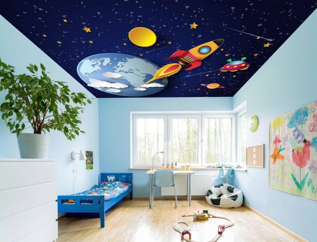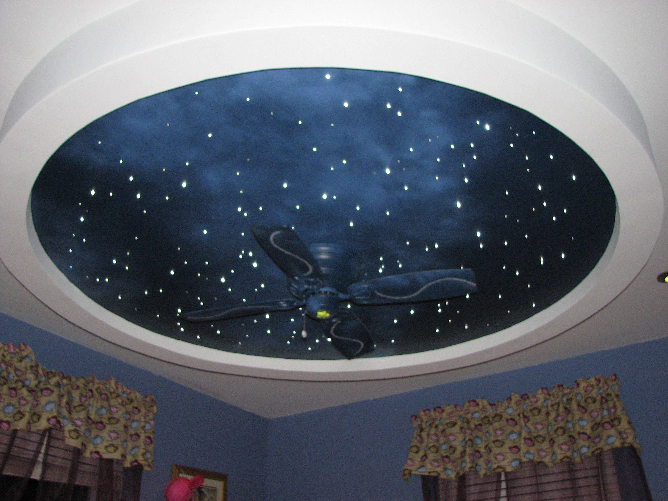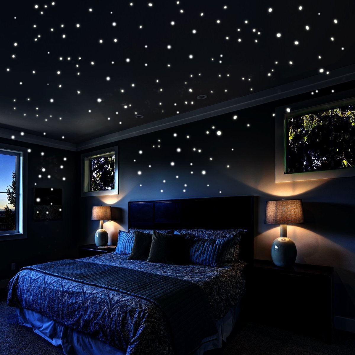 Натяжной потолок Звёздное небо с подсветкой в спальне