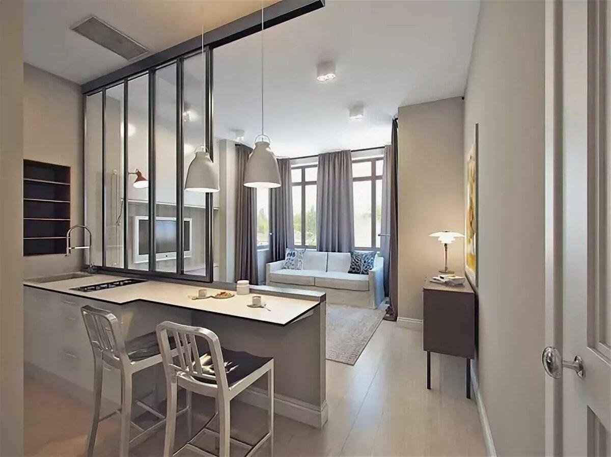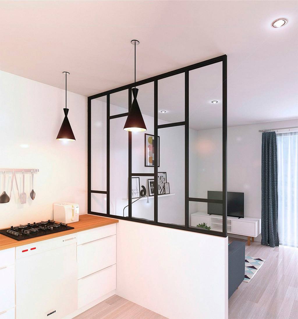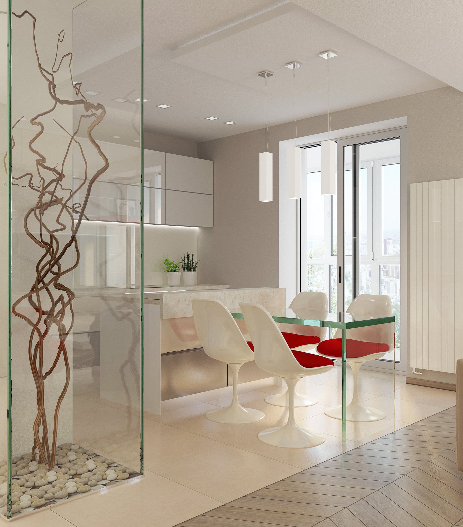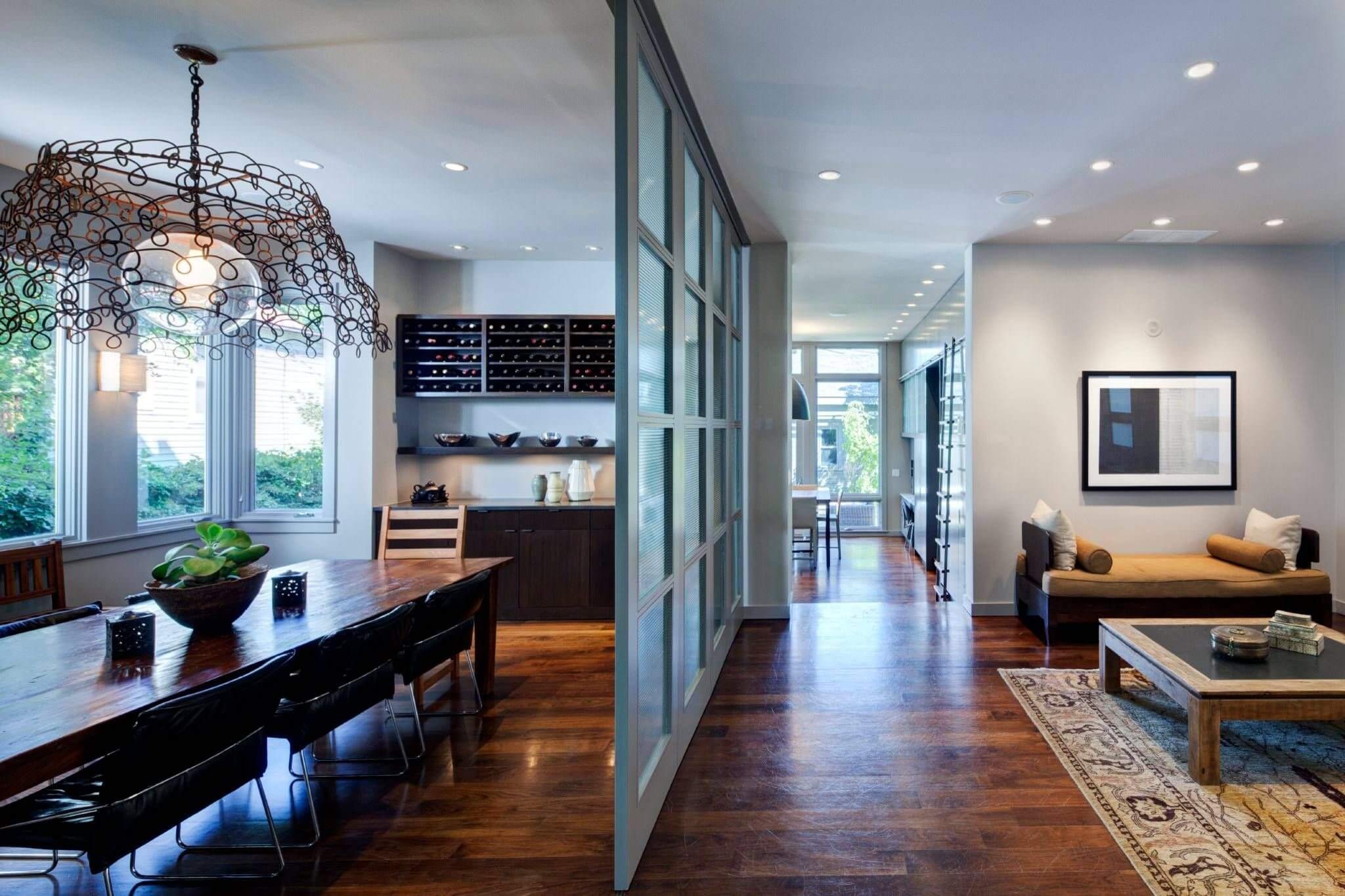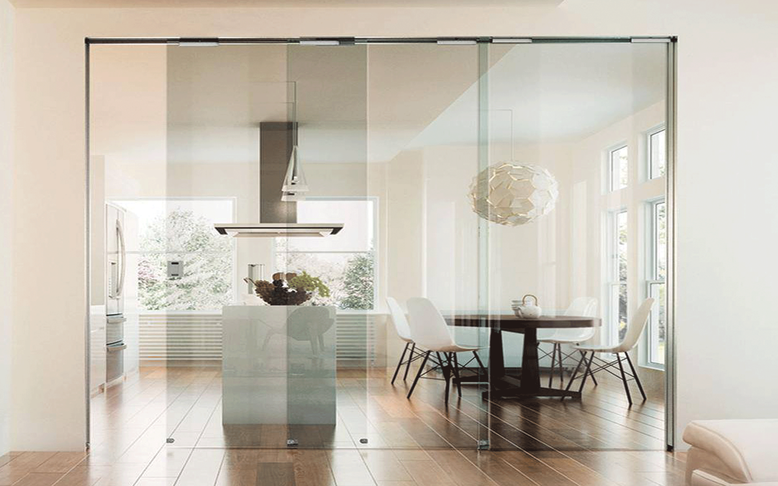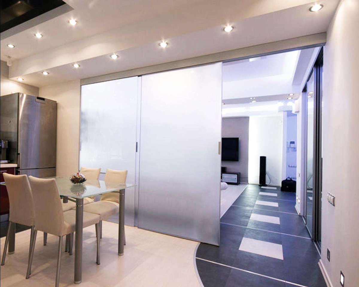 Раздвижная стеклянная перегородка между кухней и гостиной