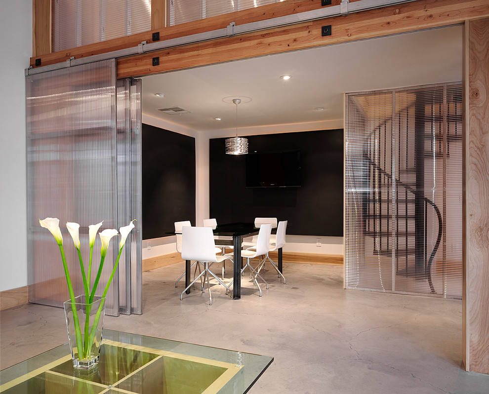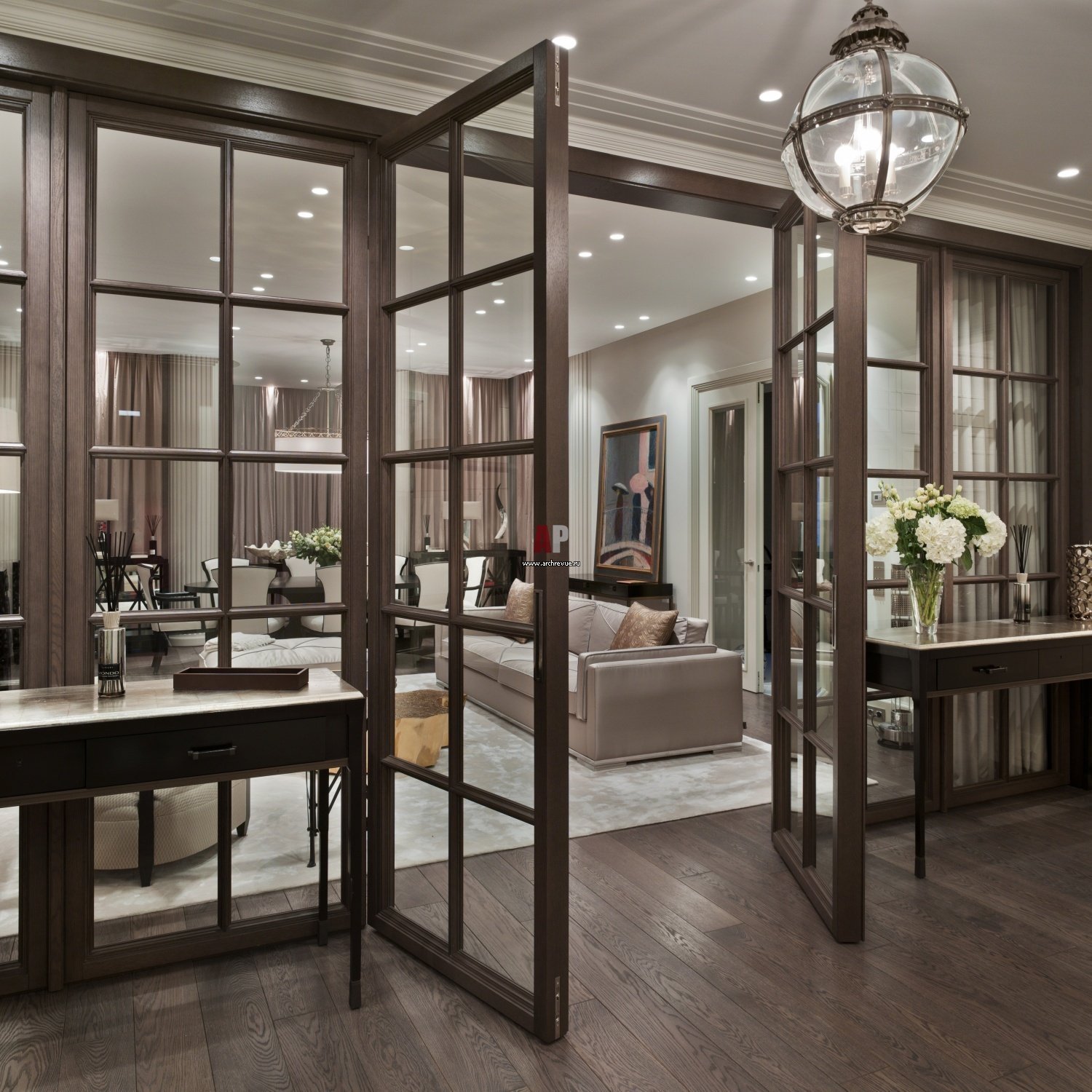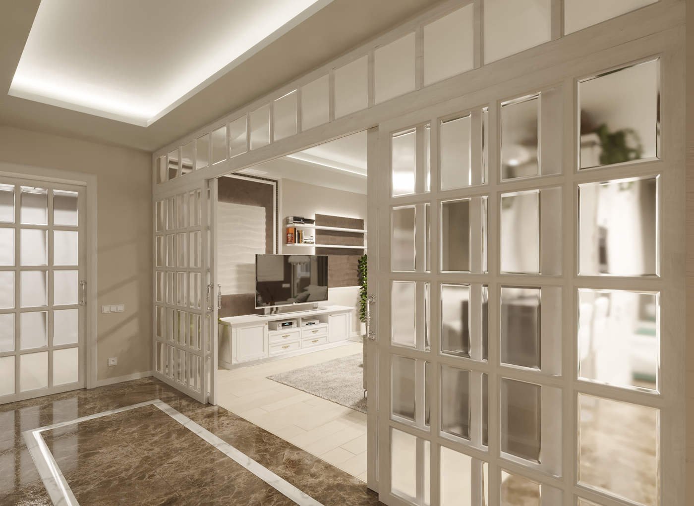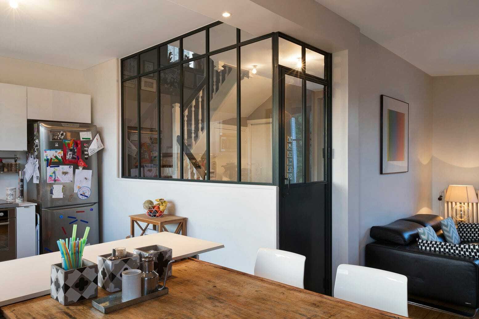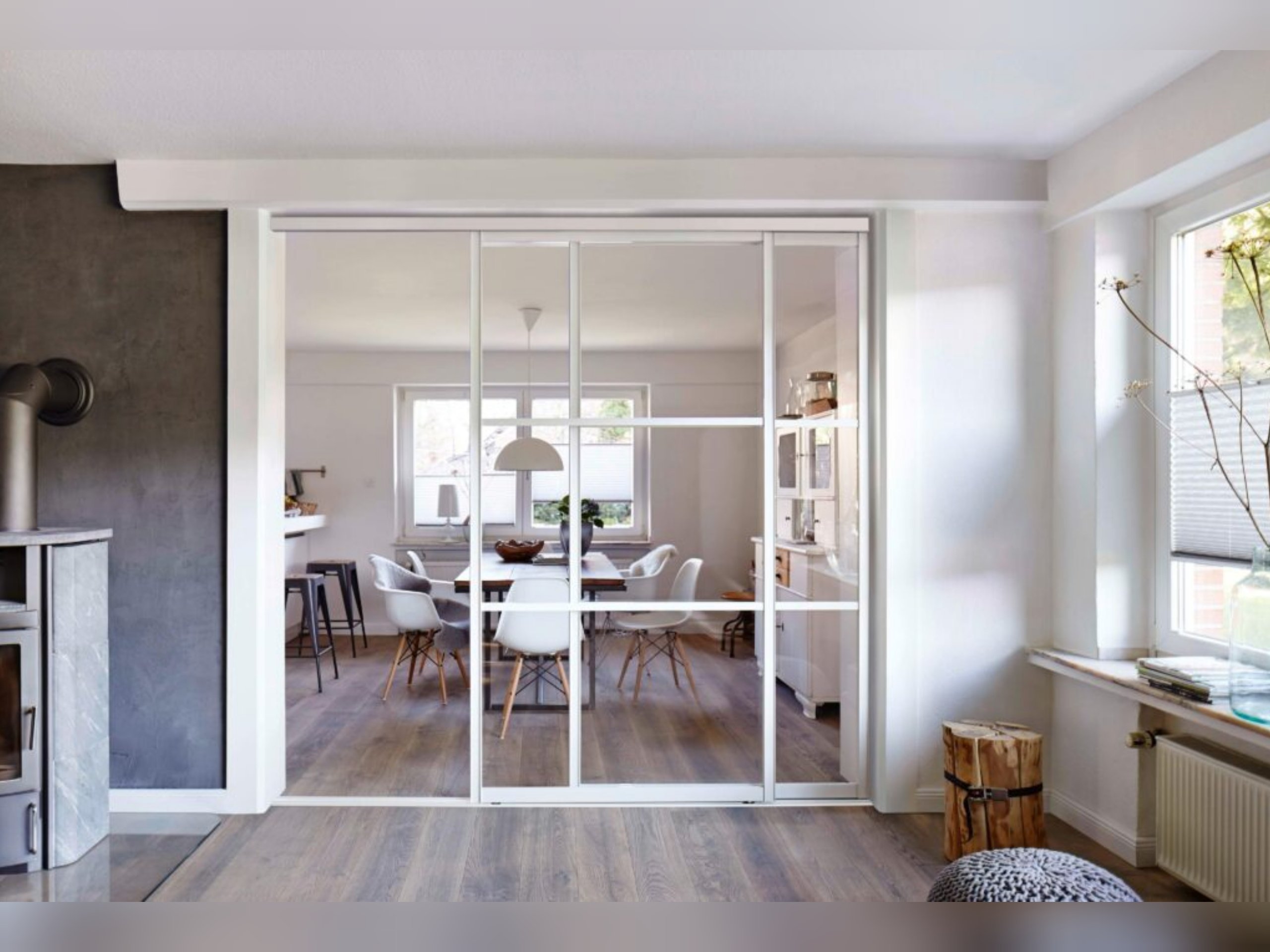 Раздвижная стеклянная перегородка между кухней и гостиной