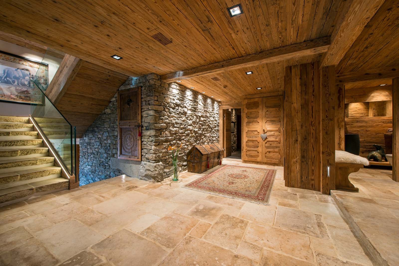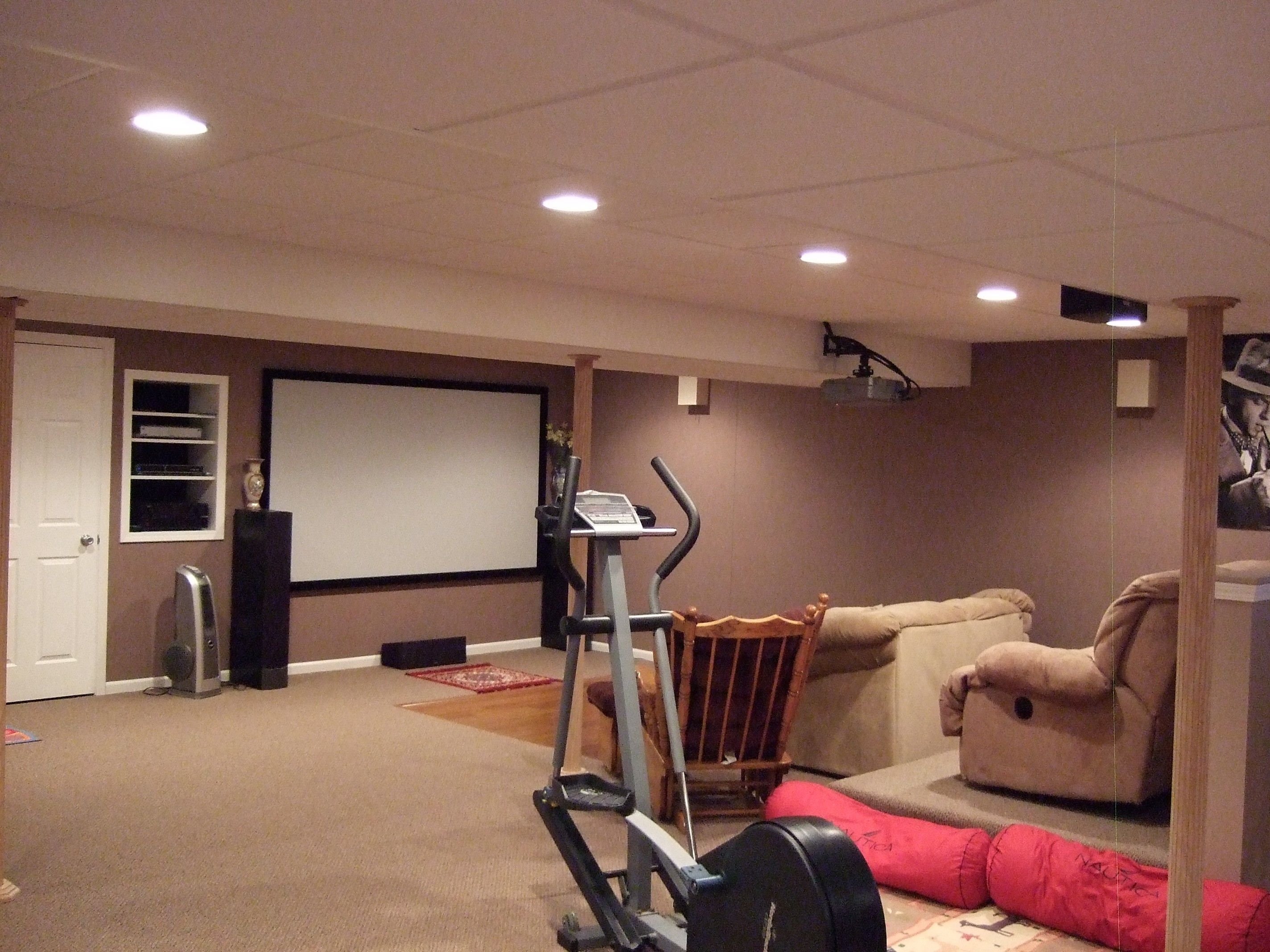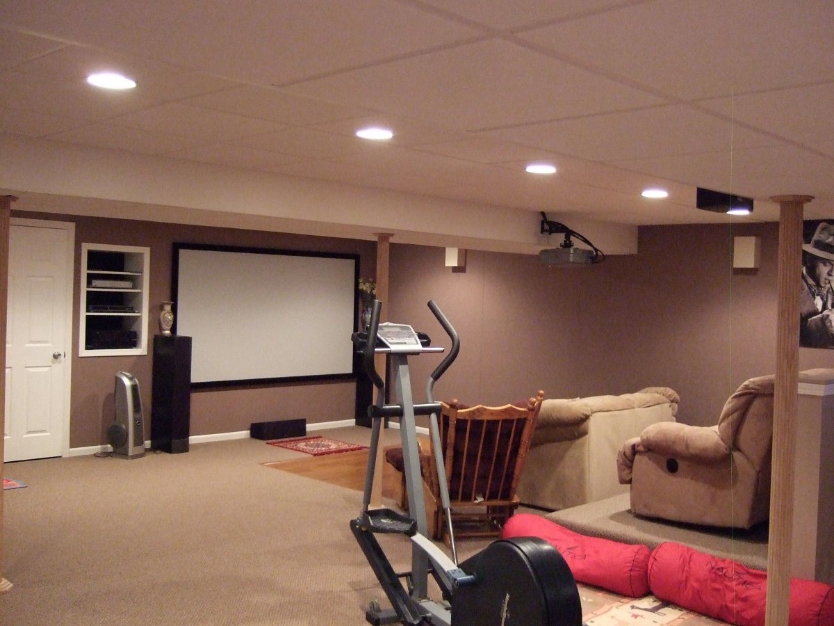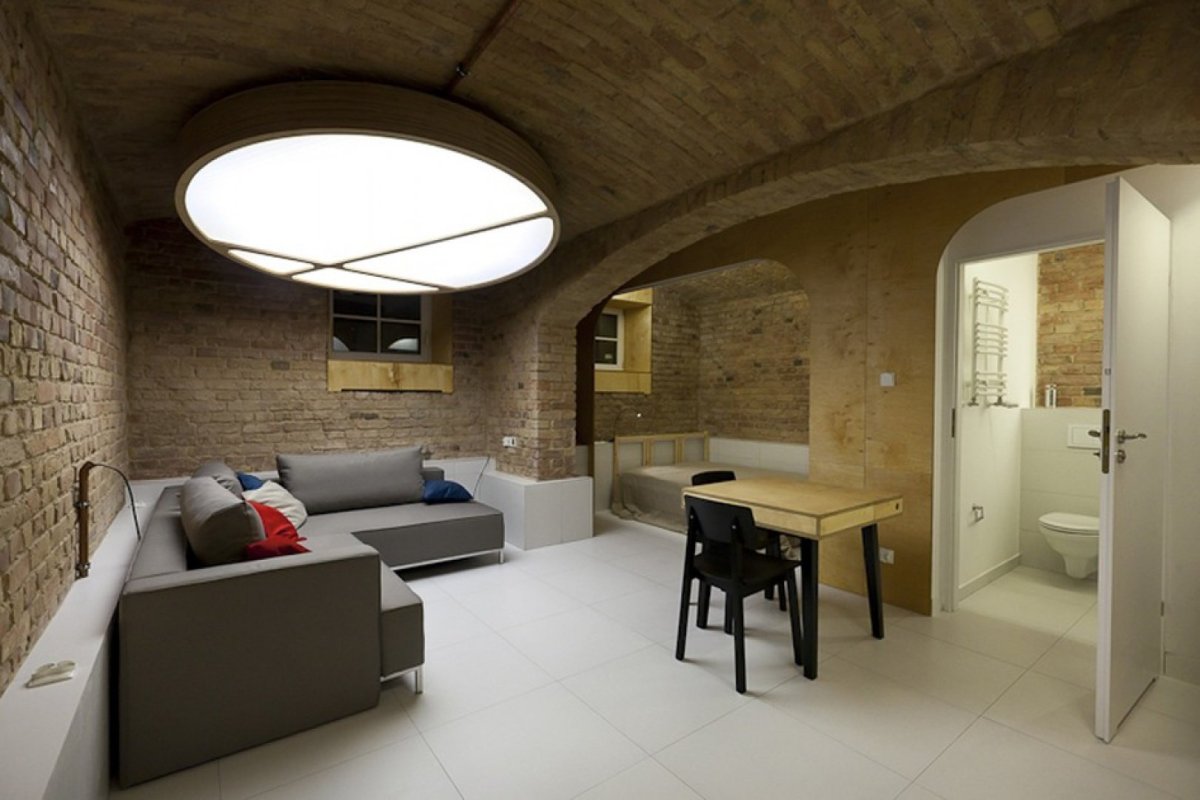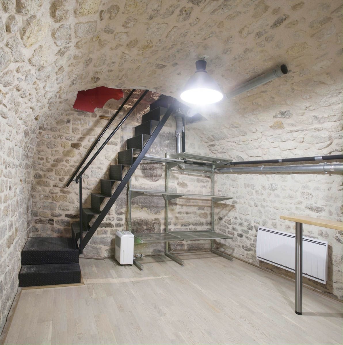 Дизайн подвала для отдыха с барной стойкой под лестницей