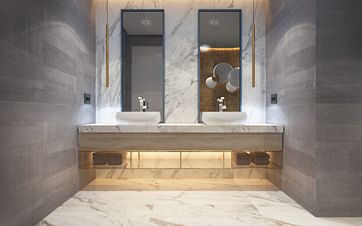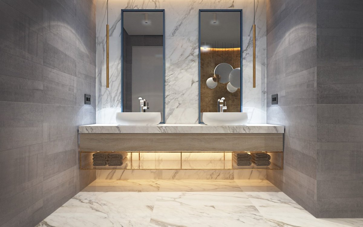 Ванная под мрамор и бетон
