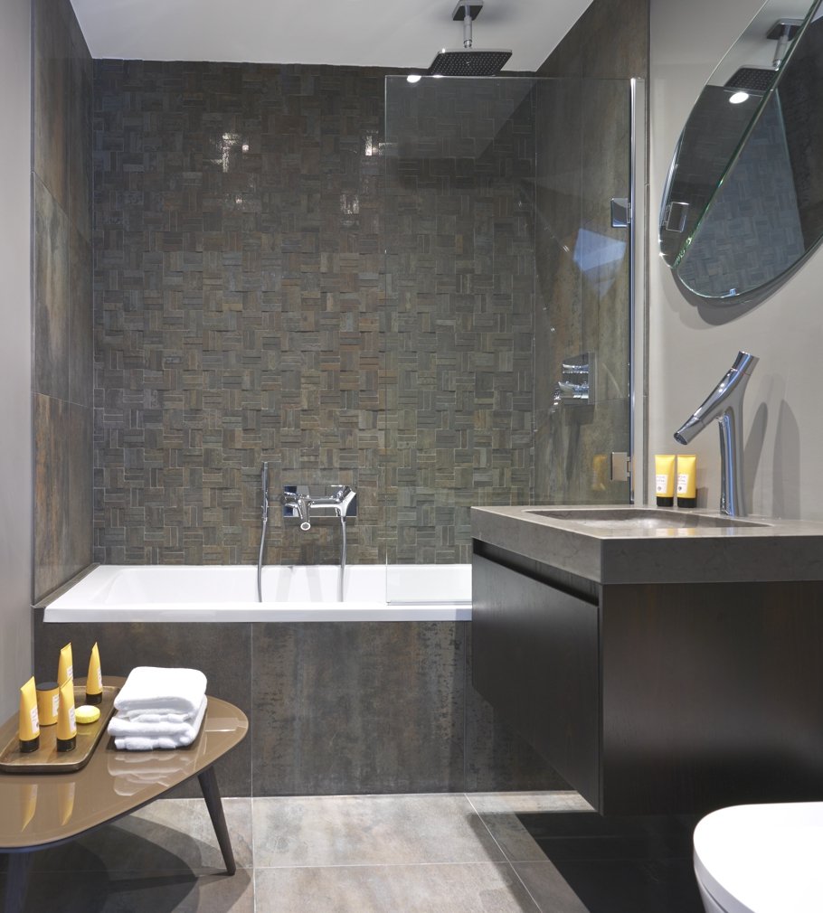 Темная плитка в ванной