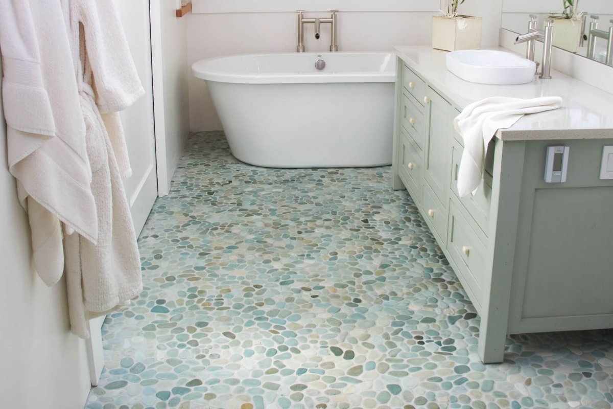 Пол из гальки в ванной