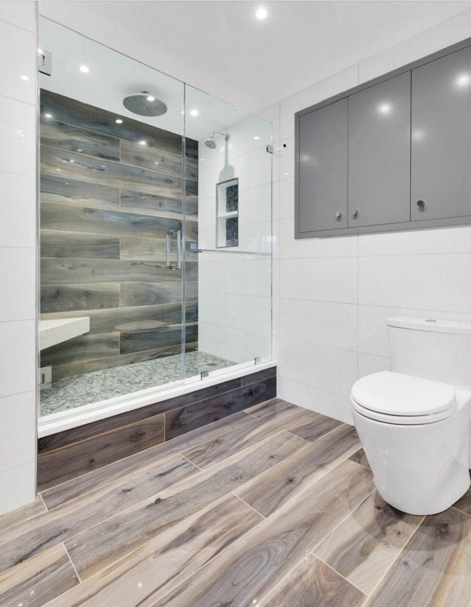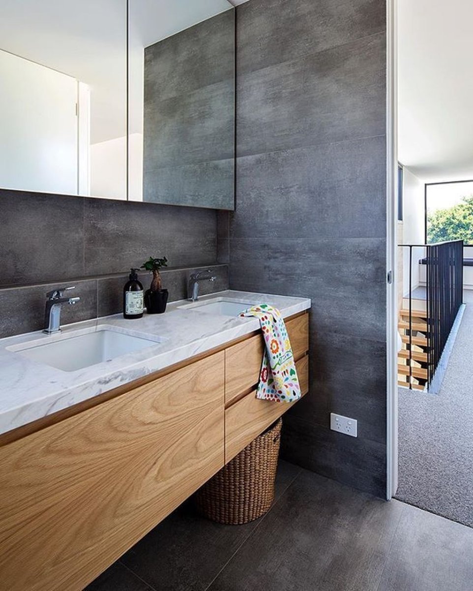 Ванная плитка под дерево и бетон