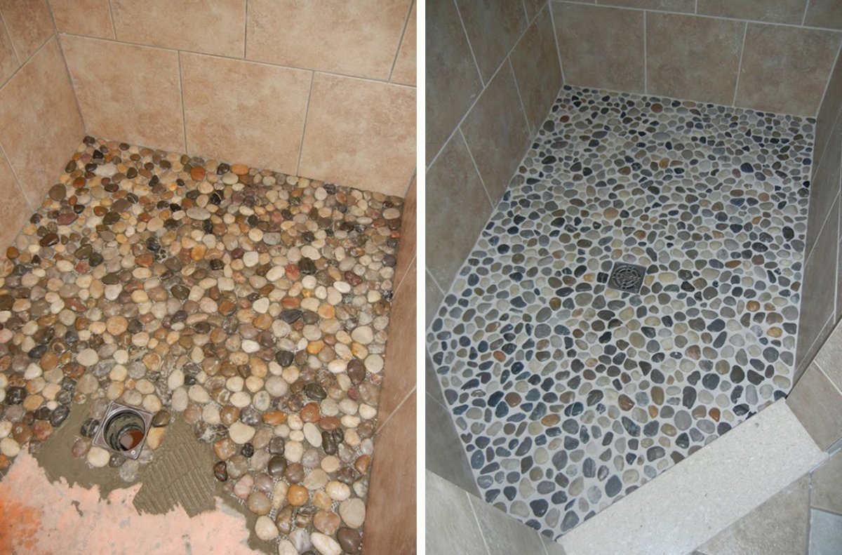 Пол в душевой из гальки