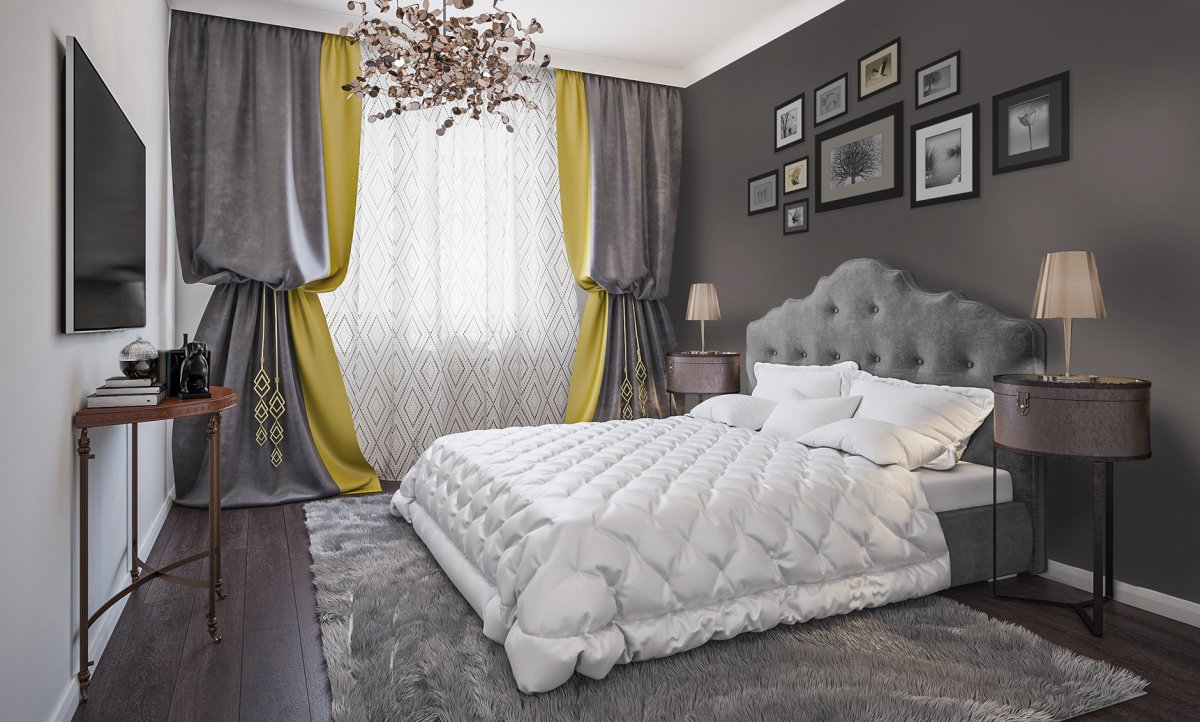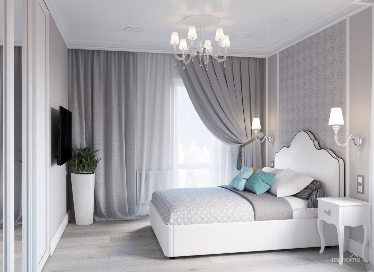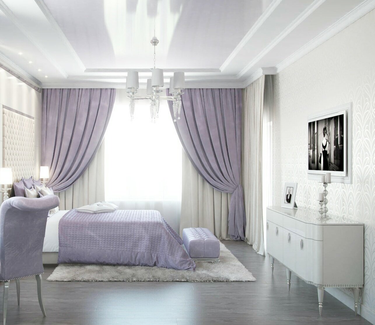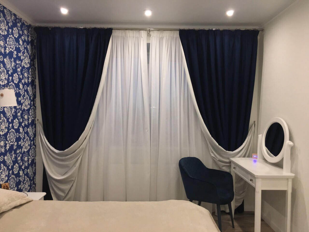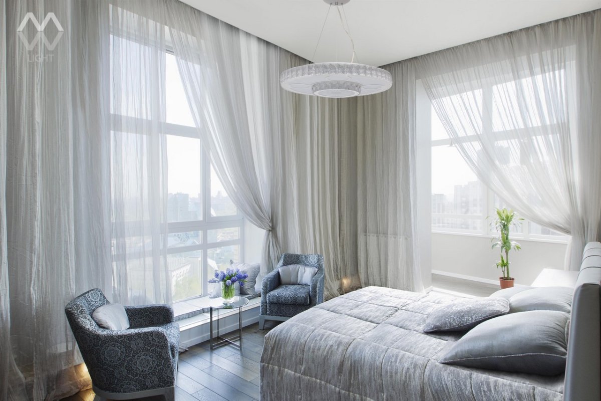 Комплект штор № 029, (270*180)х2, белый/серебро/графиткомпл