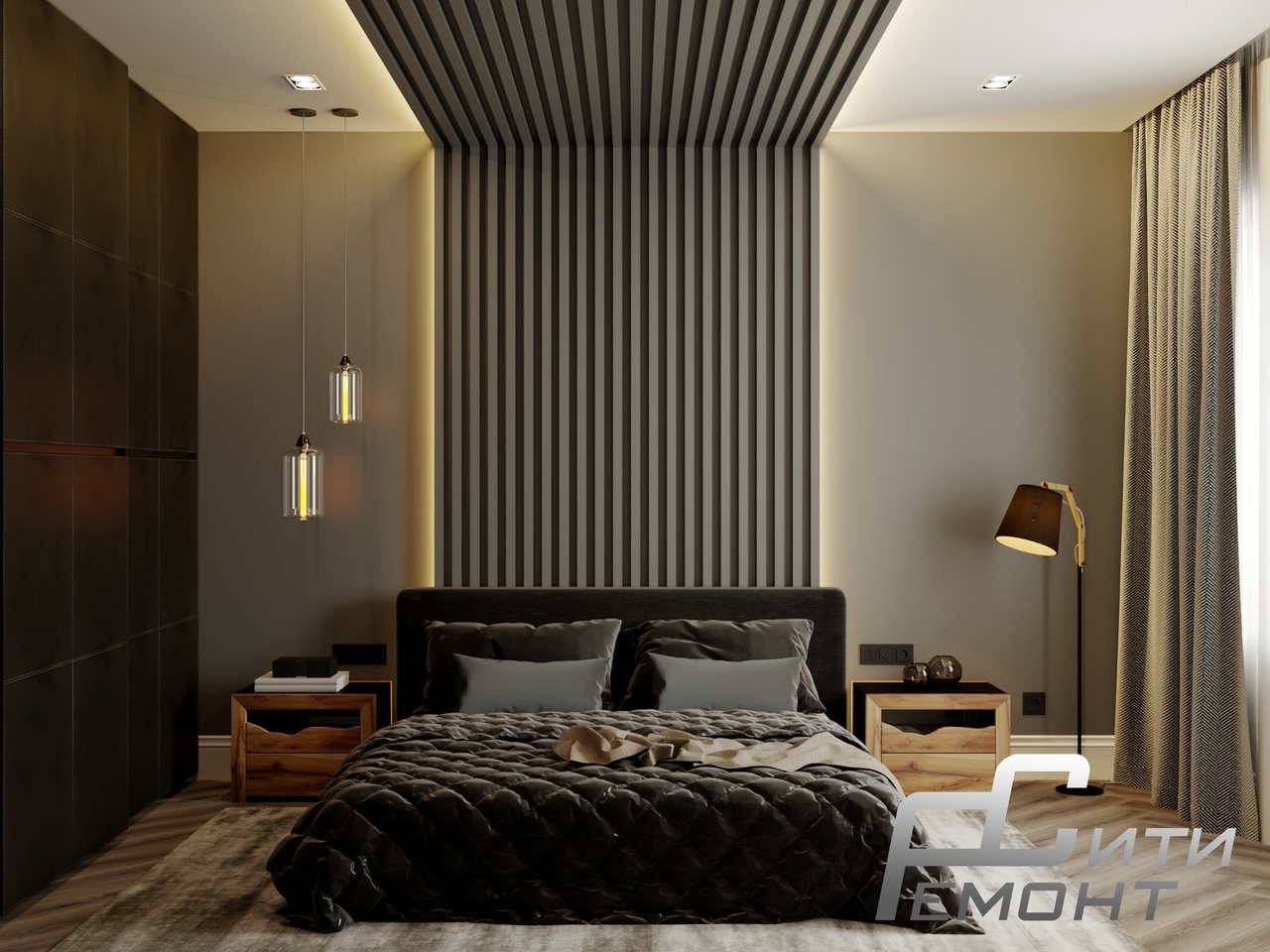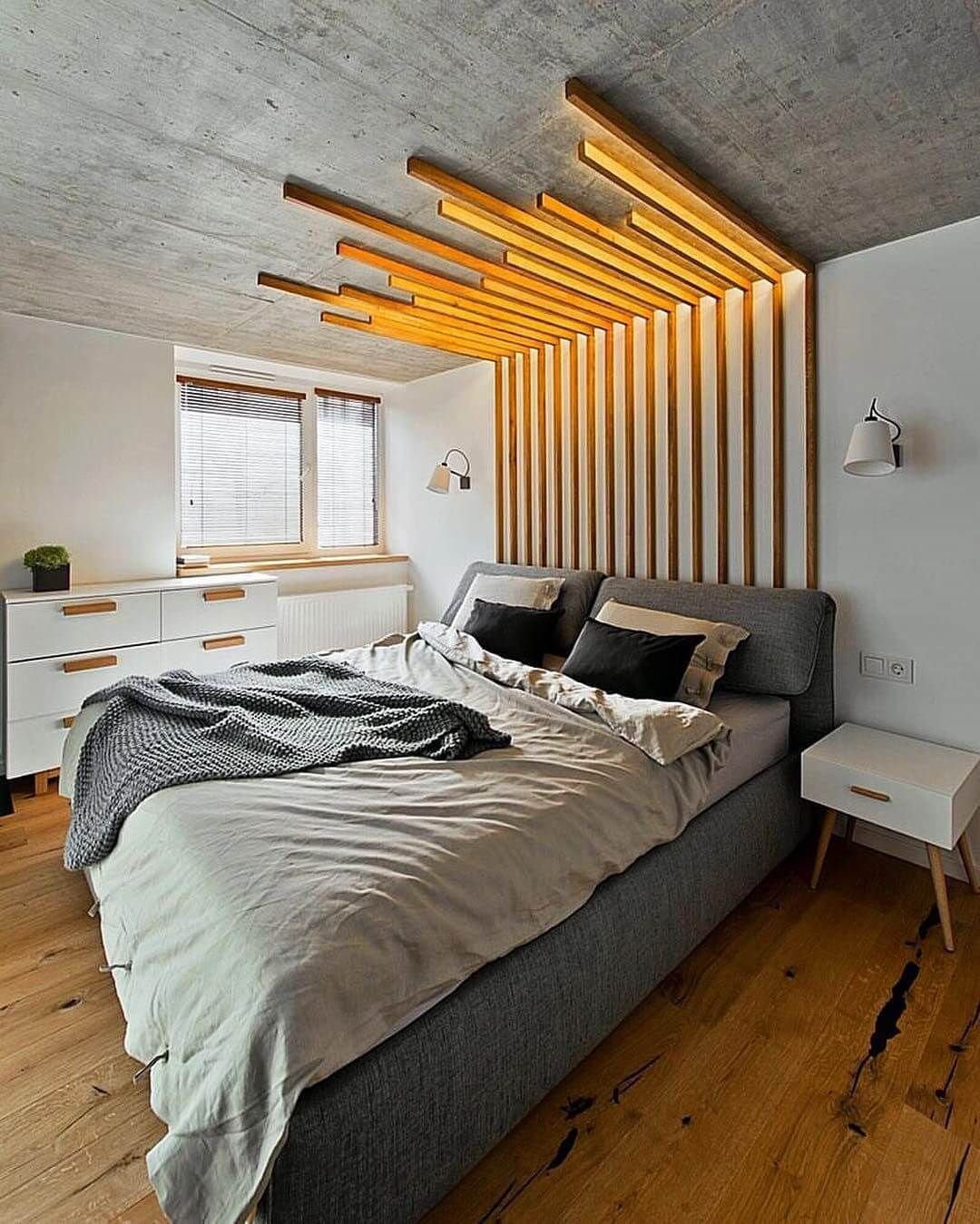 Деревянные рейки в спальне