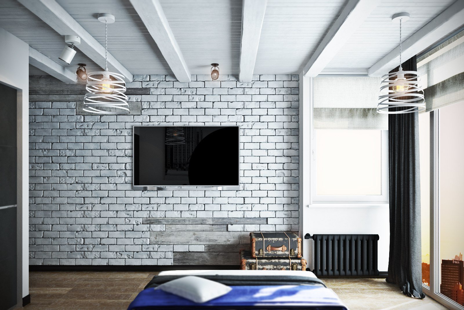 Белая спальня в стиле лофт