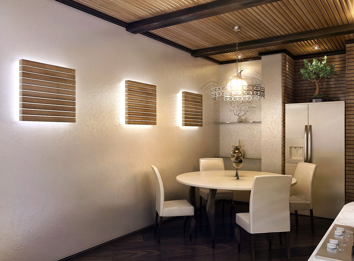 Деревянный реечный потолок на кухне