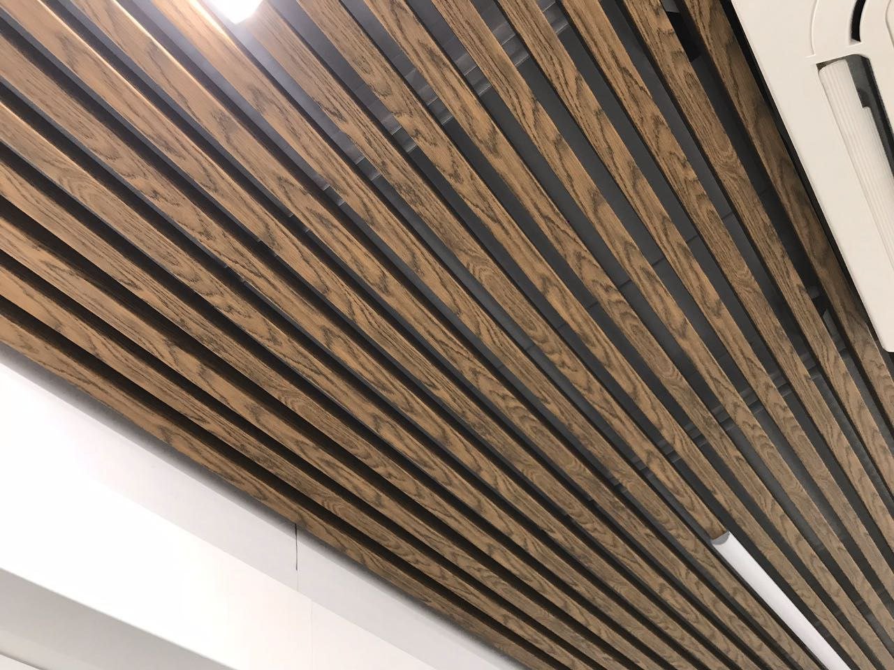Деревянные рейки на потолке