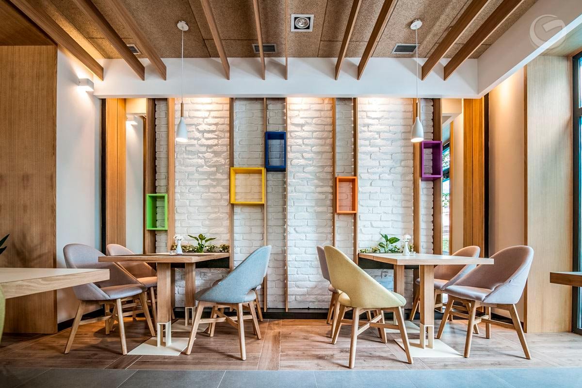 Деревянный интерьер кафе