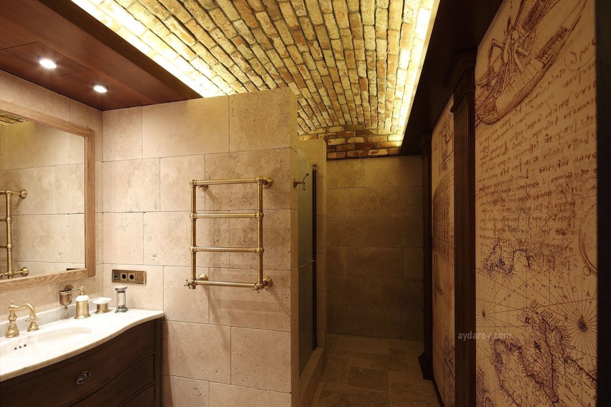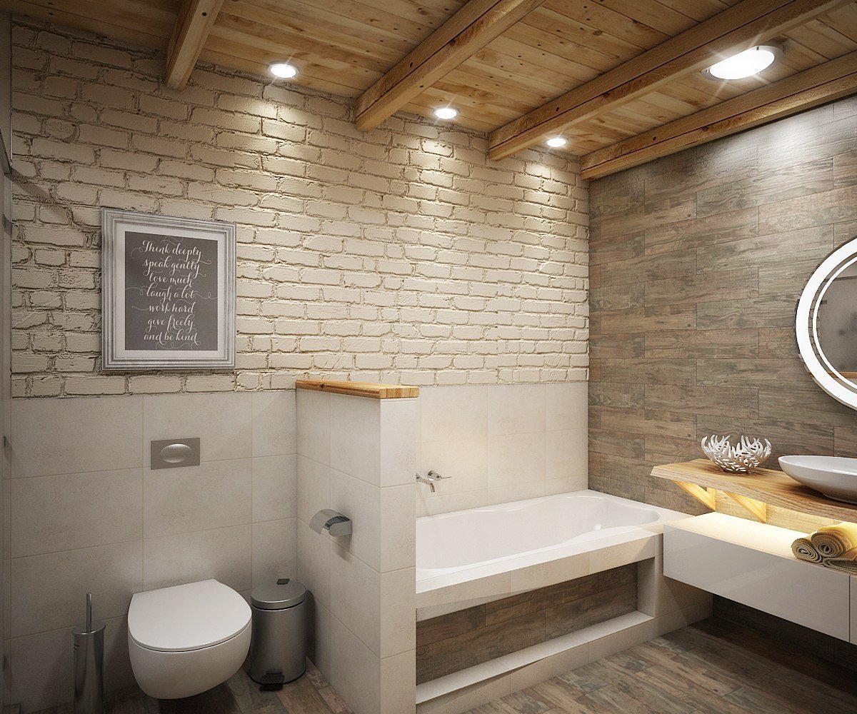 Ванная кирпич дерево
