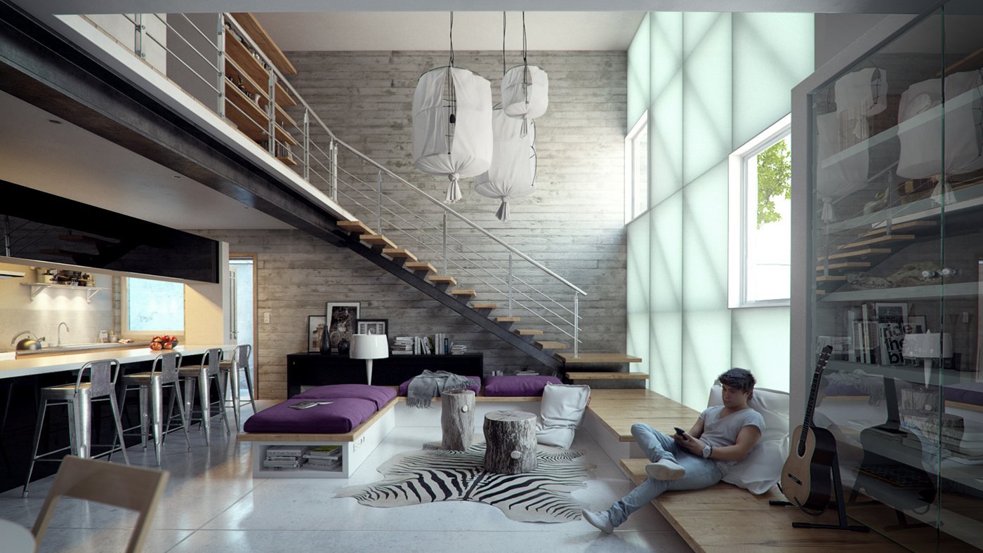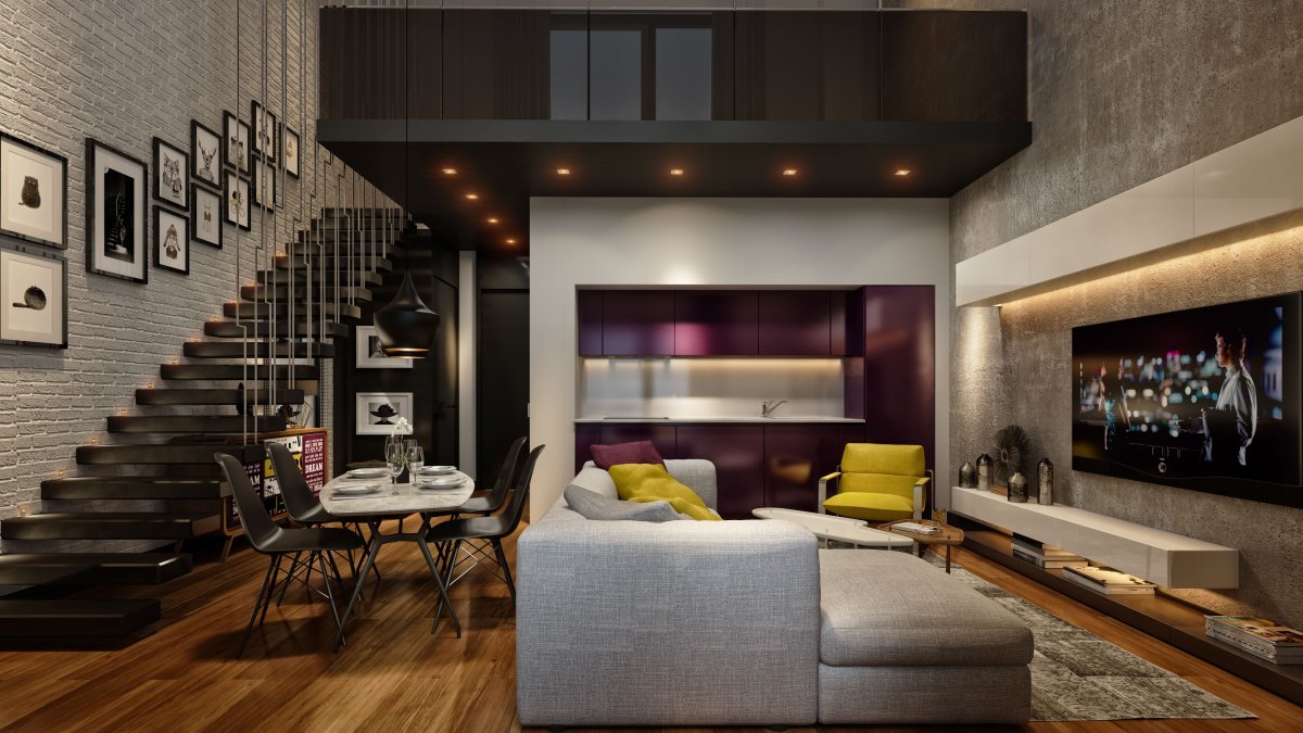 Двухуровневый пентхаус в стиле лофт Нью Йорк