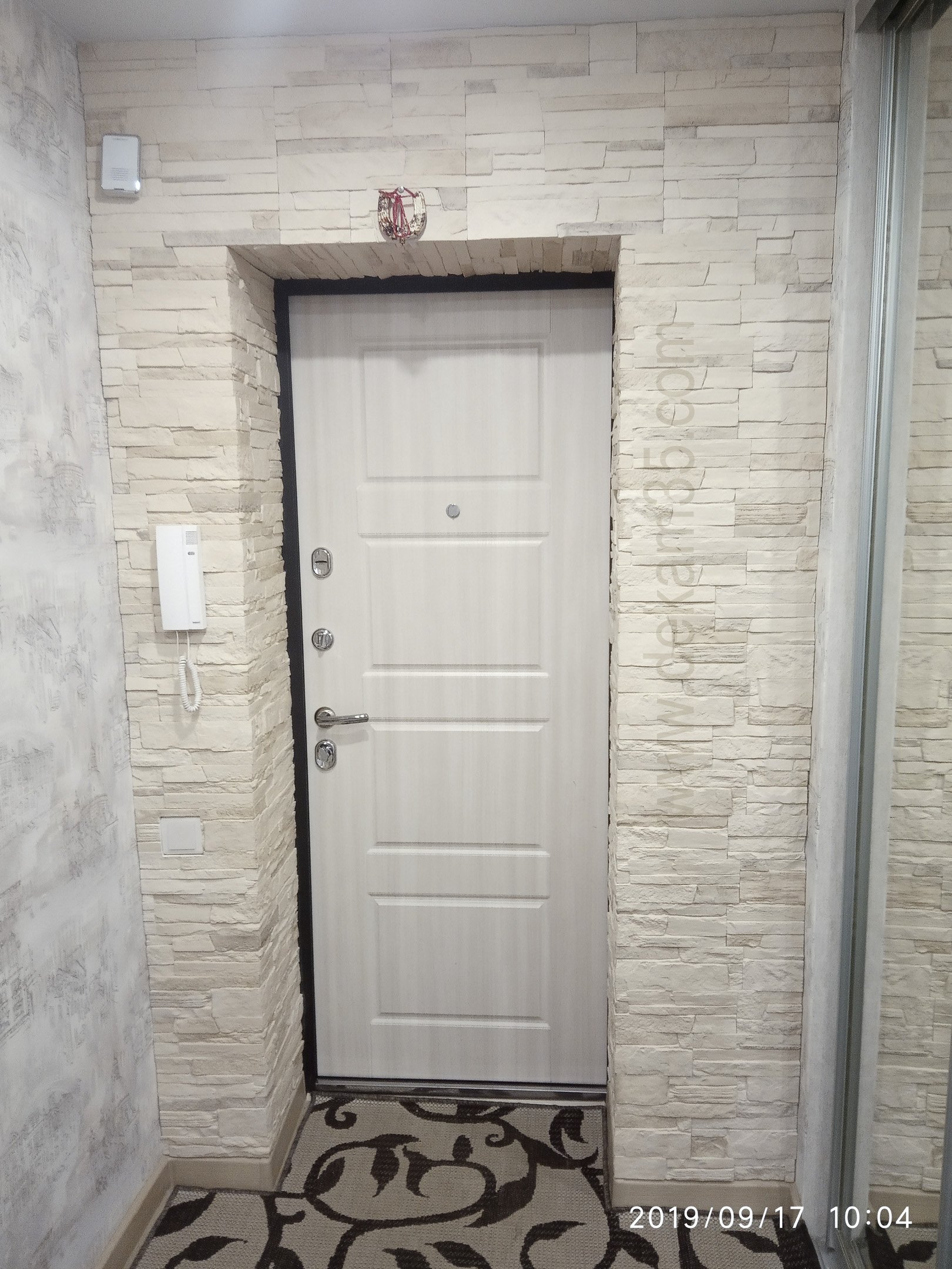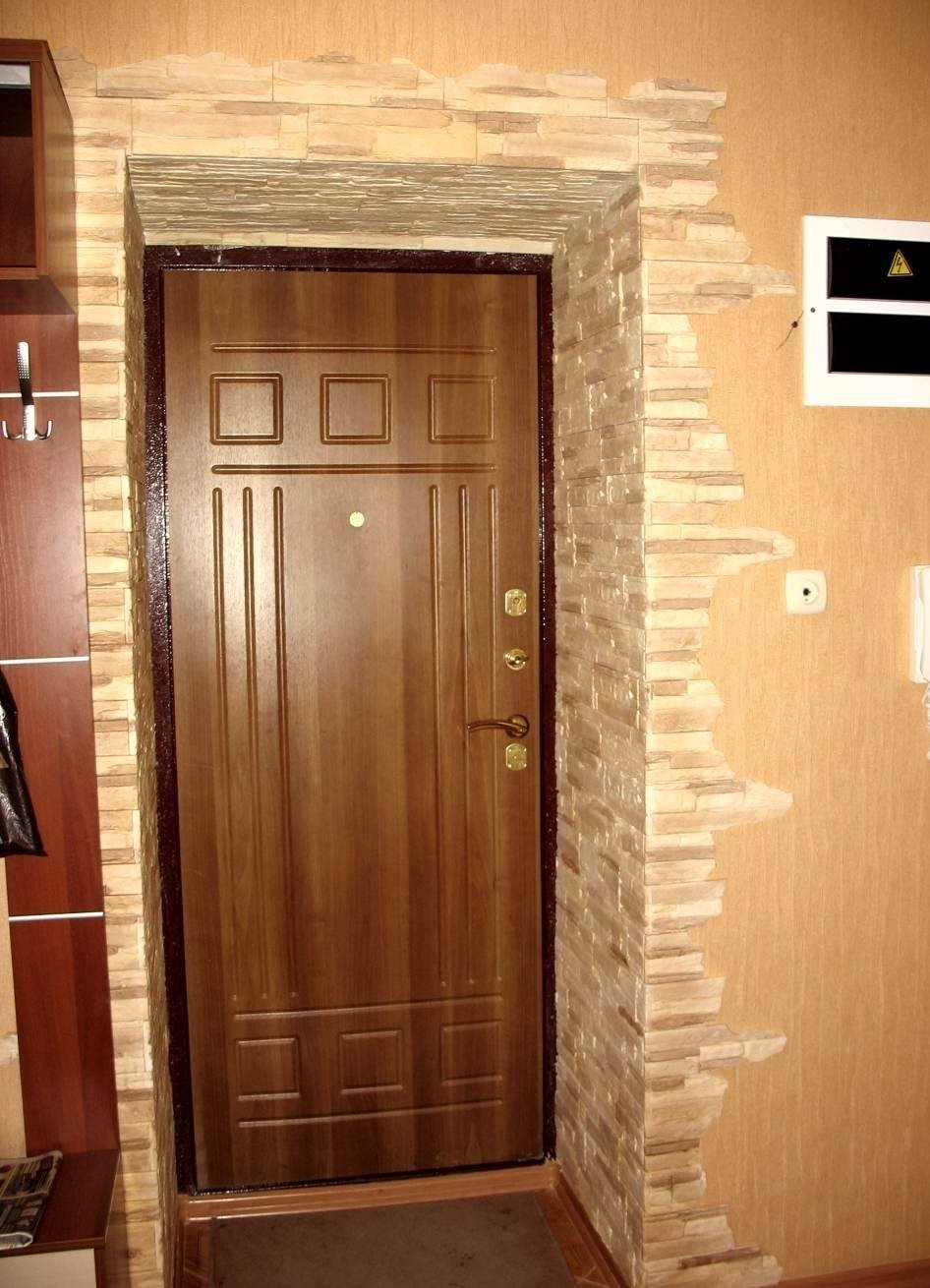 Отделка двери декоративным кирпичом