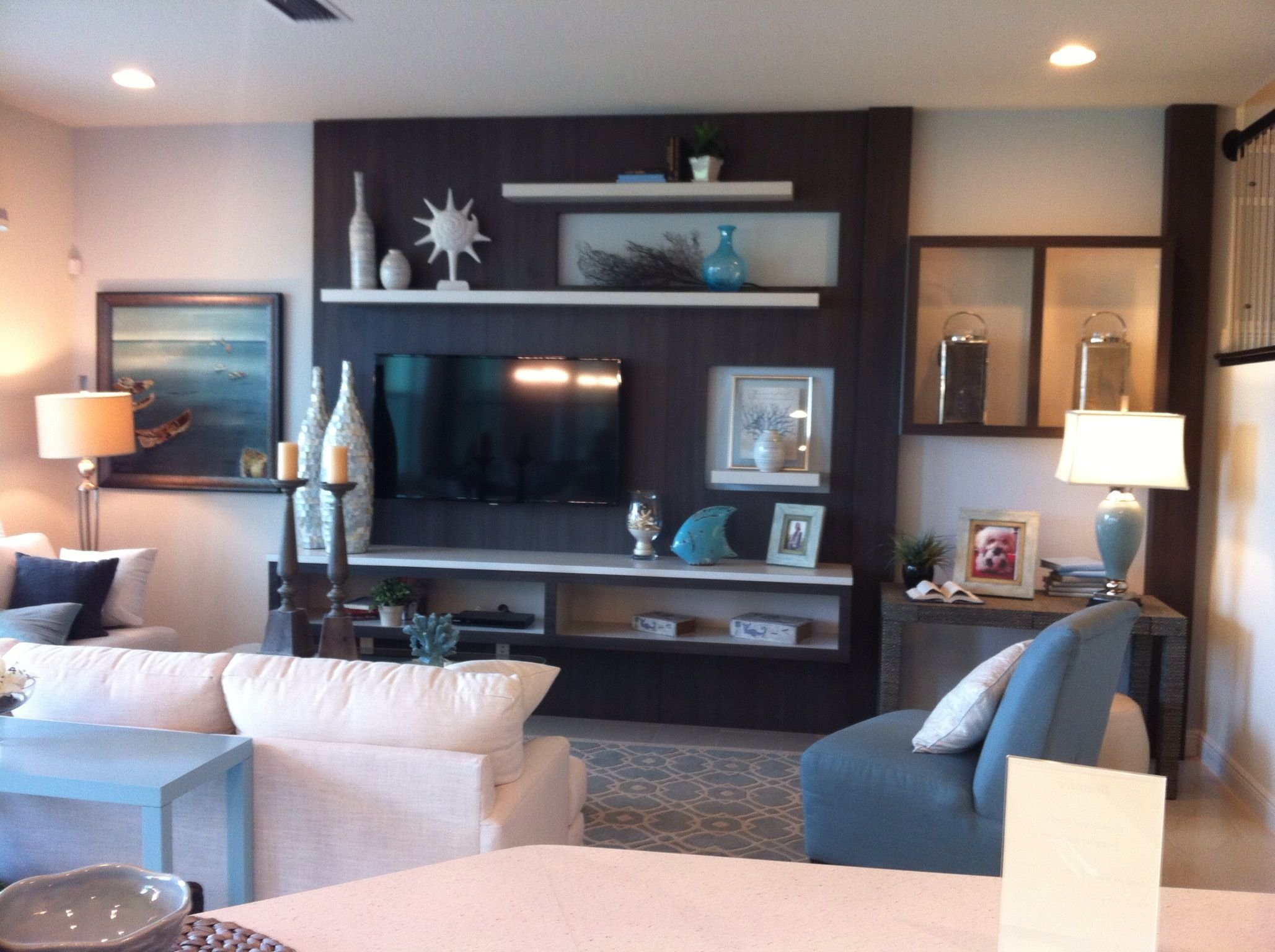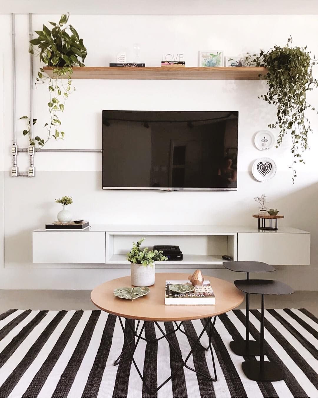 Декор над телевизором в гостиной
