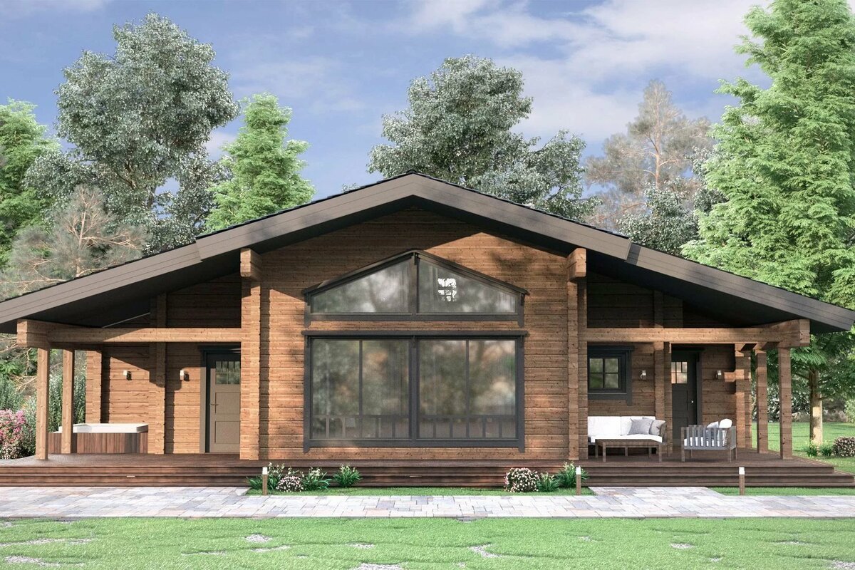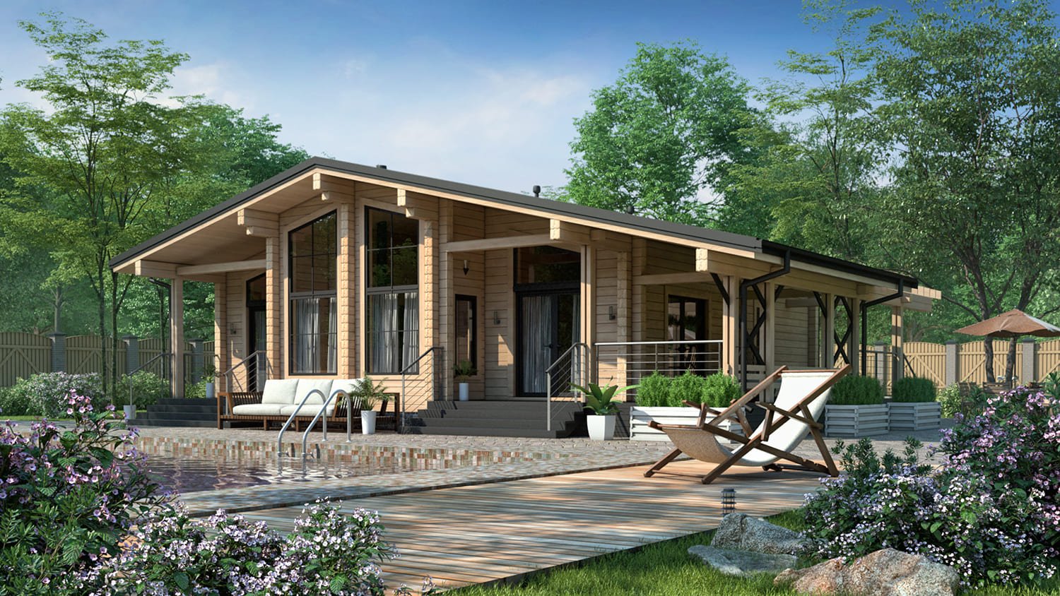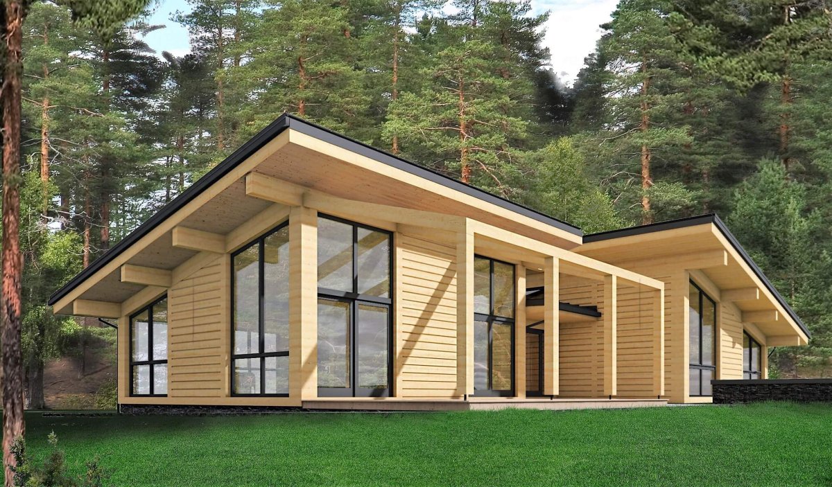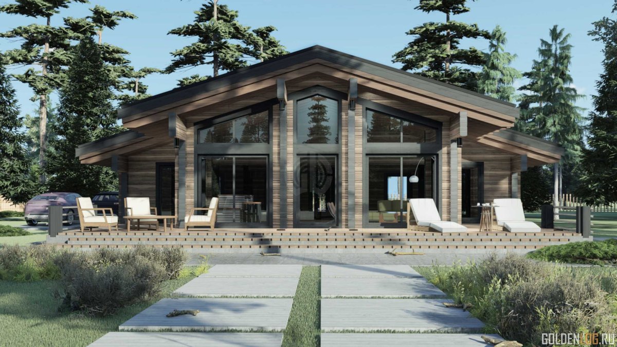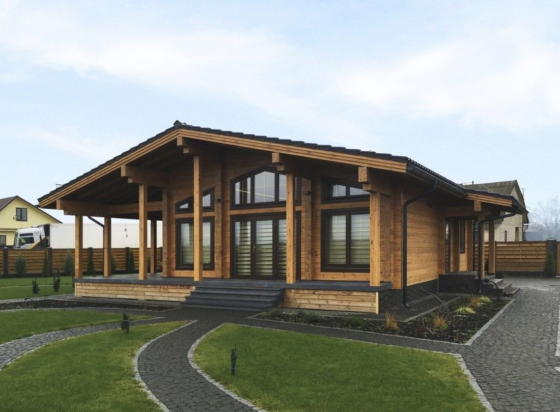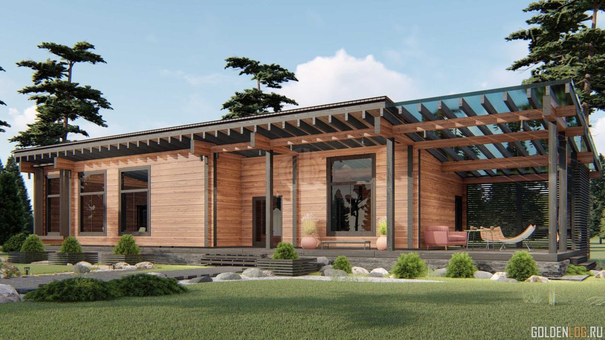 Одноэтажный дом в стиле хайтек из клееного бруса